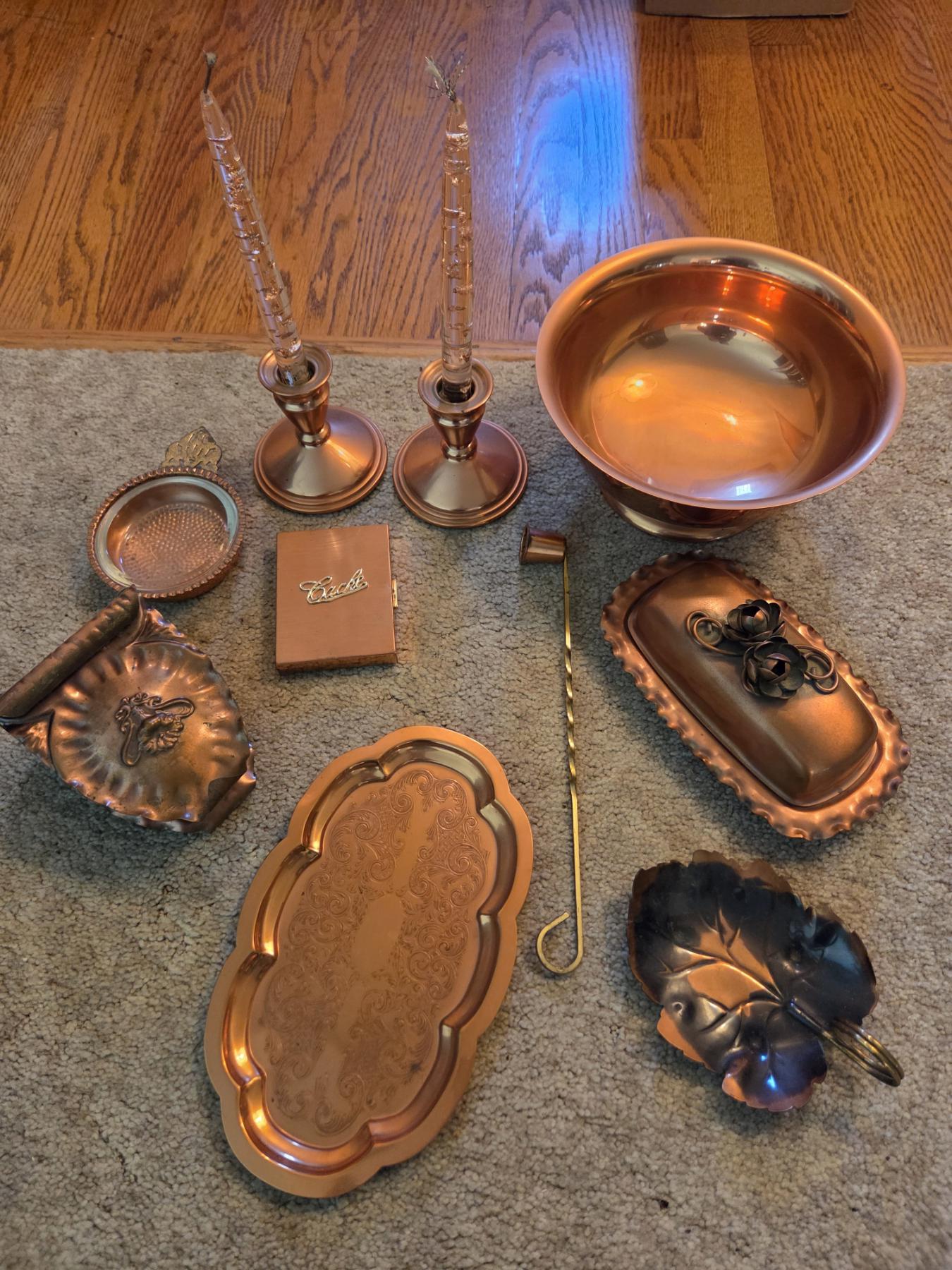 PICKUP IN CANTON - Copper Collection Including Butter Dish, Bowl, Ashtray, Candle Sticks & More