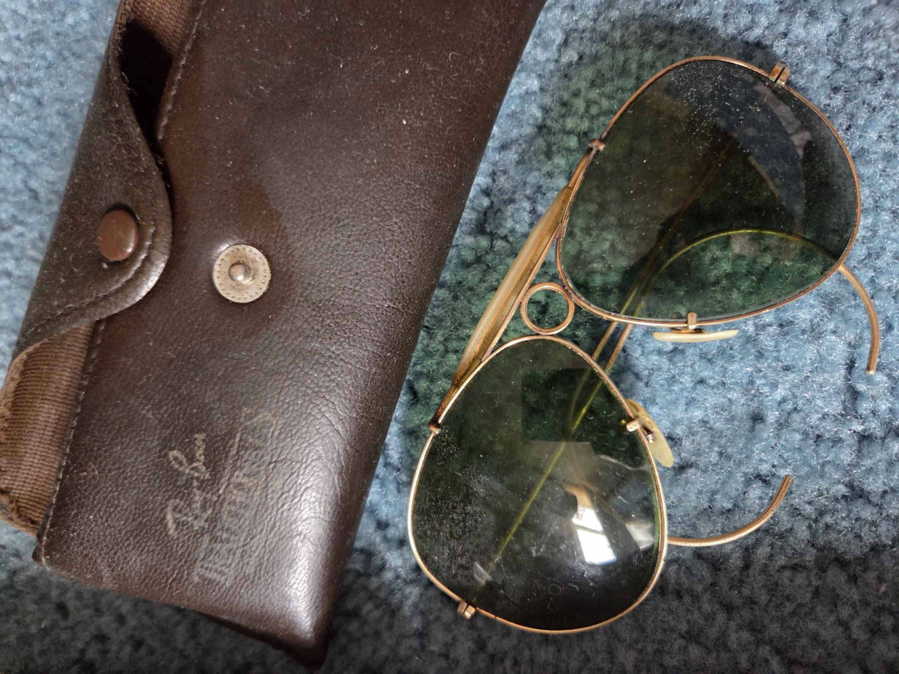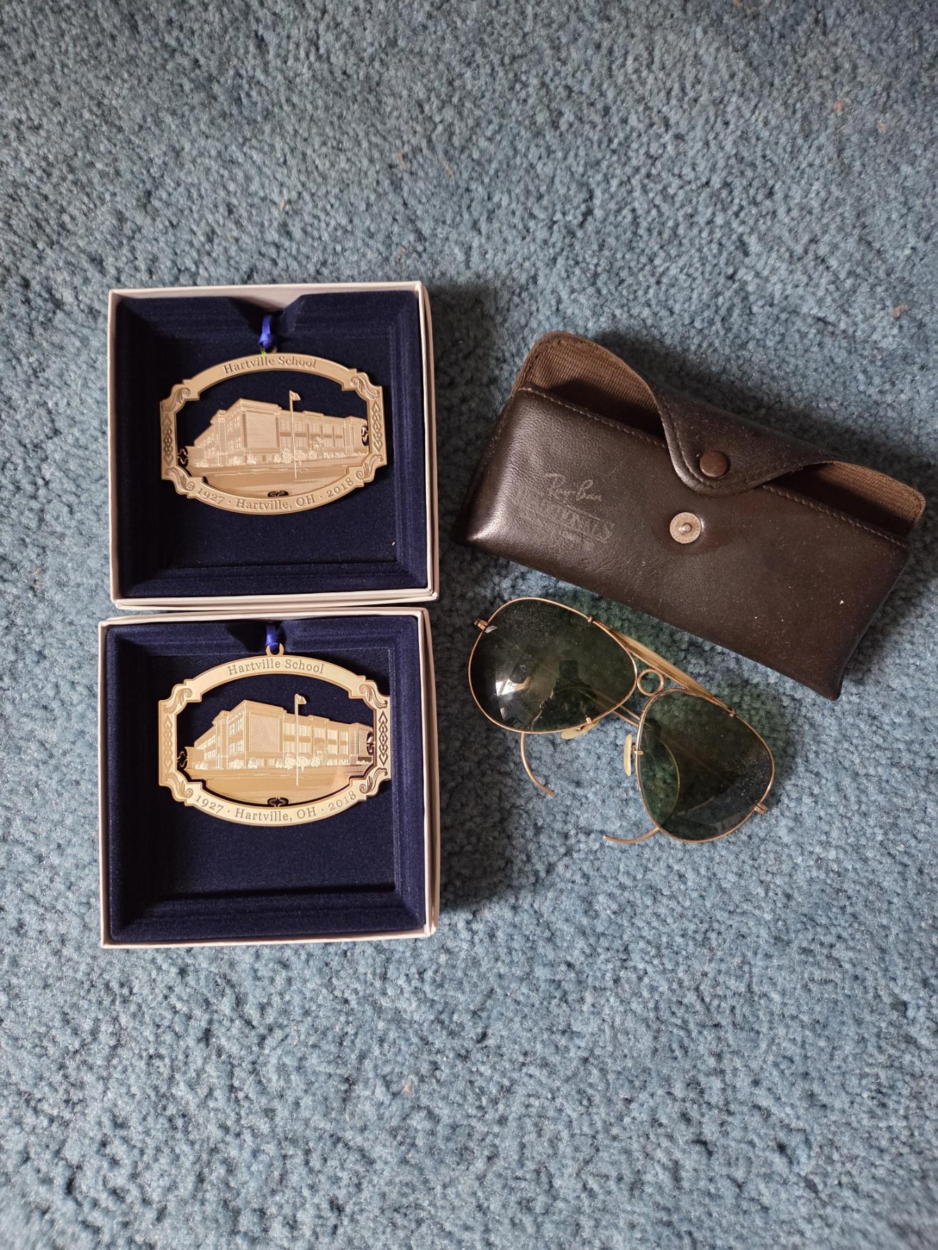 PICKUP IN CANTON - Excellent Condition Vintage Rayban Sunglasses With Leather Case And Two Boxed Hartville Tin Ornaments