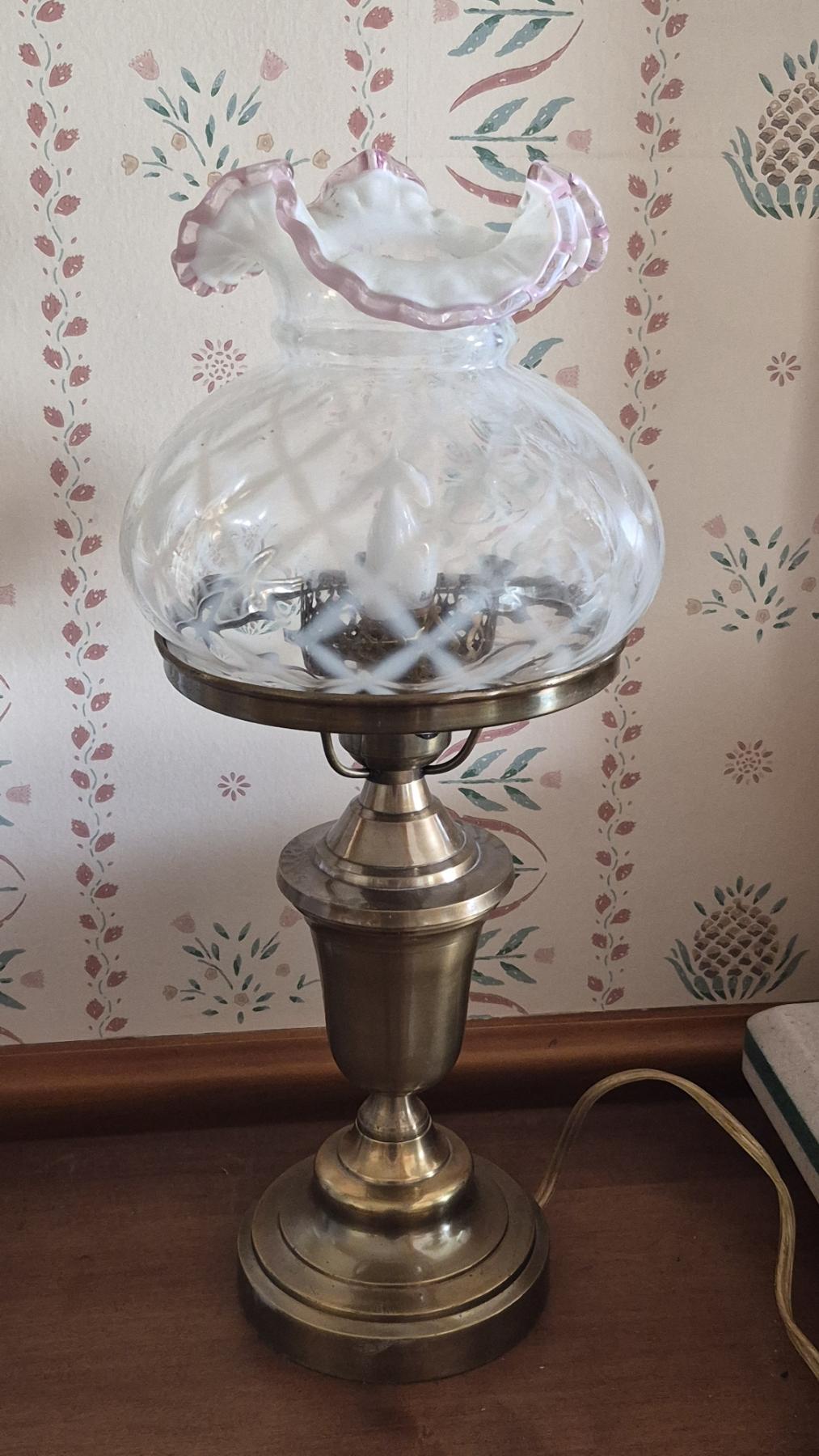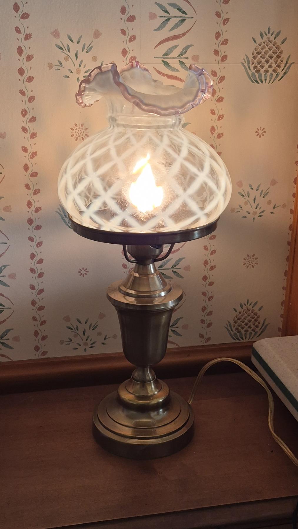 PICKUP IN CANTON - Fantastic FENTON Lavender Crest Shade With Ruffled Top & Criss Cross Opal Lace