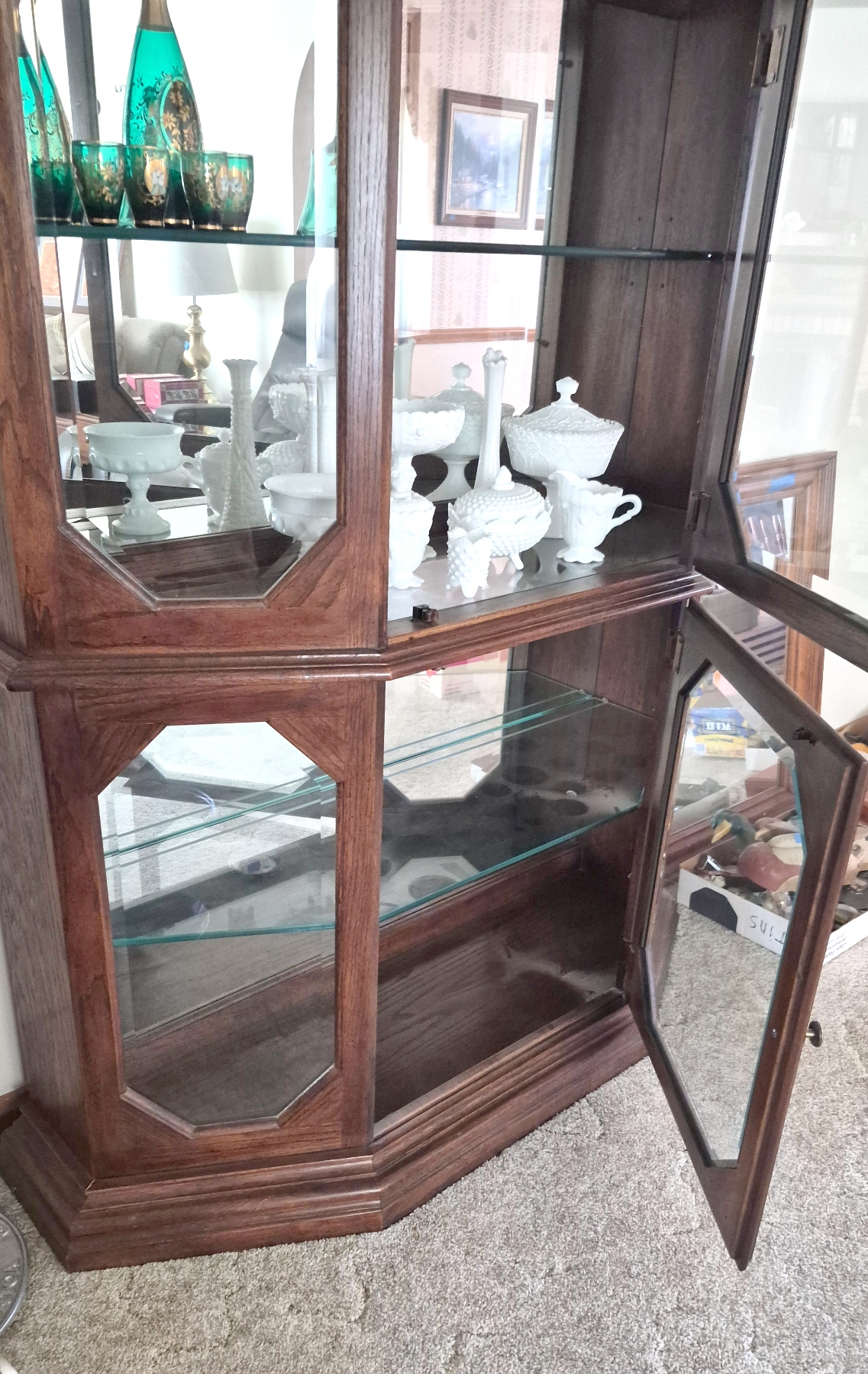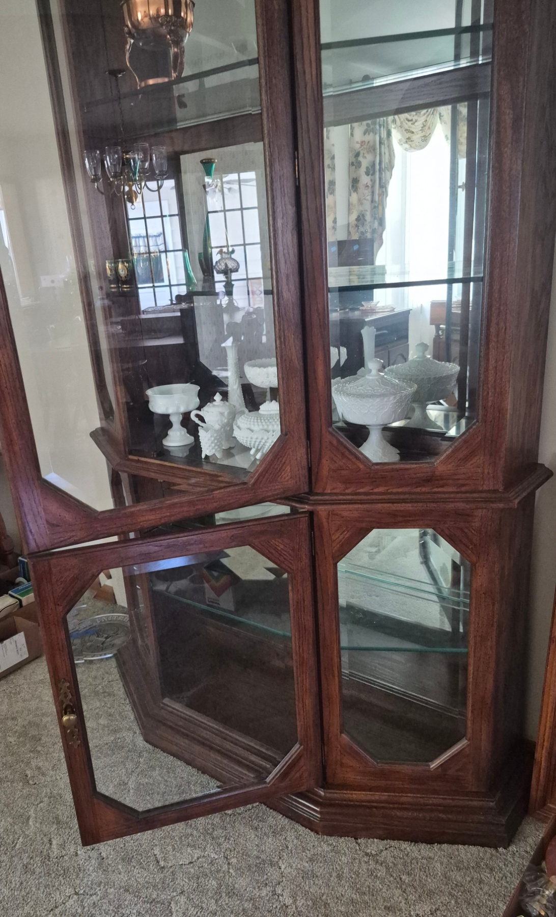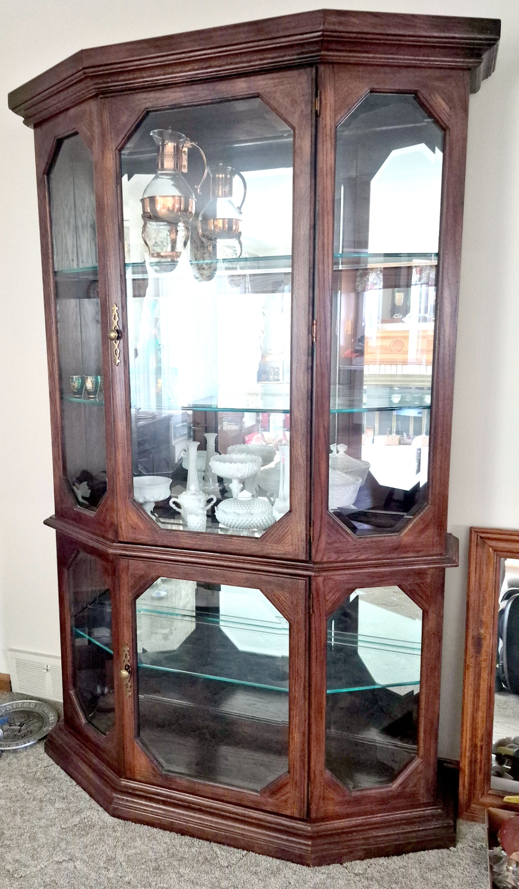 PICKUP IN CANTON - Fantastic Mahogany Mirrored Back Curio Cabinet 4 FT Wide 2 Door Upper & Lower Excellent Like New - This is a super nice furniture item folks, Well taken care of - not an issue anywhere! Do not pass on this one!
