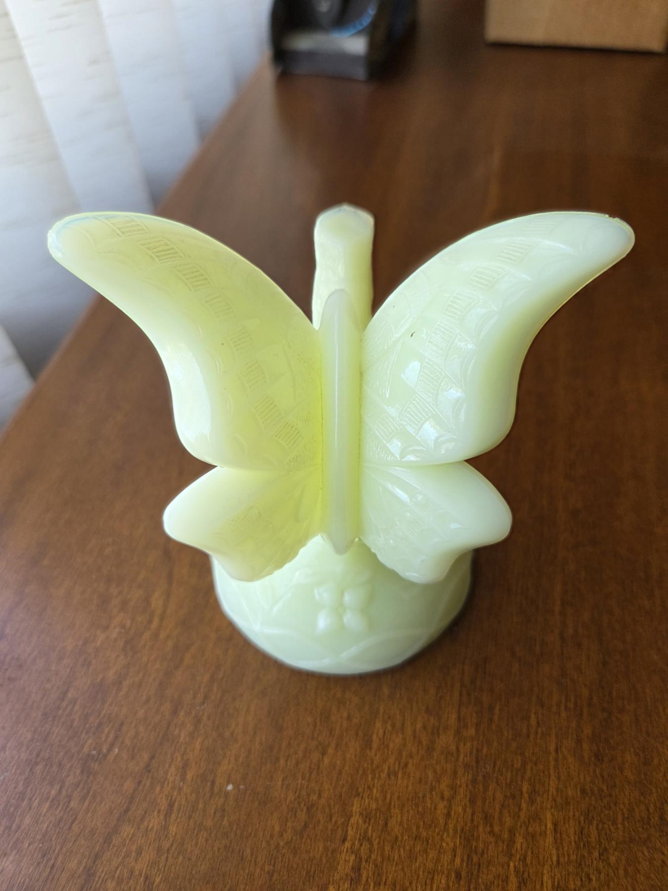 PICKUP IN CANTON - Fantastic Vintage Custard Uranium Glass 5'' Butterfly