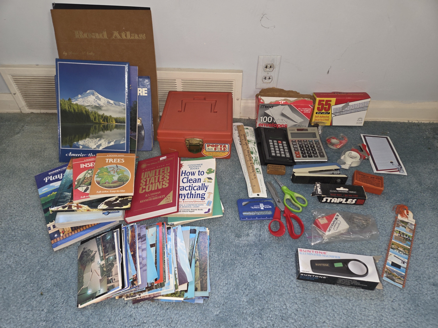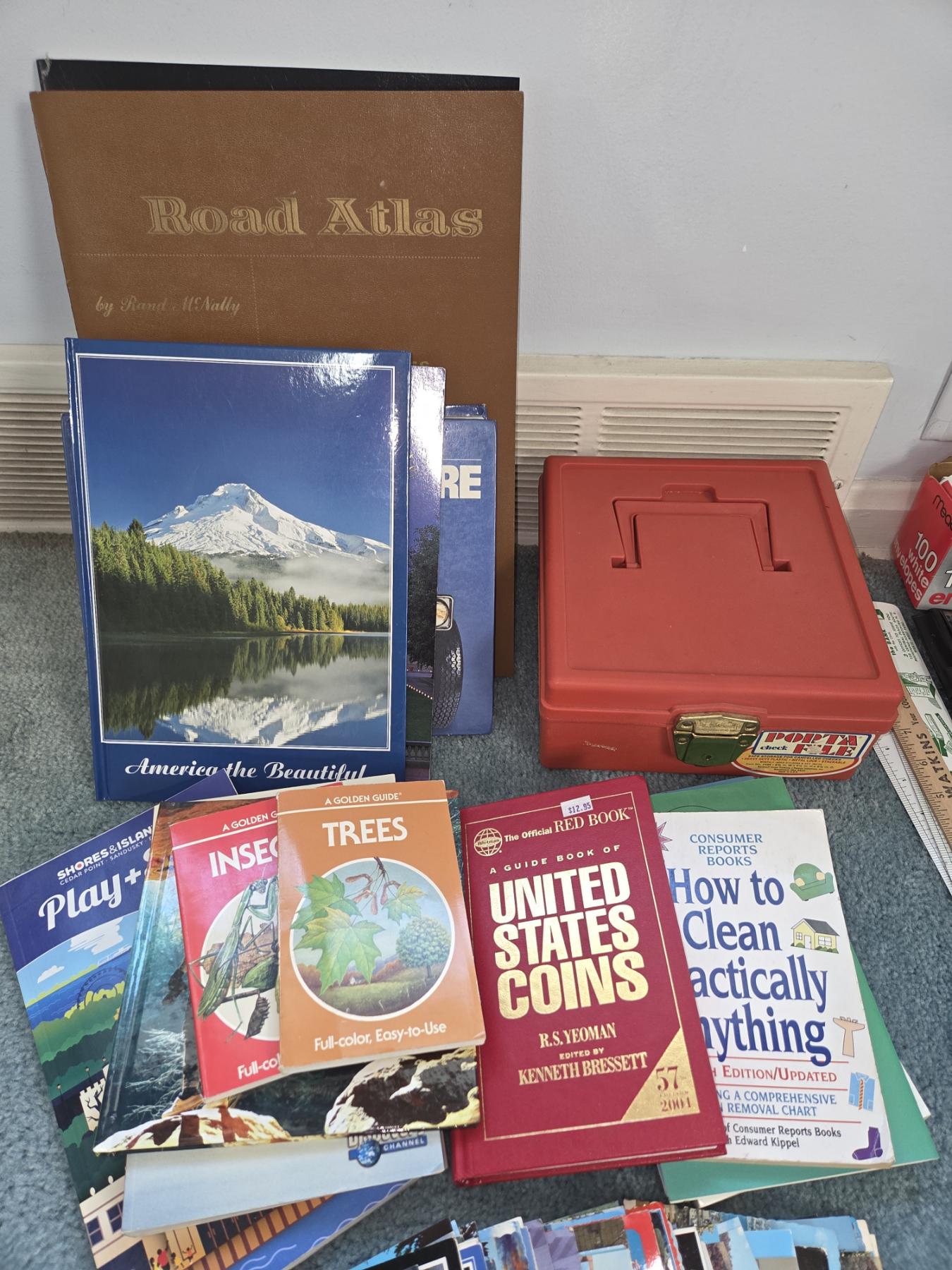PICKUP IN CANTON - Home Office Supplies, Small File Box, Two Road Atlases, Post Cards, And Useful Book Group