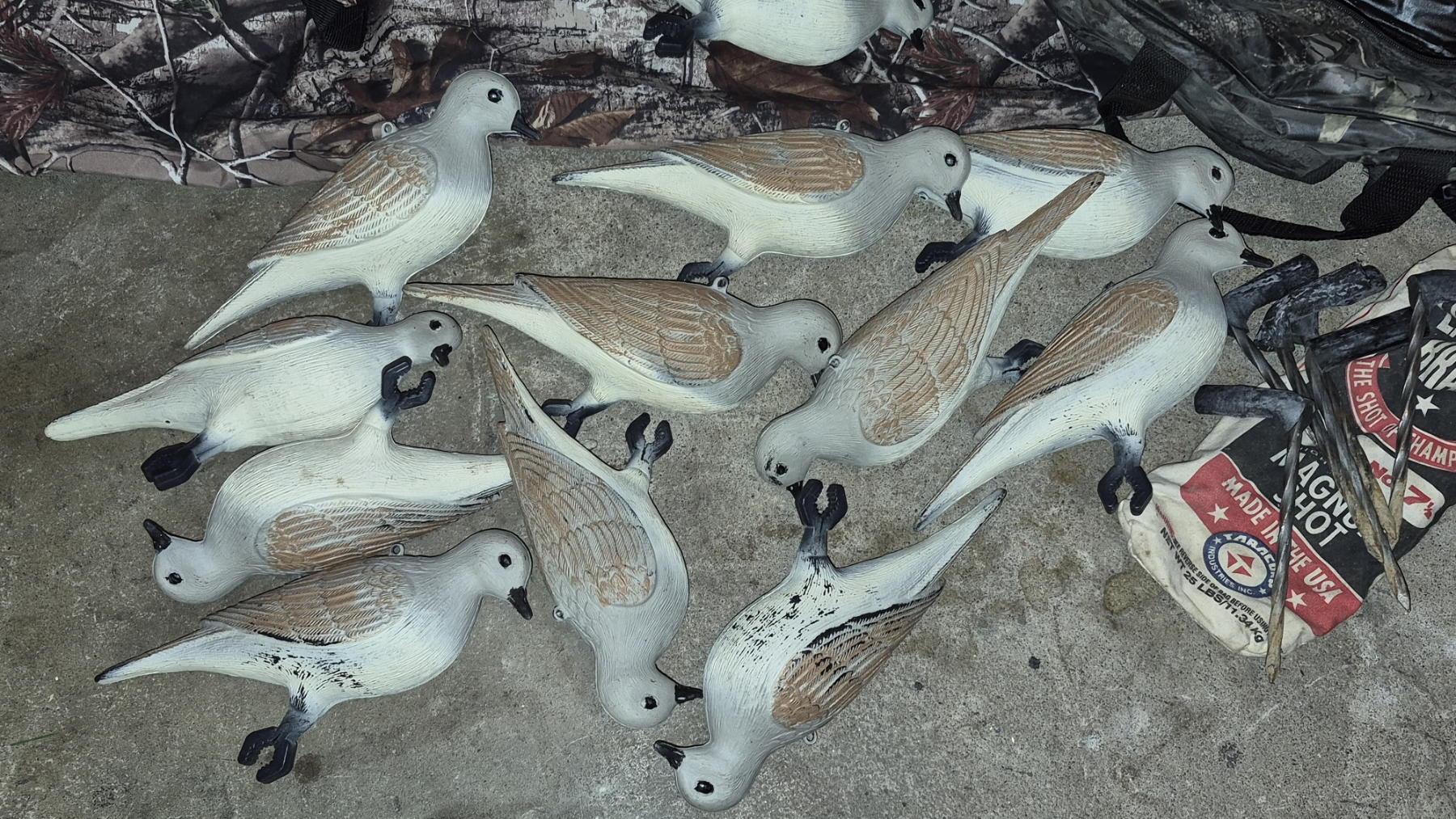 PICKUP IN CANTON - Hunting Bird (12 Doves) Decoys with Large Duffle Bag & Ground Pegs Included