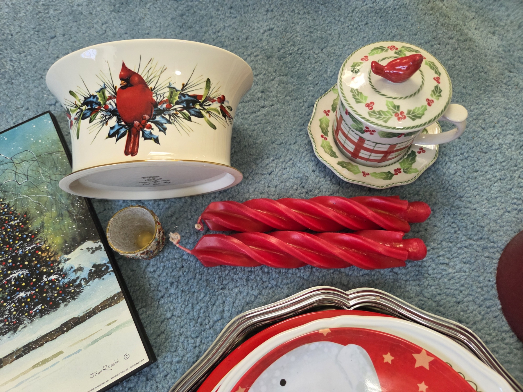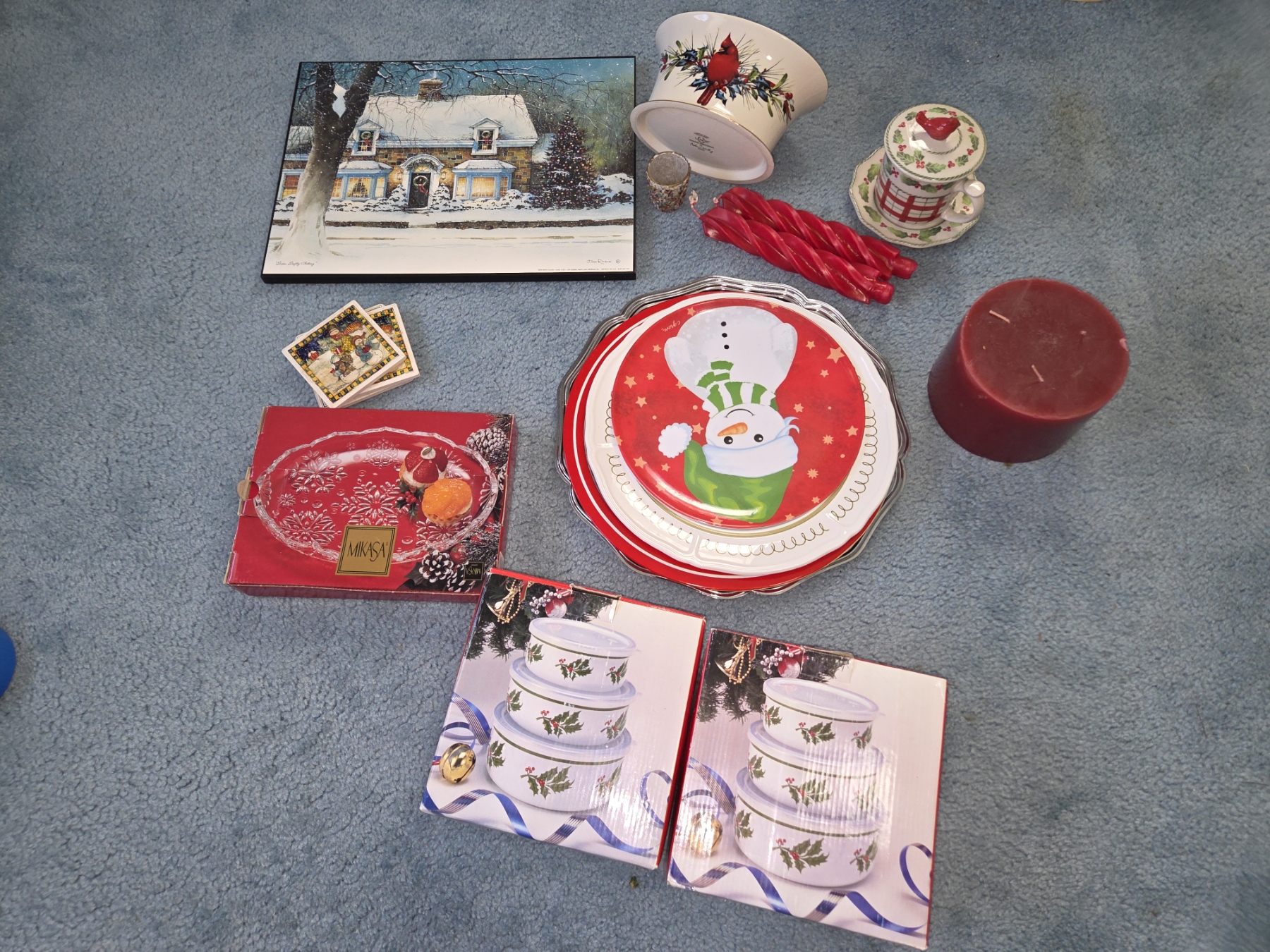 PICKUP IN CANTON - Large Collection Of Christmas Items Including Candles, New Bowl Sets, Coasters, & Wall Decor
