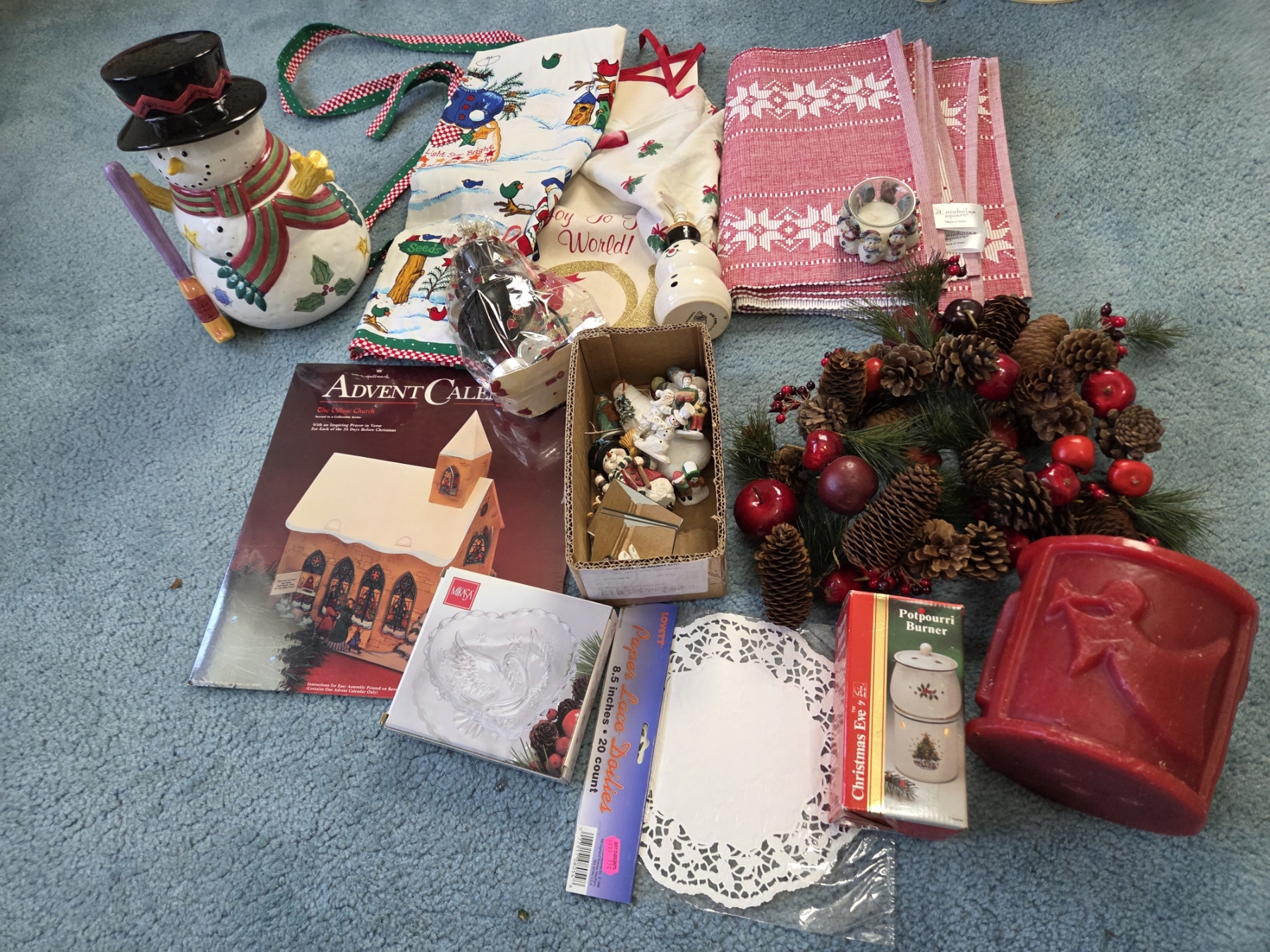 PICKUP IN CANTON - Large Collection Of Christmas Items Including Cookie Jar, New Aprons, Advent Calendar, Placemat Set & More!