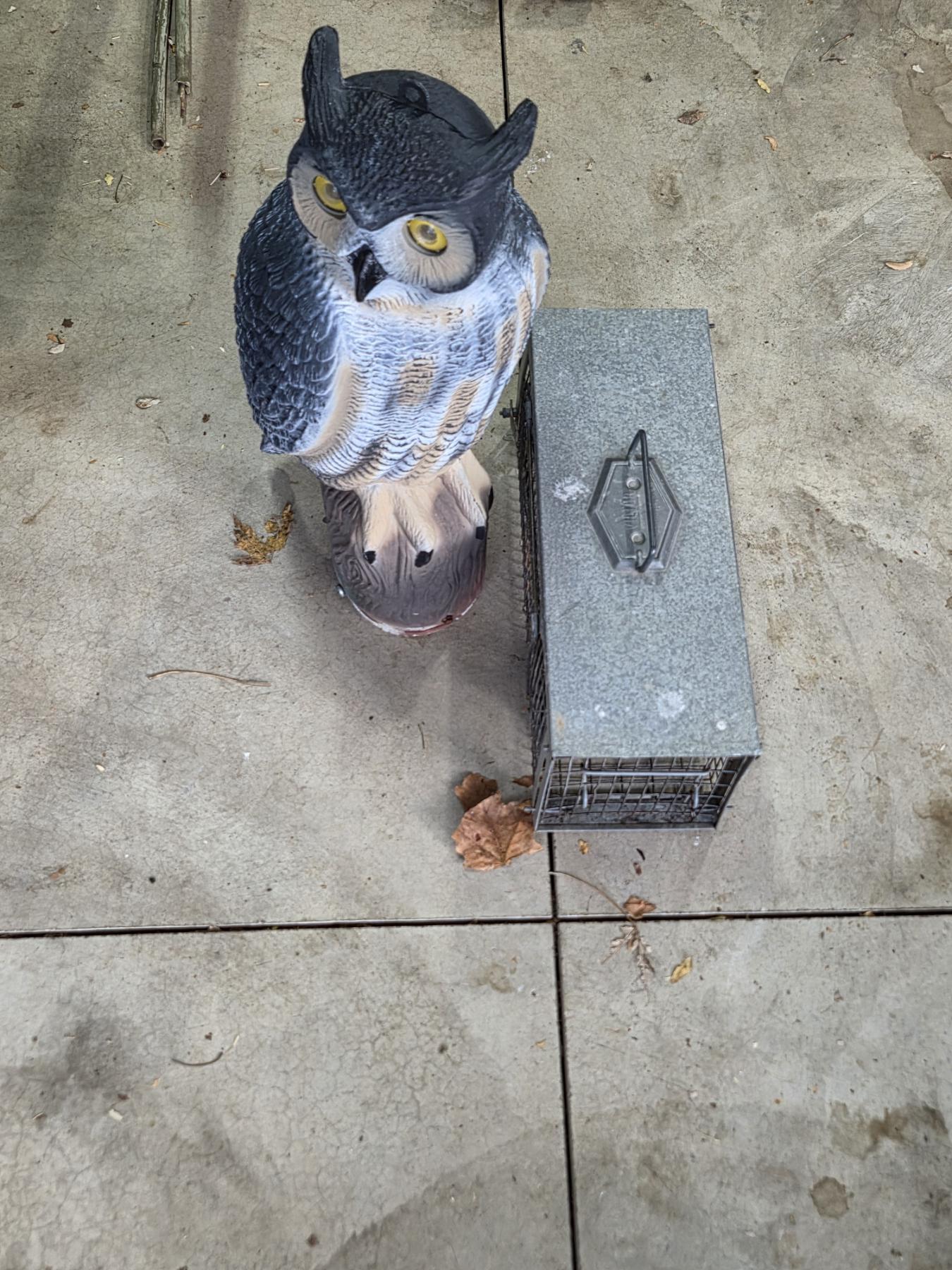 PICKUP IN CANTON - Life Size Owl Decoy And Small Aluminum Pest Trap