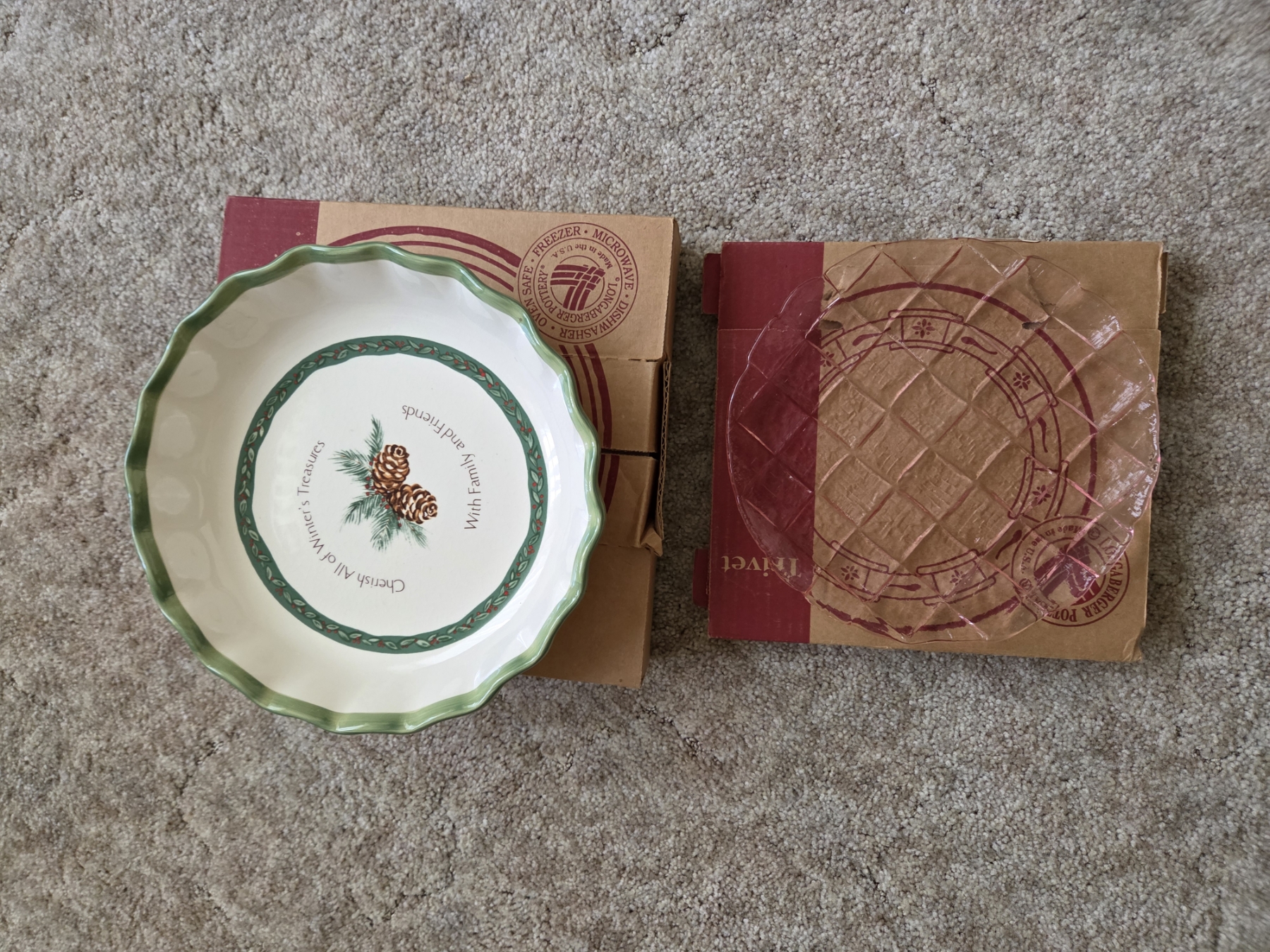 PICKUP IN CANTON - Longaberger Pink Glass Trivet And Oven Safe Pie Pan In Excellent Condition