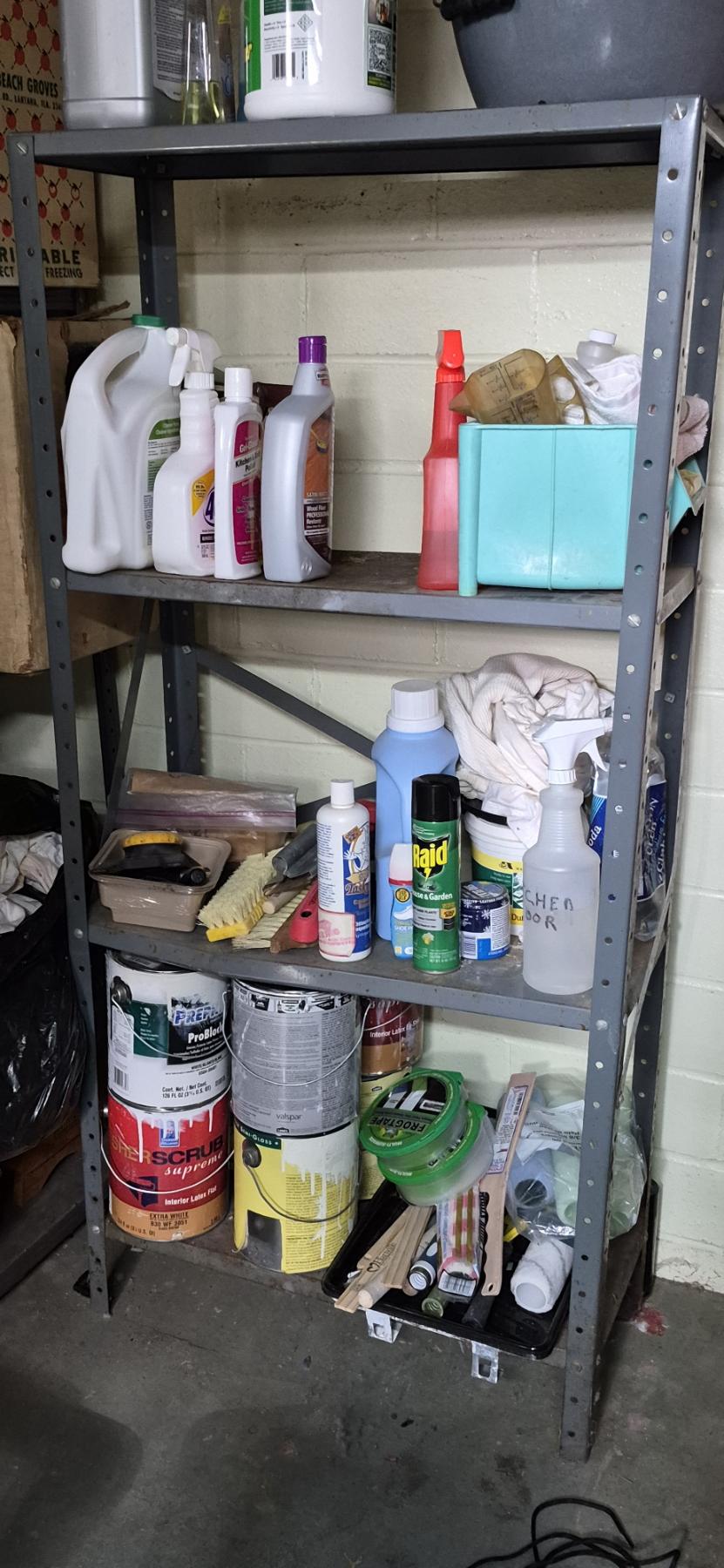 PICKUP IN CANTON - METAL STORAGE RACK WITH SHELVES 60 T X 28 W X12 D --- CONTENTS NOT INCLUDED