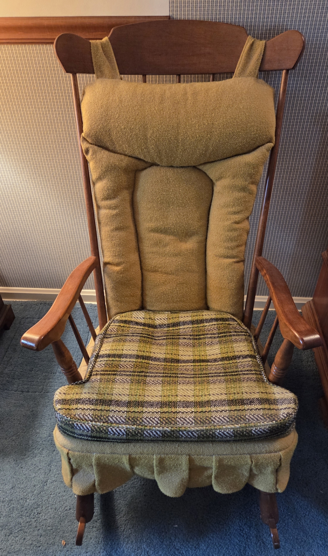 PICKUP IN CANTON - Mid Century Modern Rocking Chair With Avocado Green Accent Cushions 22.5'' x 42''