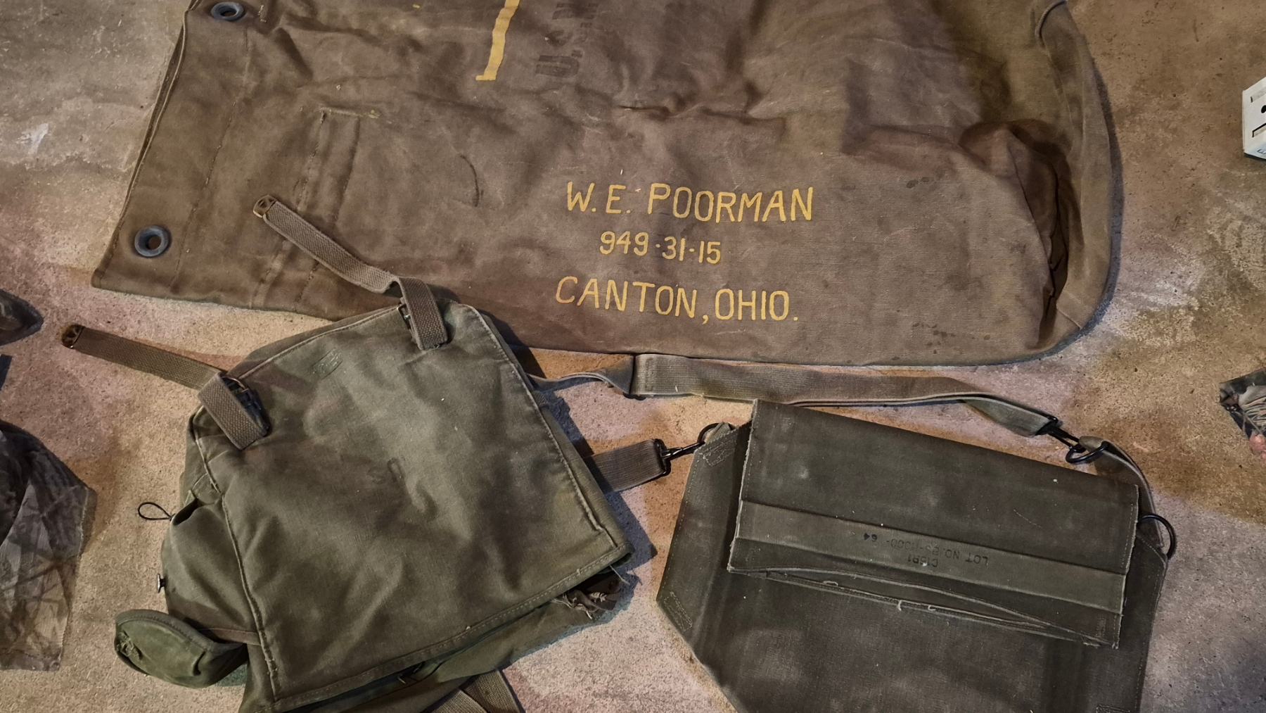 PICKUP IN CANTON - Military Full Size Duffle Bag, Back Pack & Pouch As Shown