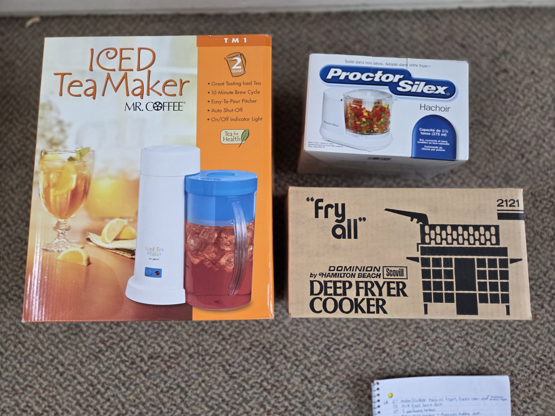 PICKUP IN CANTON - New In Box, Hamilton Beach Mini Deep Fryer, Mr. Coffee Iced Tea Maker, Proctor Silex Chopper