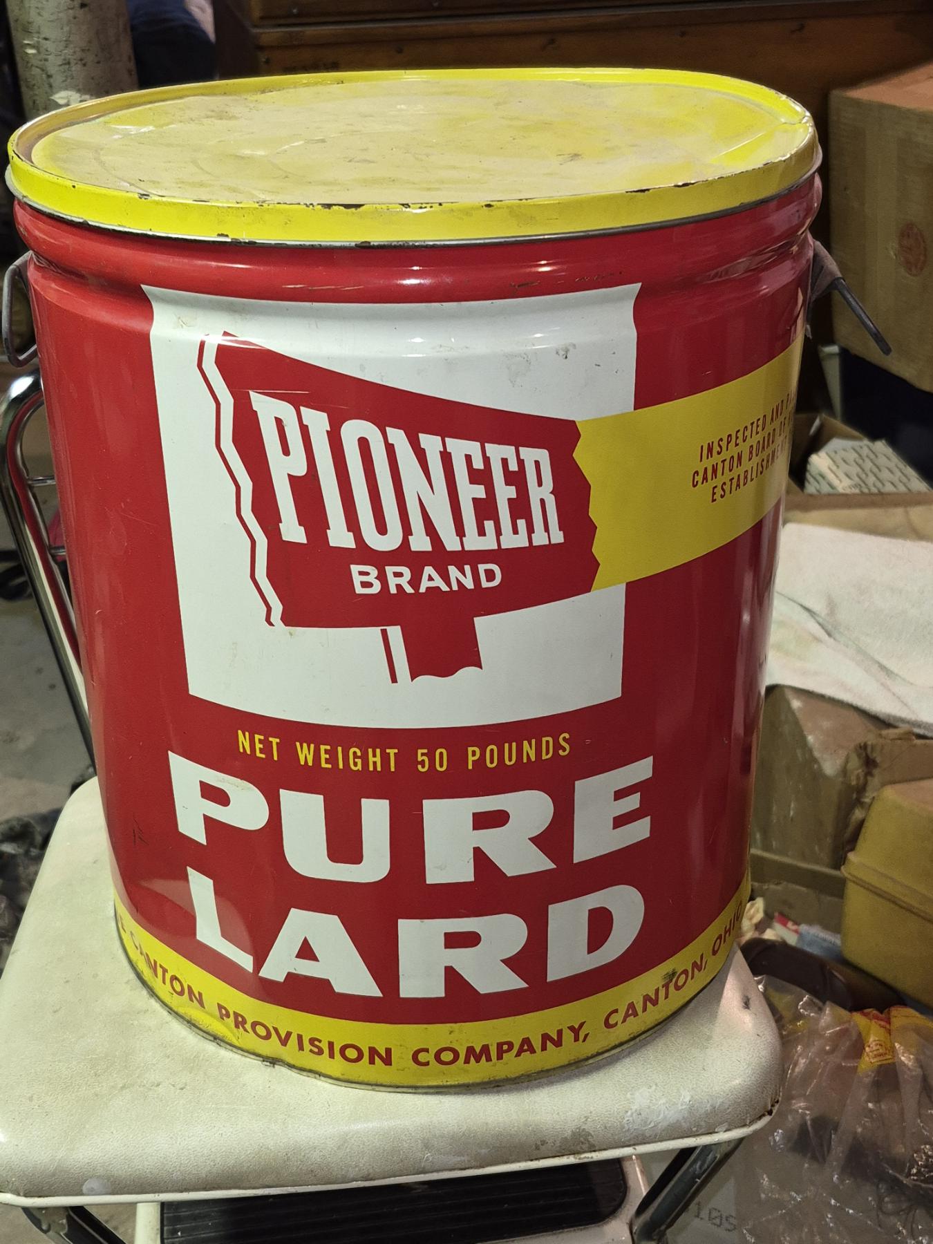 PICKUP IN CANTON - PIONEER LARD Advertising 5 Gallon Tin (Empty) - See Pics