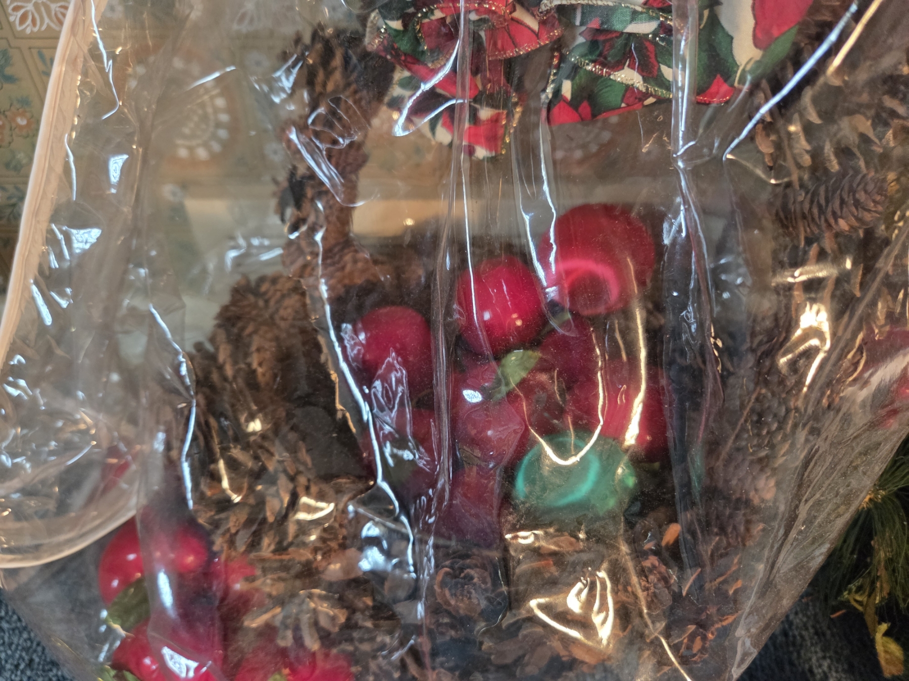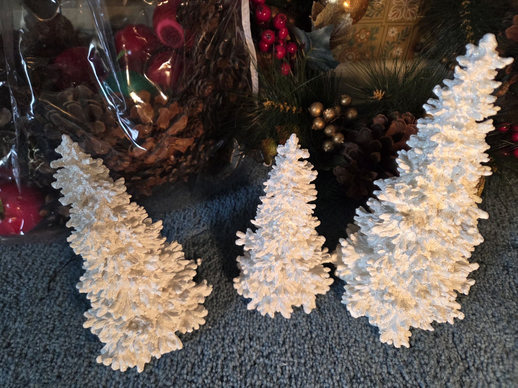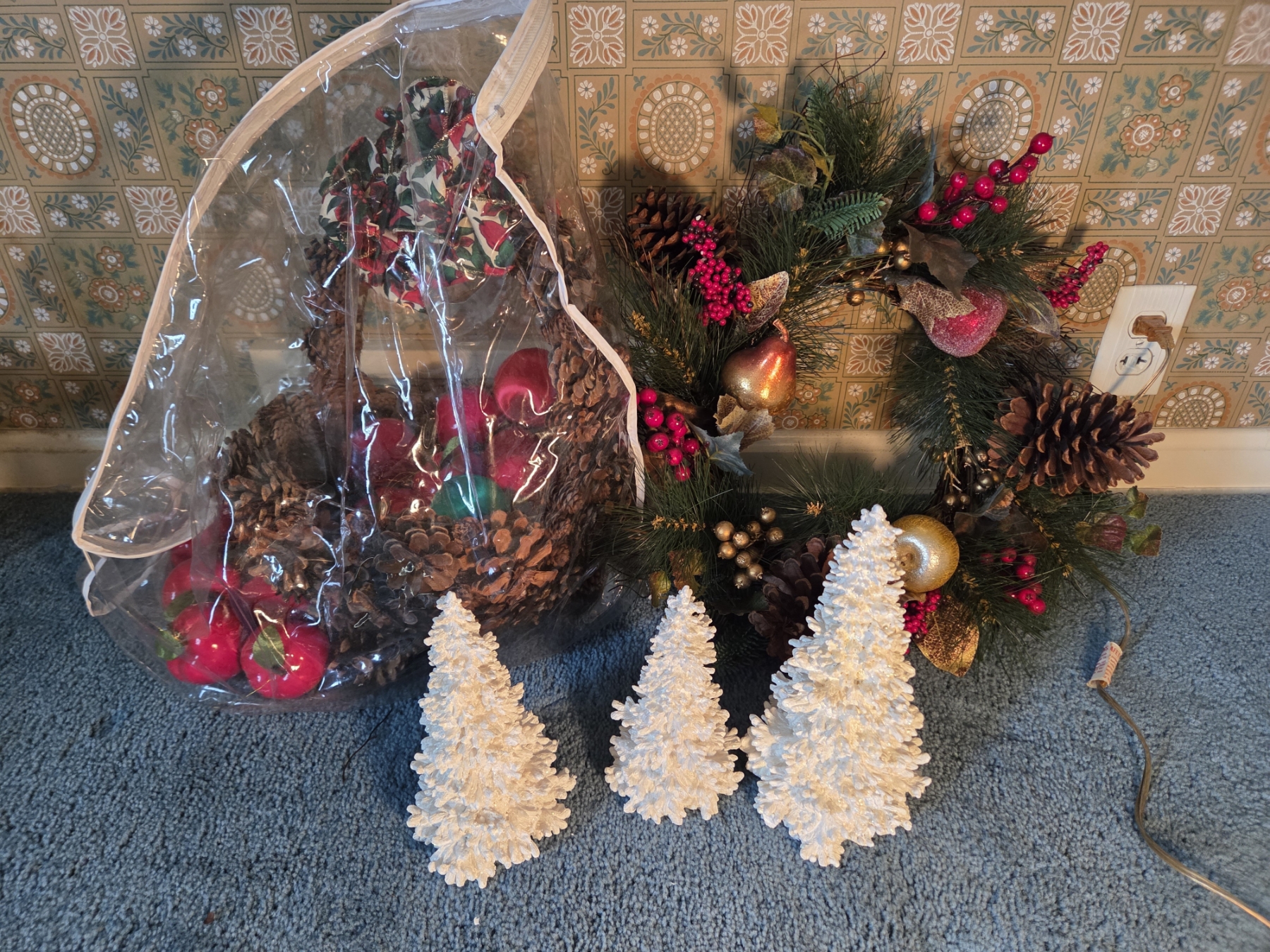 PICKUP IN CANTON - Pinecone Basket, Wreath, And 3 Resin Trees. All In Excellent Condition