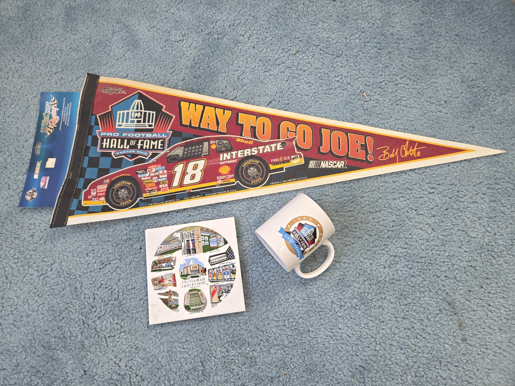 PICKUP IN CANTON - Pro Football H.O.F. Collector Items, Including Ceramic Trivet, Mug, And Nascar Pennant