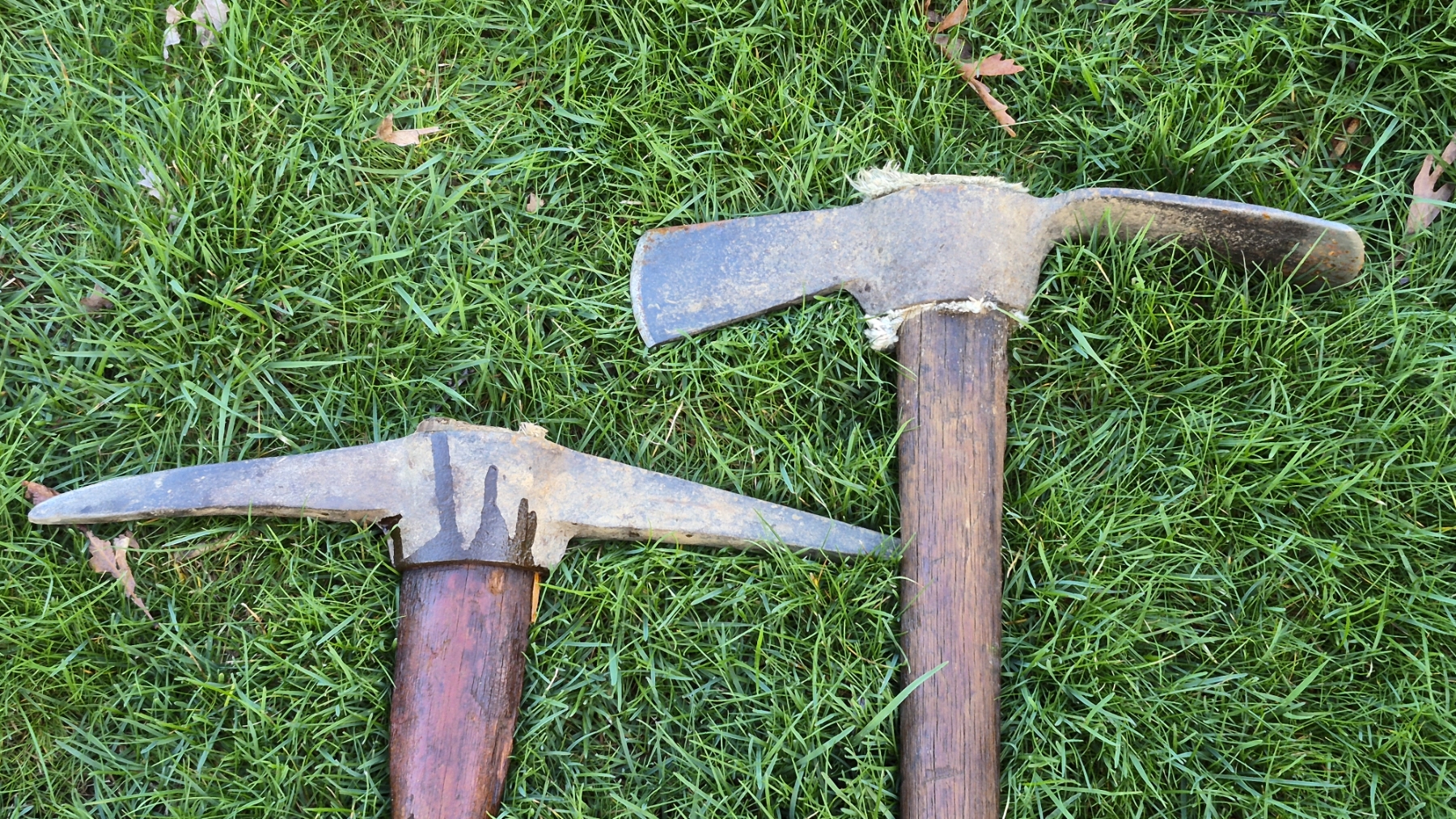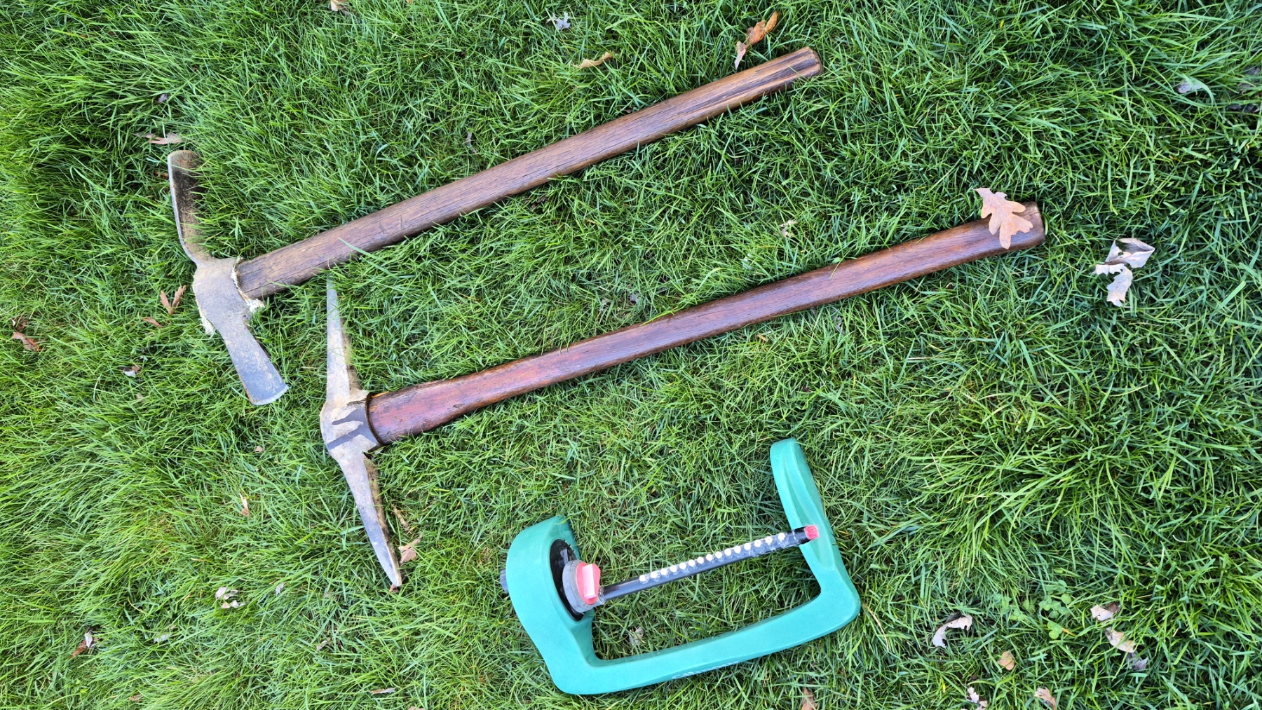 PICKUP IN CANTON - SET OF 2 (TWO) PCS - PICK AXE & GRUB AXE - & LAWN SPRINKLER - GOOD CONDITION