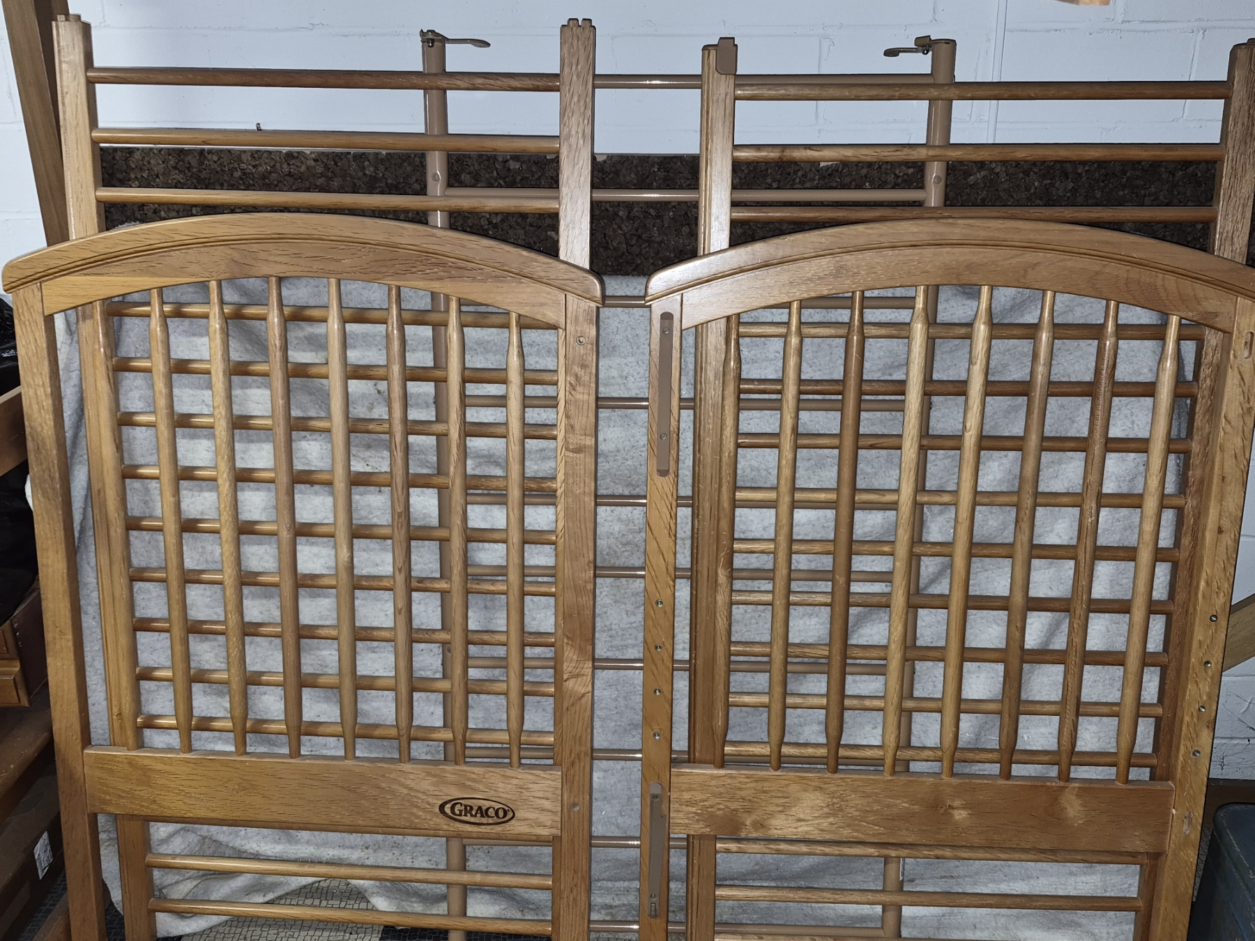 PICKUP IN CANTON - SOLID OAK CHILDS CRIB - HARDWOOD - ALL COMPLETE READY FOR TRANSPORT Measures 30 W x 52 L x 40 T