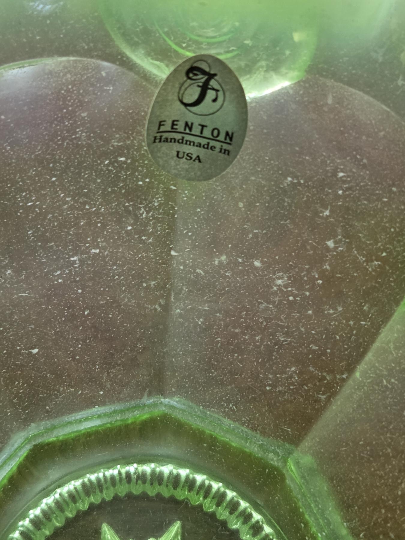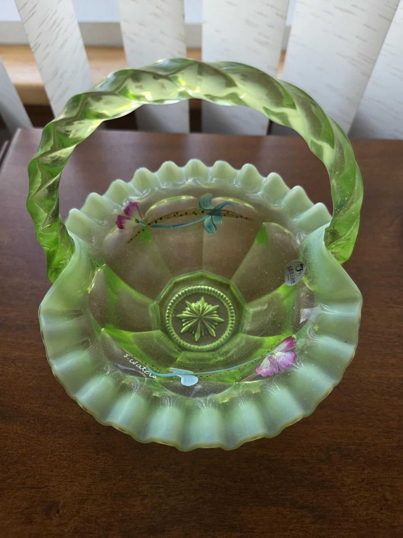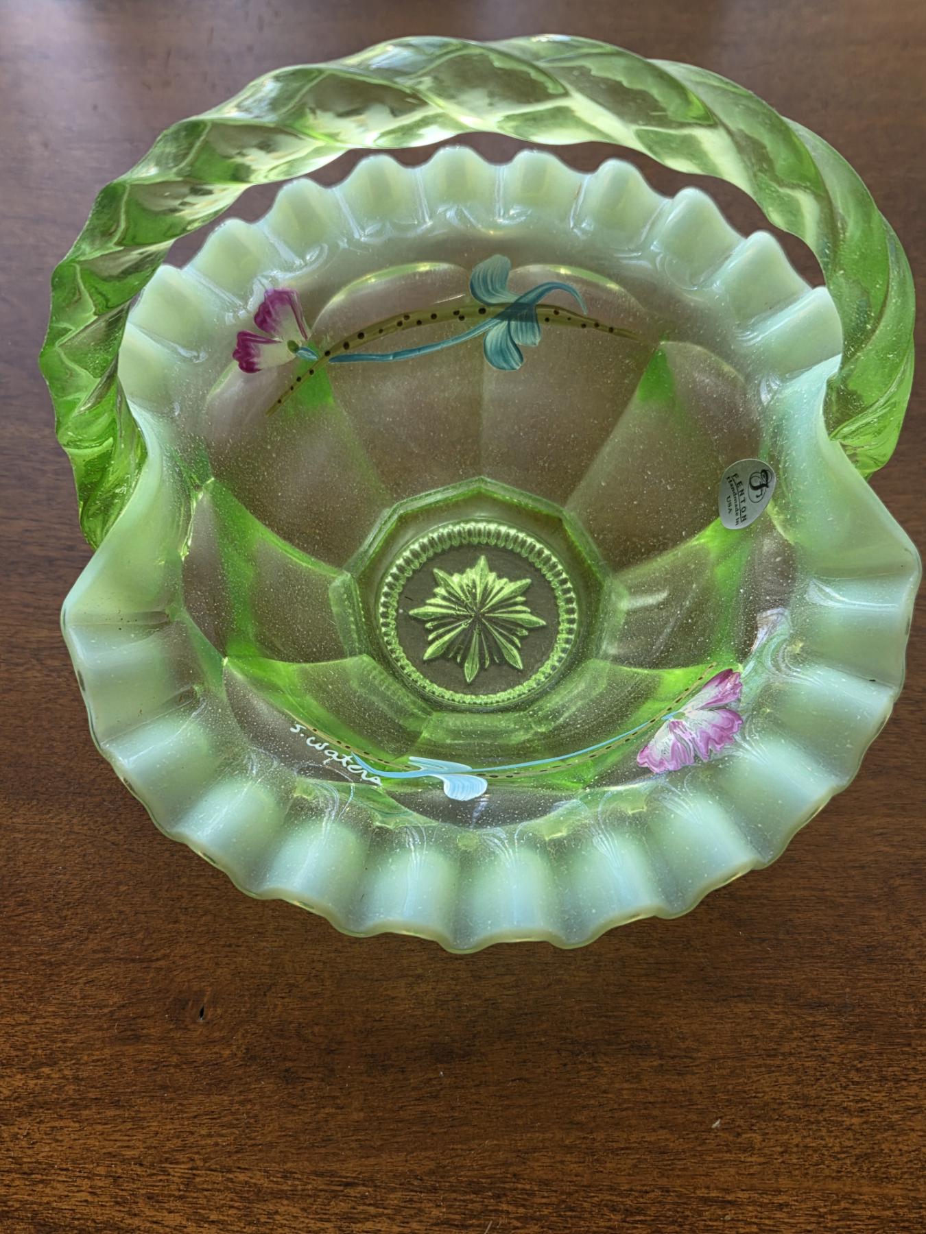 PICKUP IN CANTON - Stunning 6.5'' x 7'' Vintage Fenton Hand Painted Uranium Glass Basket