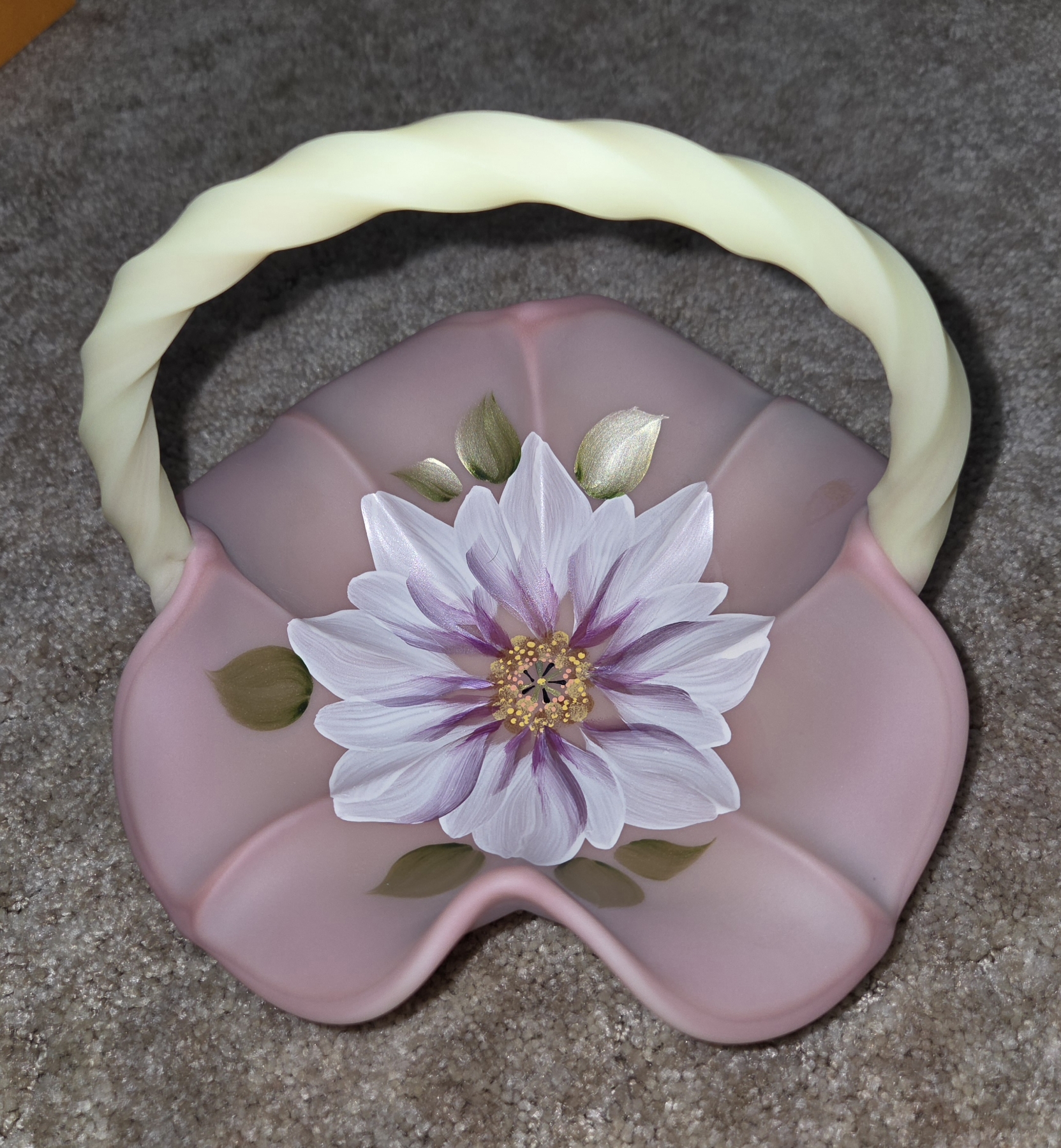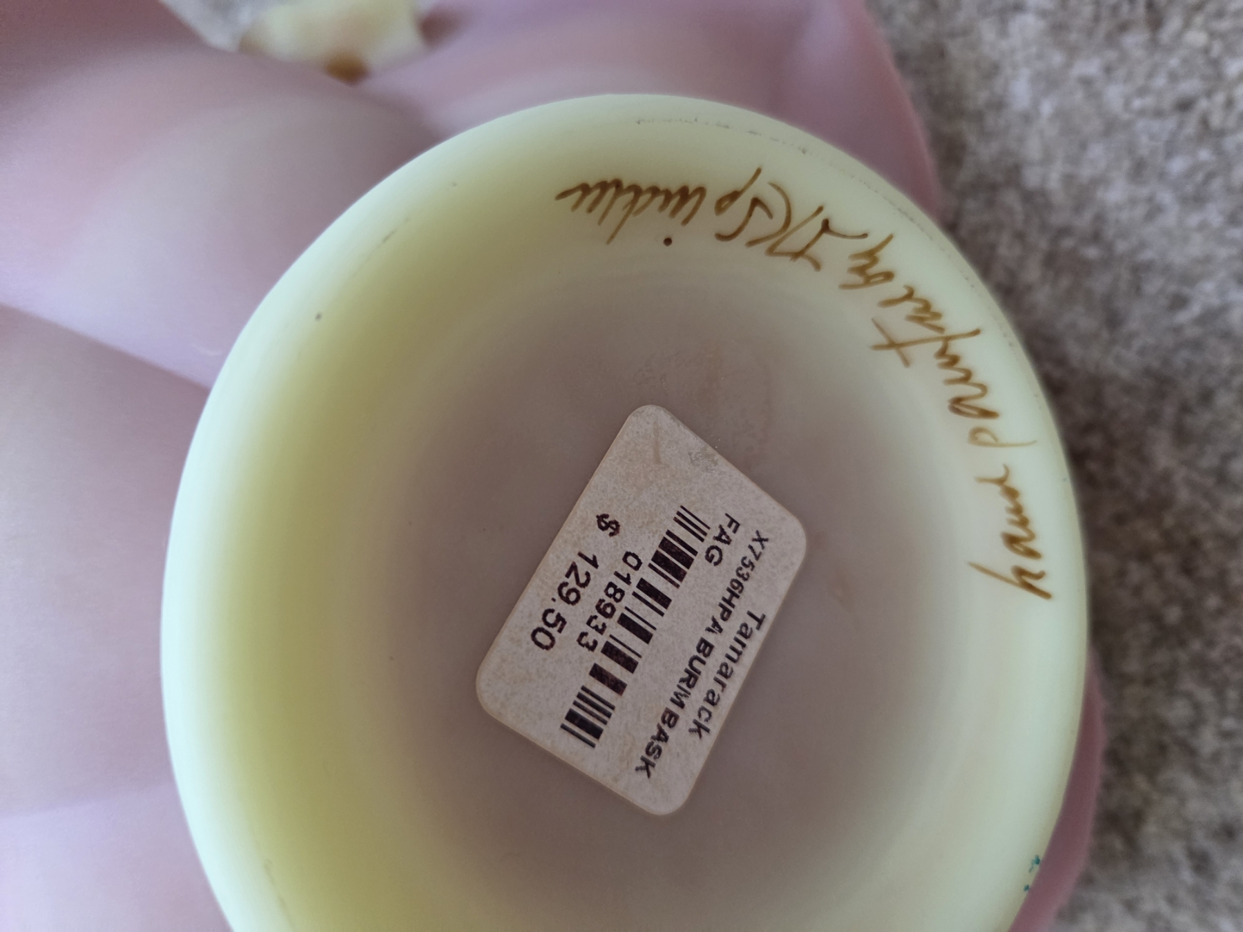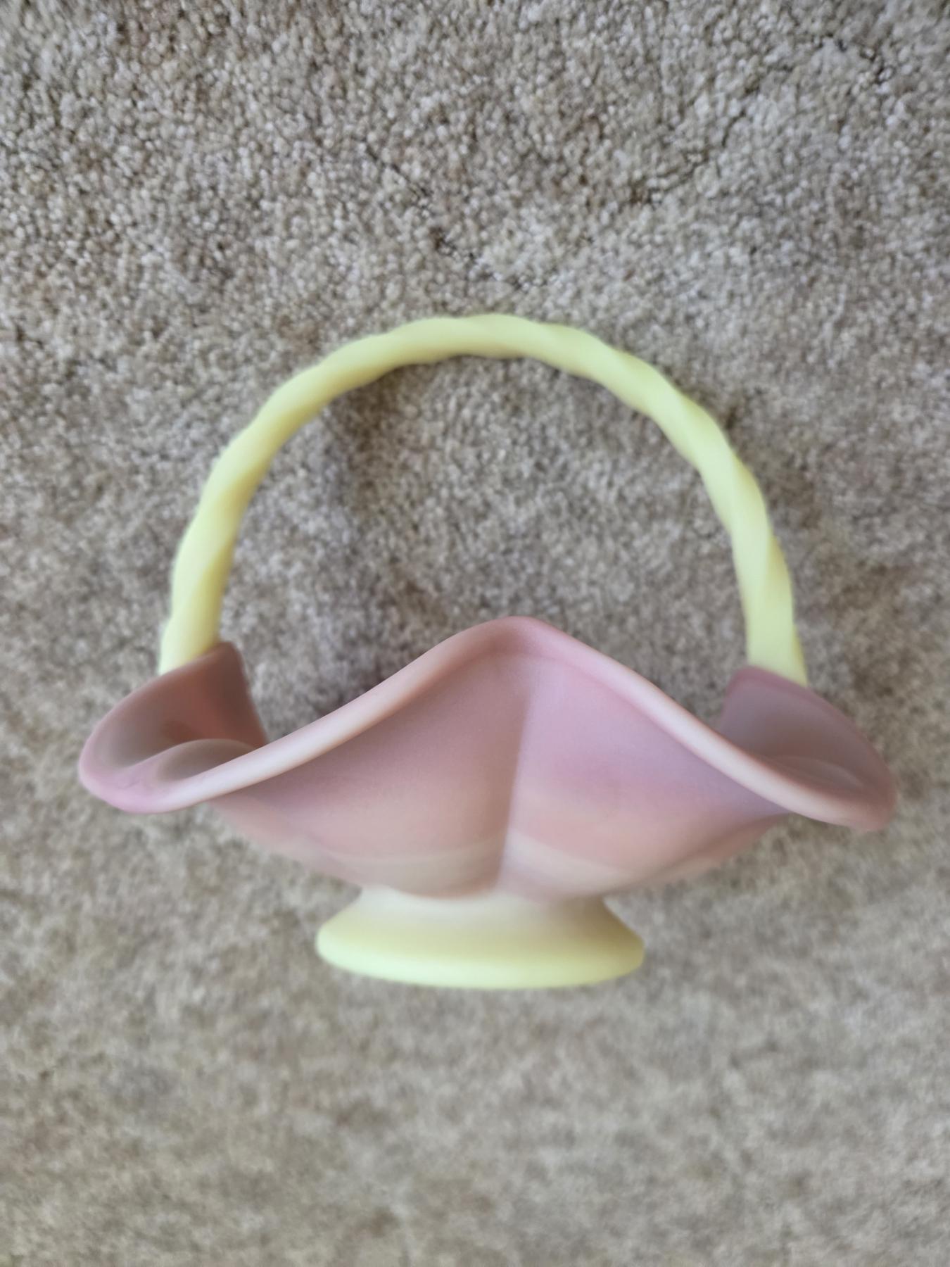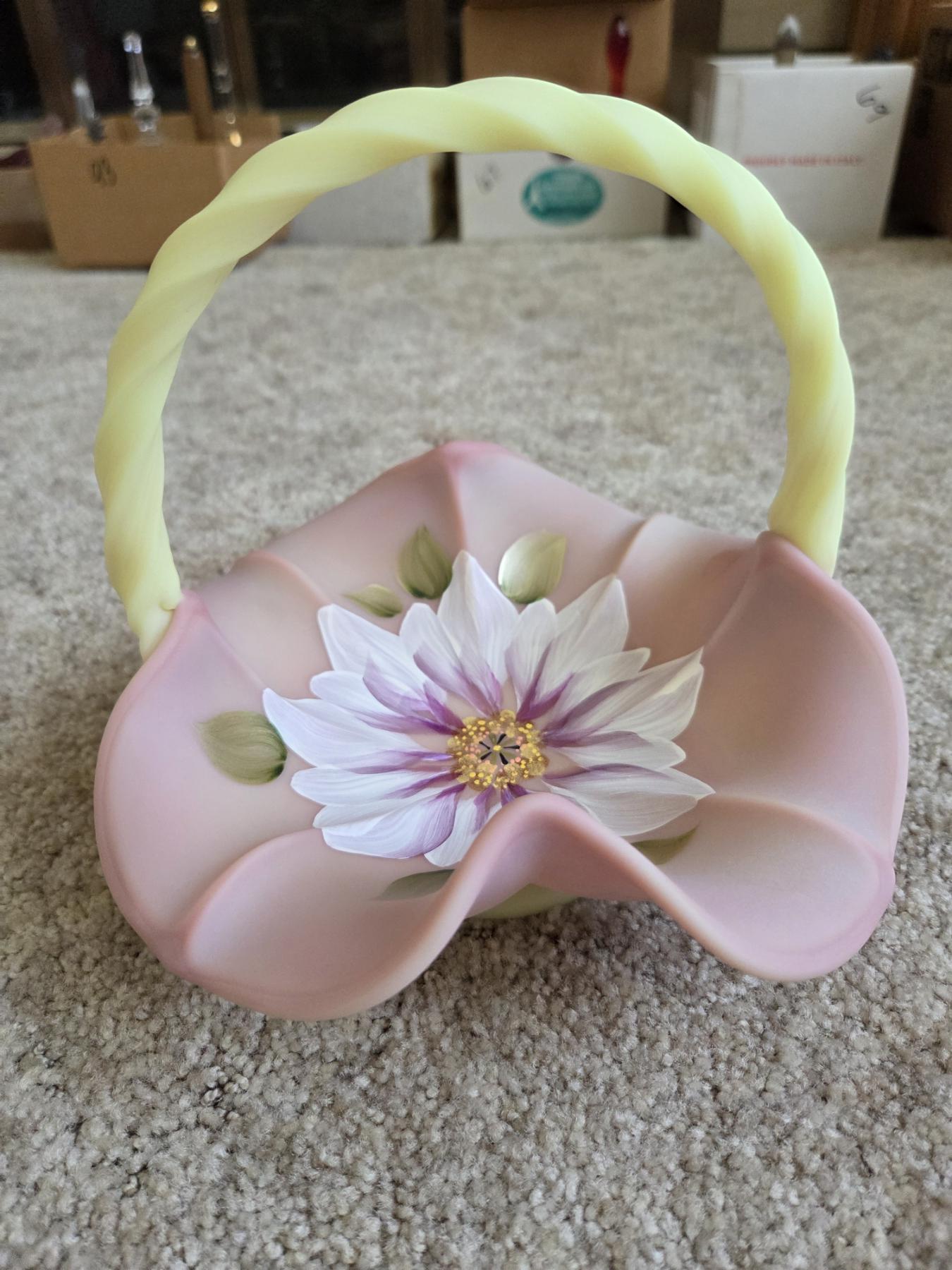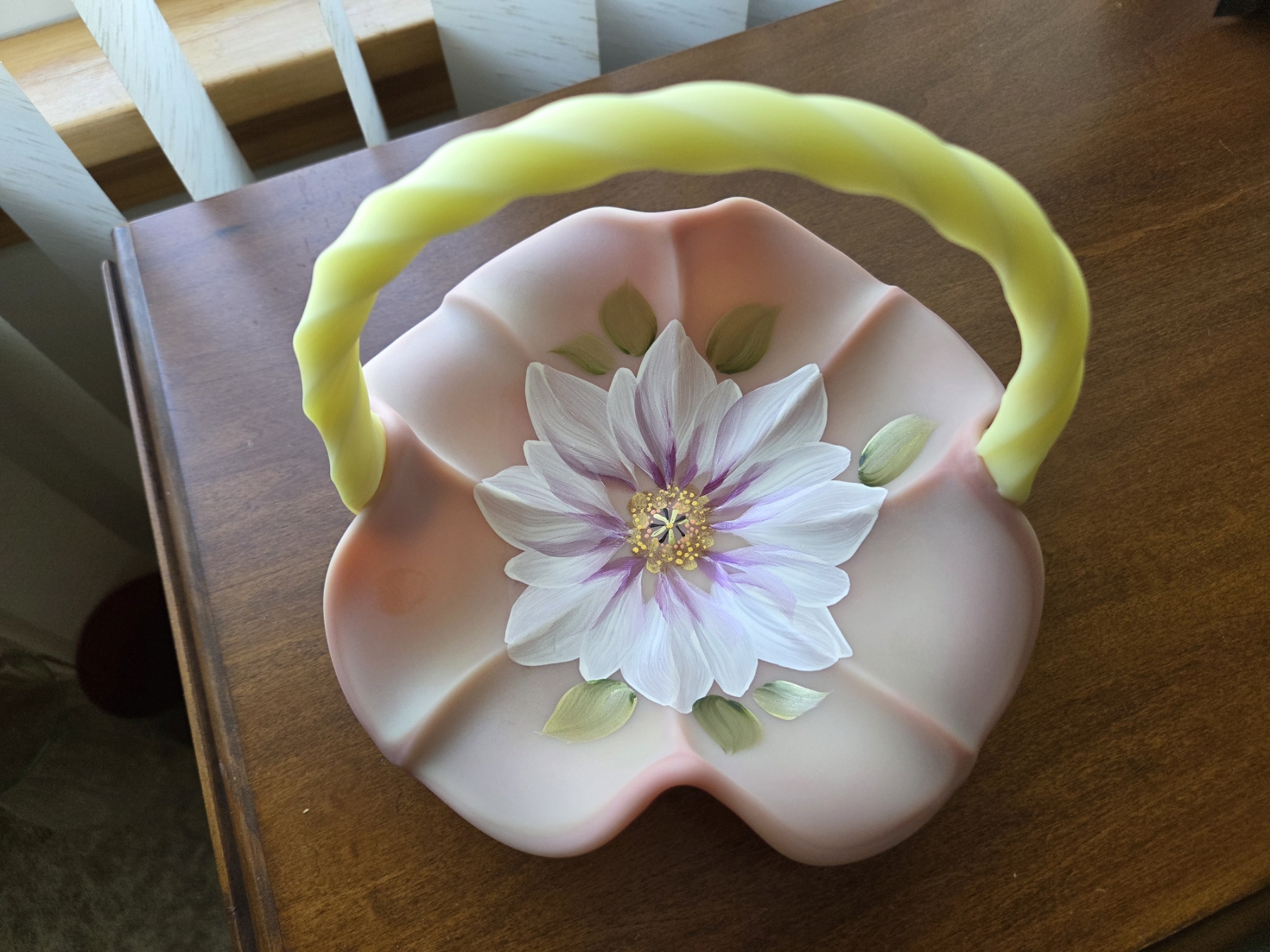 PICKUP IN CANTON - Stunning 8.5'' Hand painted Fenton Custard Uranium Glass Glass Basket In Excellent Condition