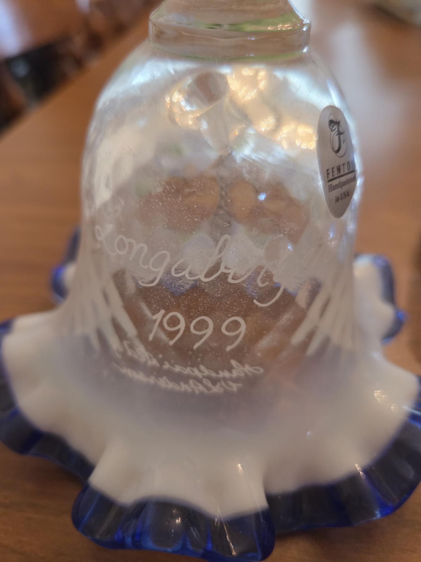 PICKUP IN CANTON - Two Fenton Glass Collector Bells, Including 1999 Longaberger Edition