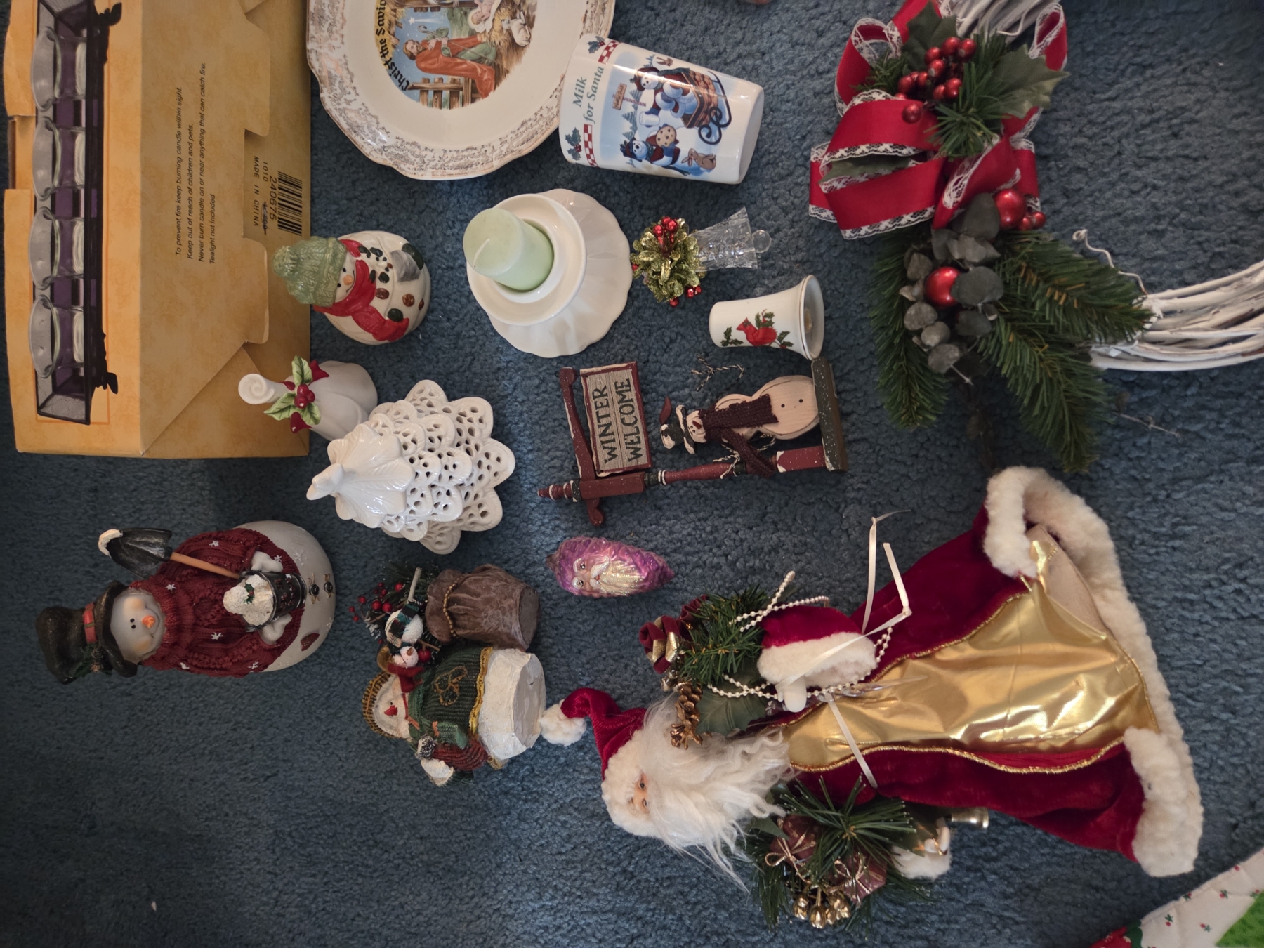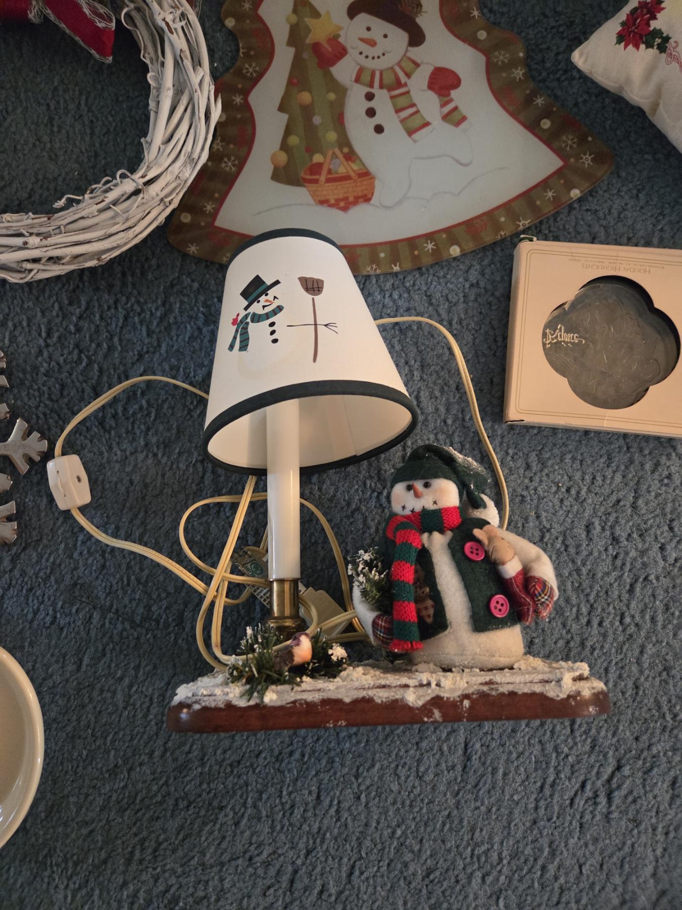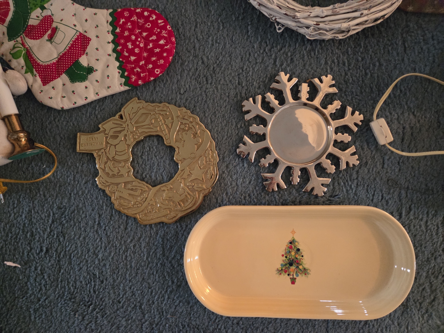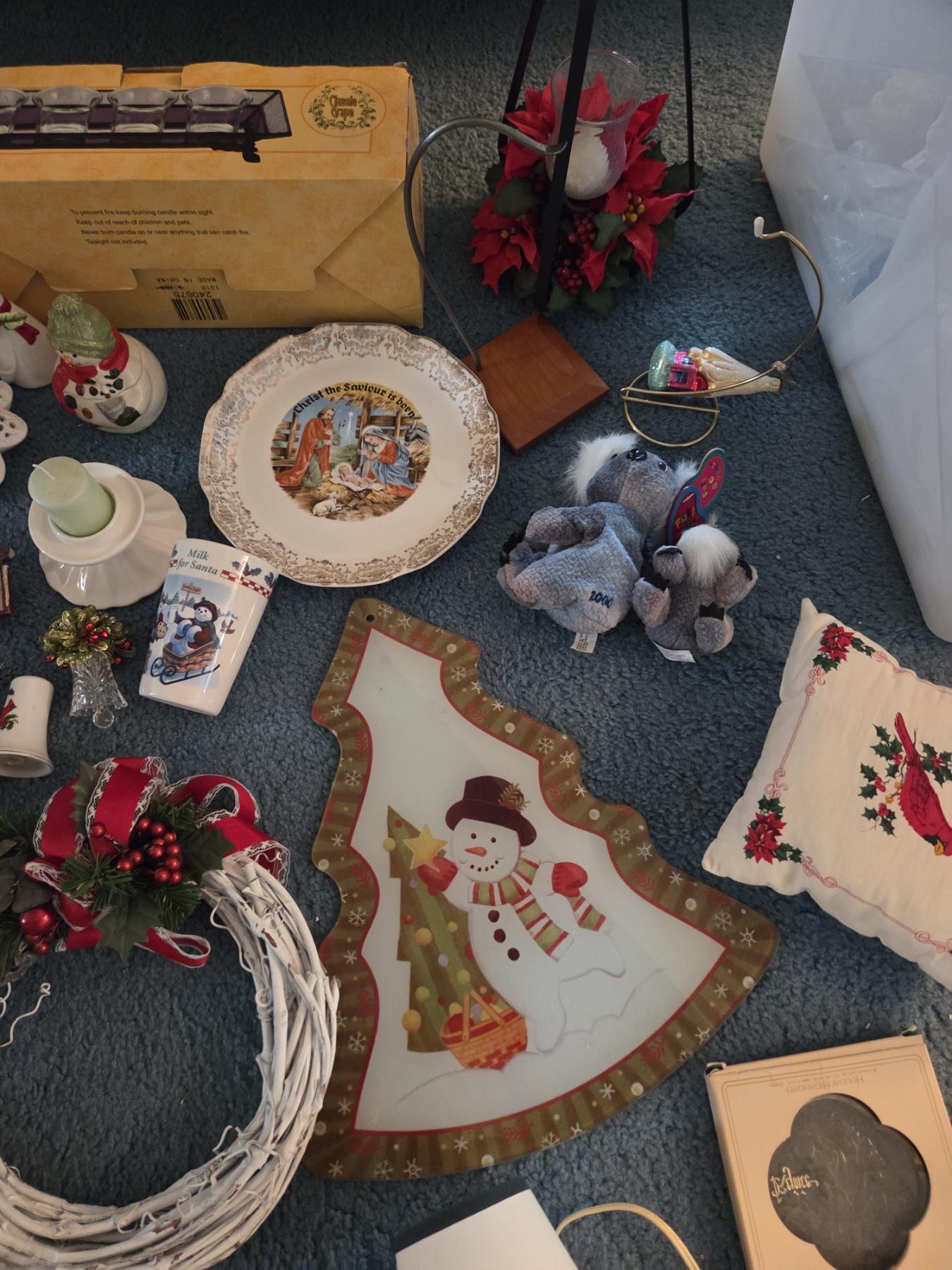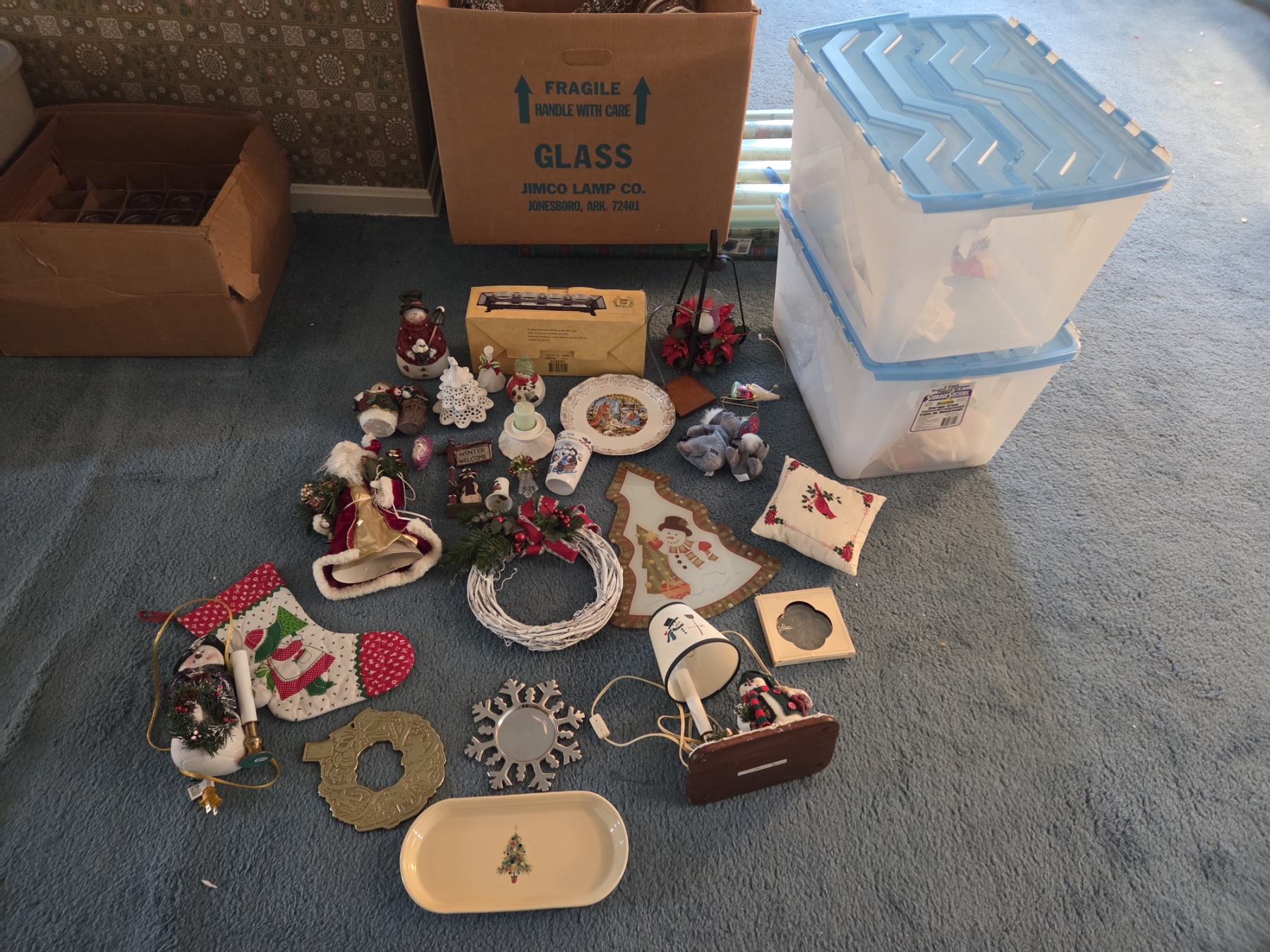 PICKUP IN CANTON - Two Fifteen Gallon Plastic Storage Totes With Christmas Decorations Including Lamps, Candles, Trays And More All In Great Condition