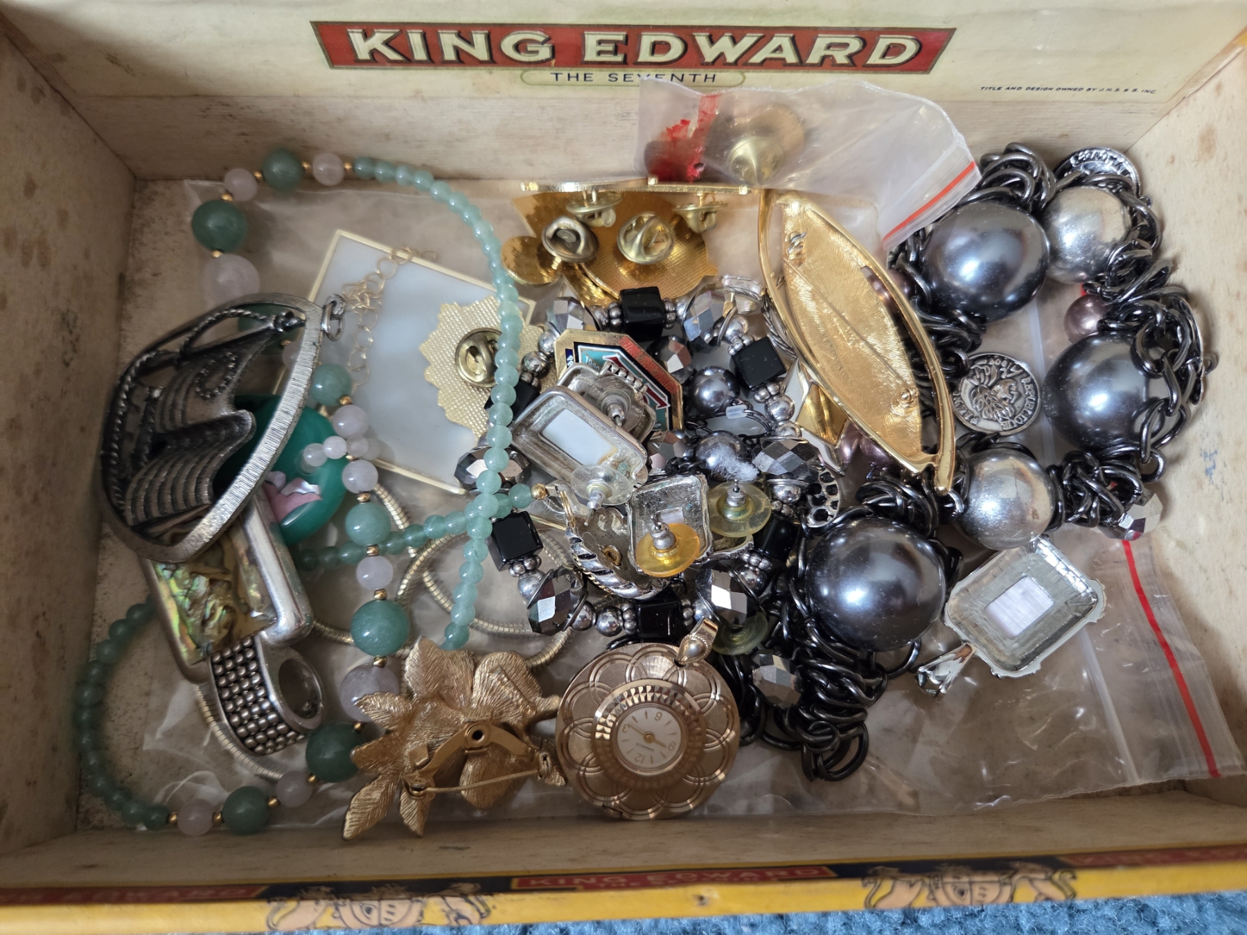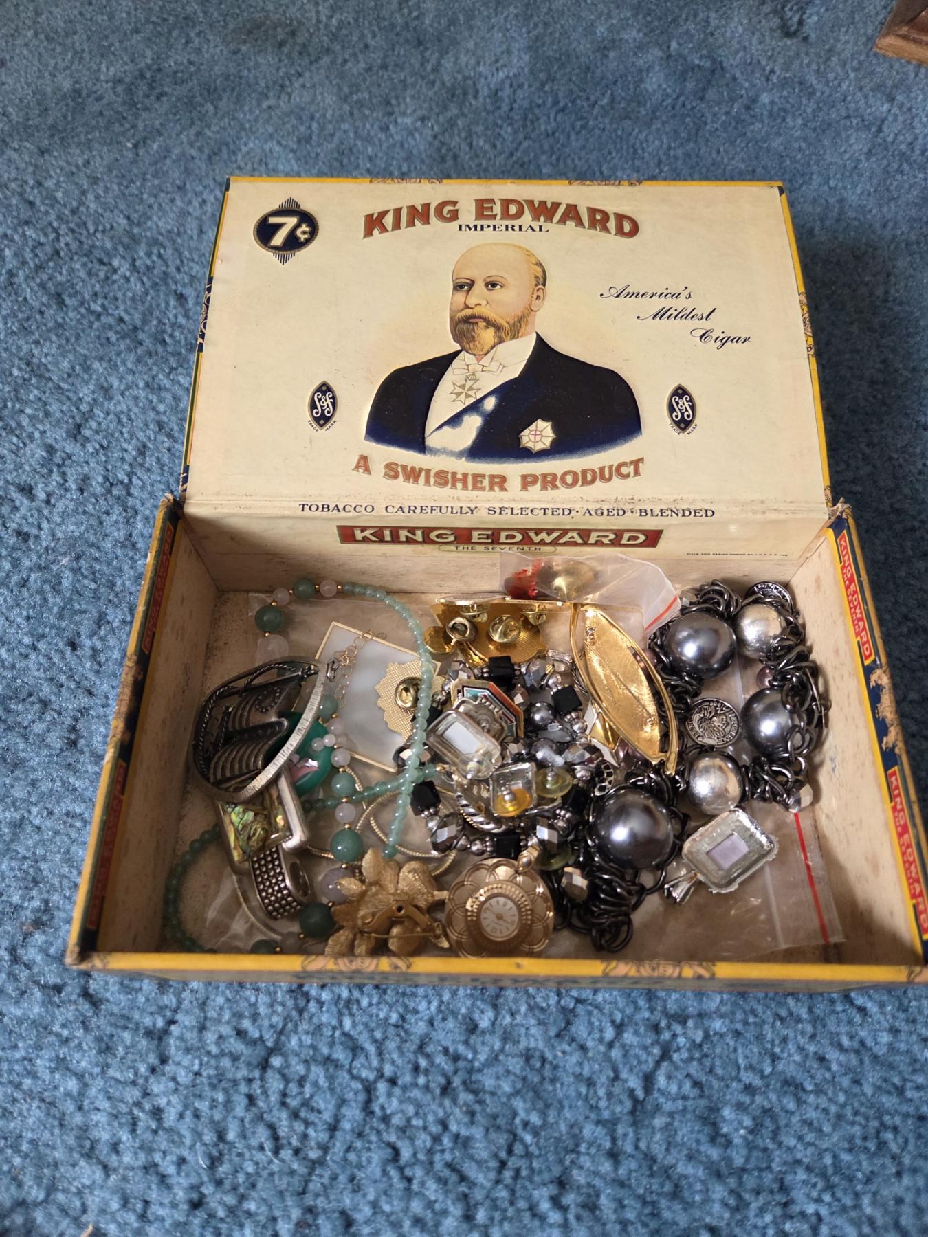 PICKUP IN CANTON - Vintage Cigar Box With Great Costume Jewelry Collection