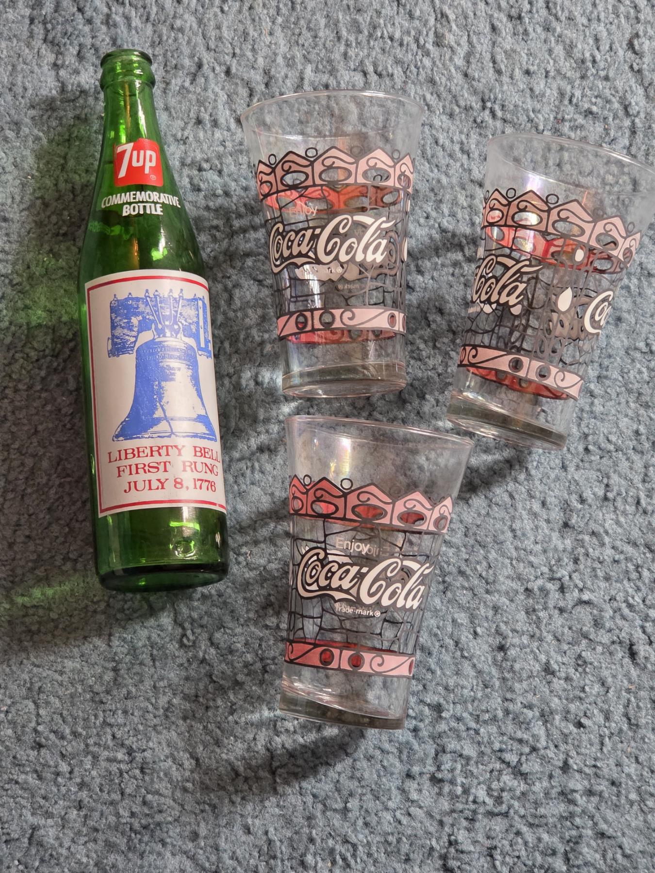 PICKUP IN CANTON - Vintage Coca Cola Drinking Glasses And 7UP Bottle