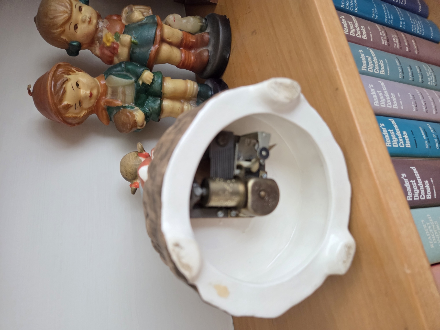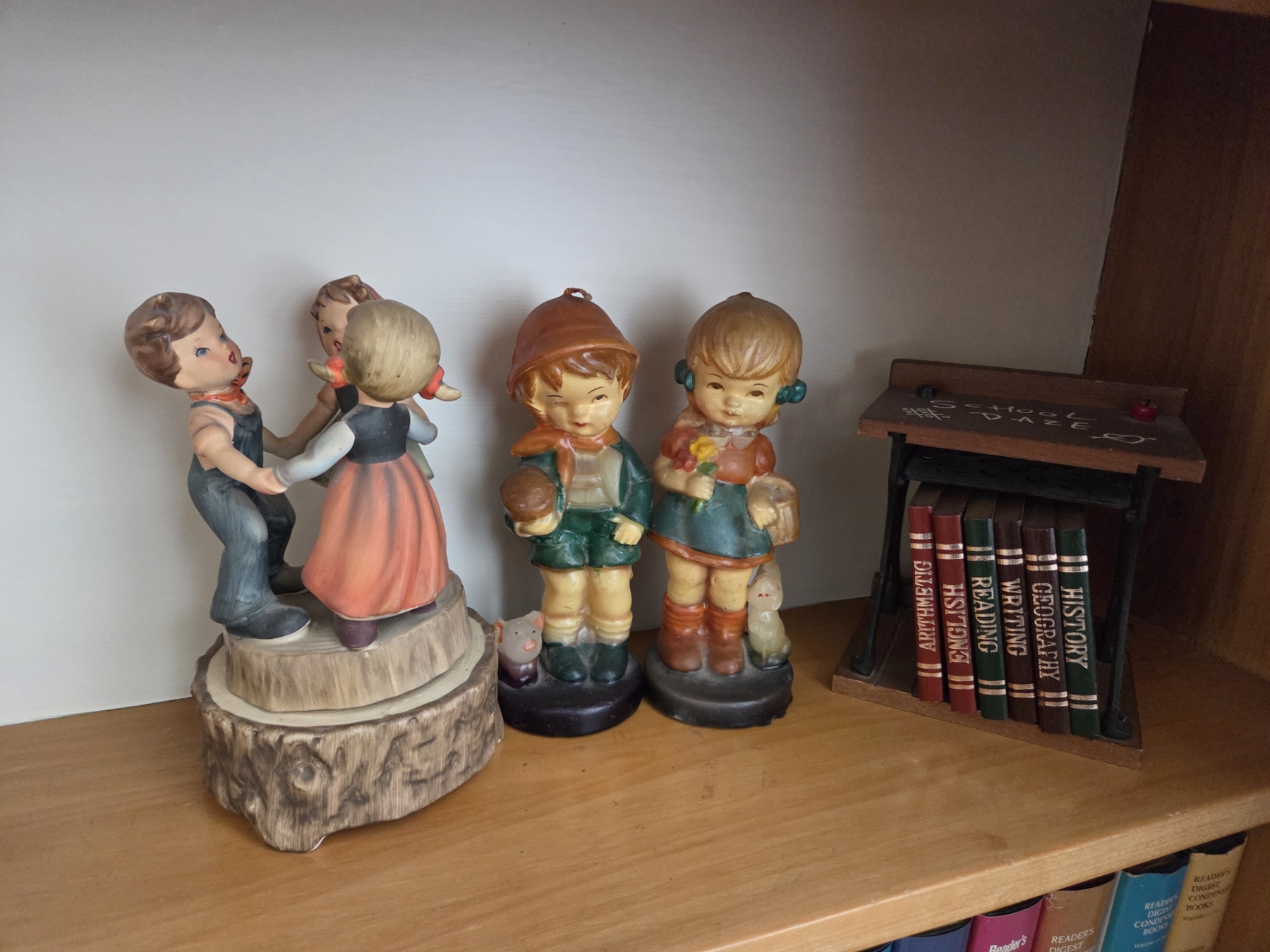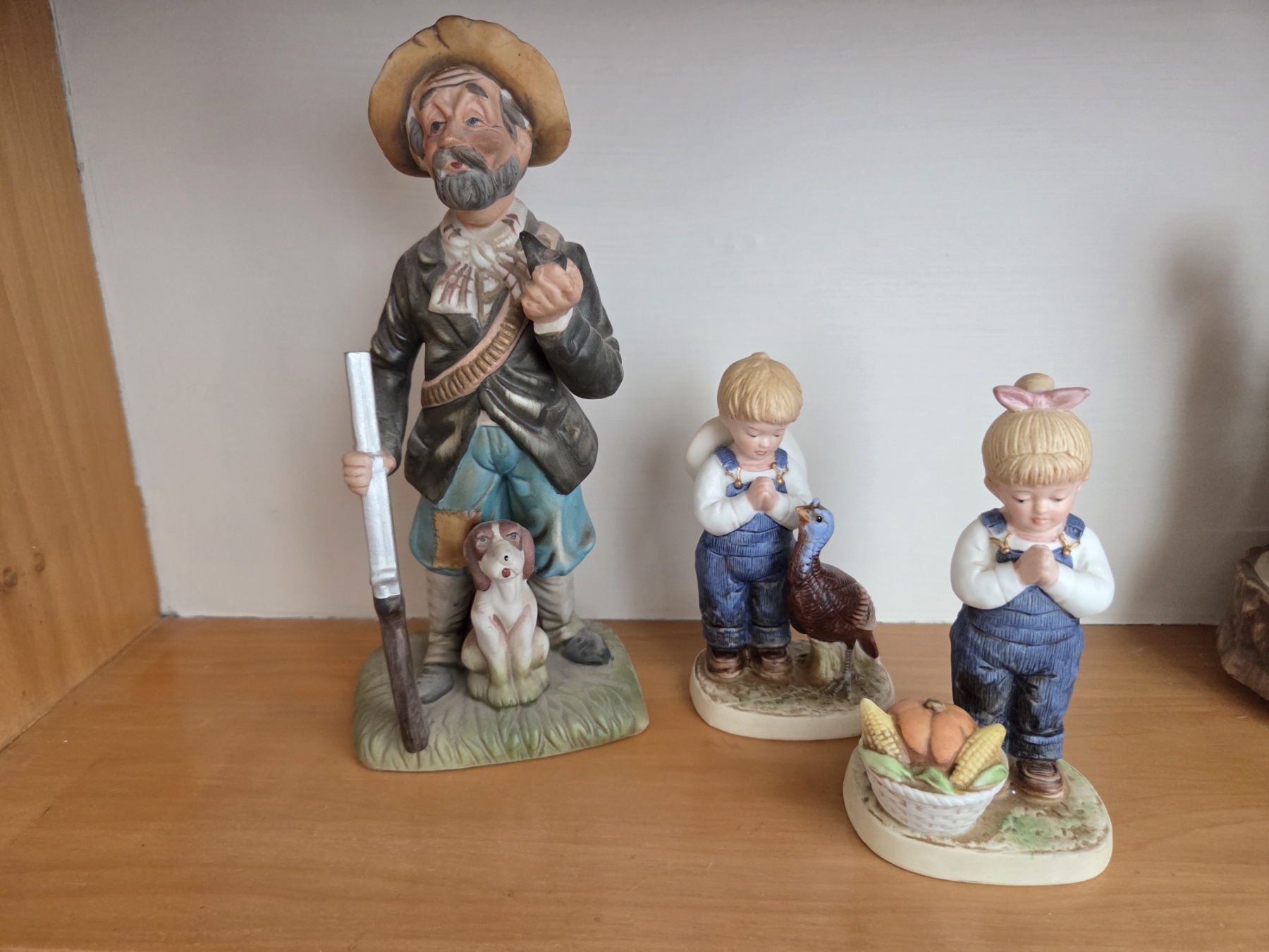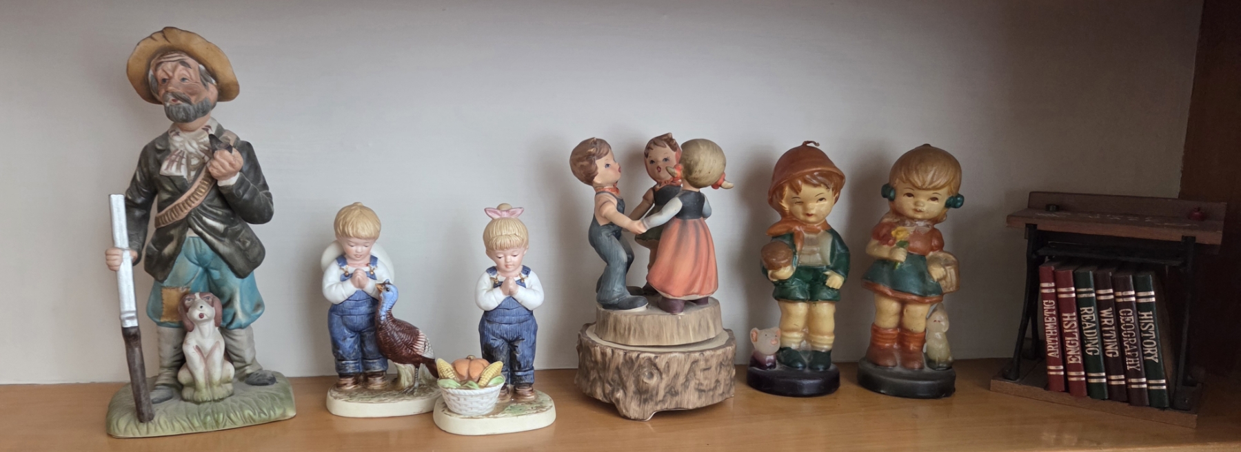 PICKUP IN CANTON - Vintage Denim Days Figurines, Wind Up Music Box Trio, Hunter Figurine, And Book Decor