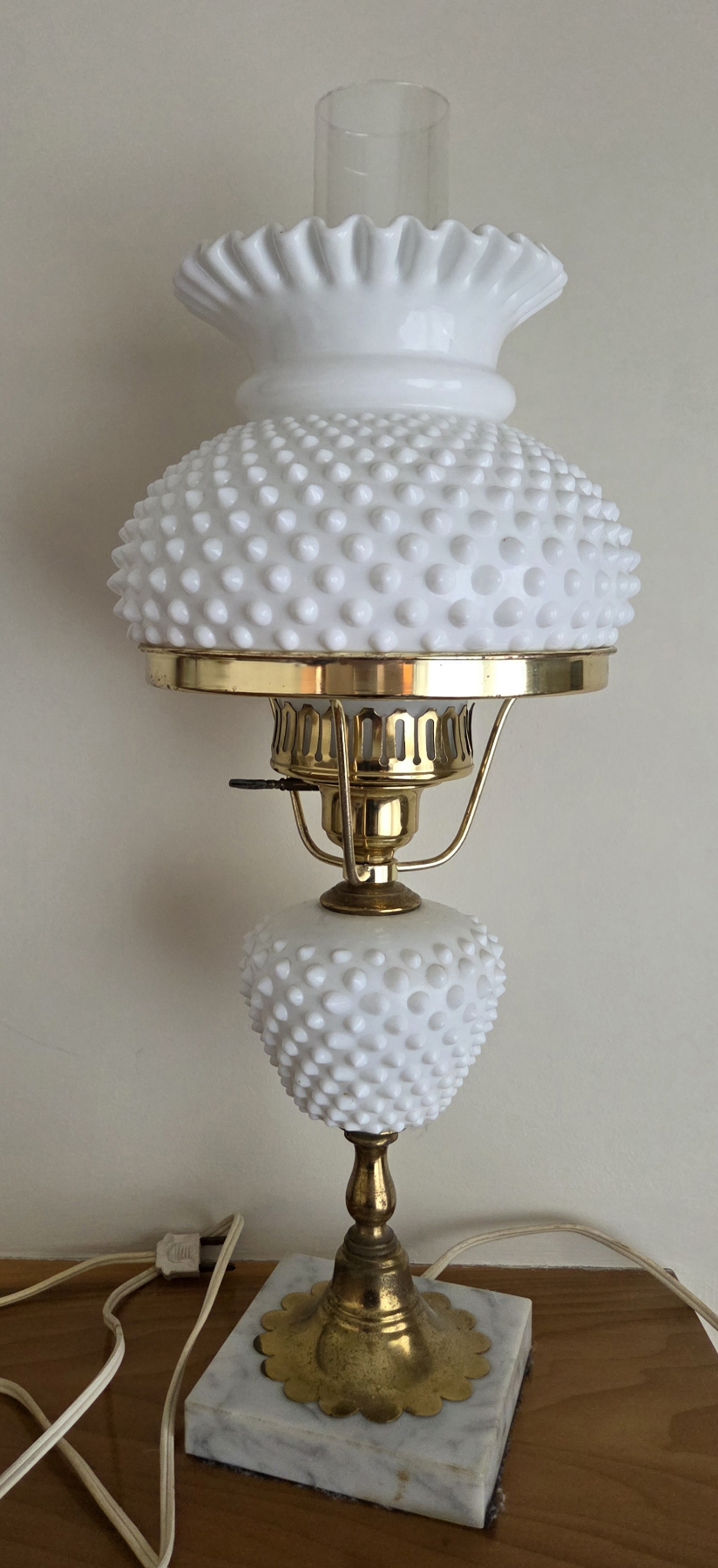 PICKUP IN CANTON - Vintage Hobnail Milk Glass 20'' Lamp With Marble Base
