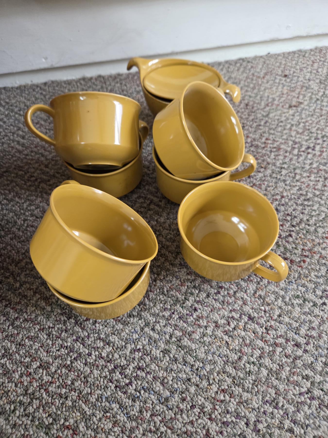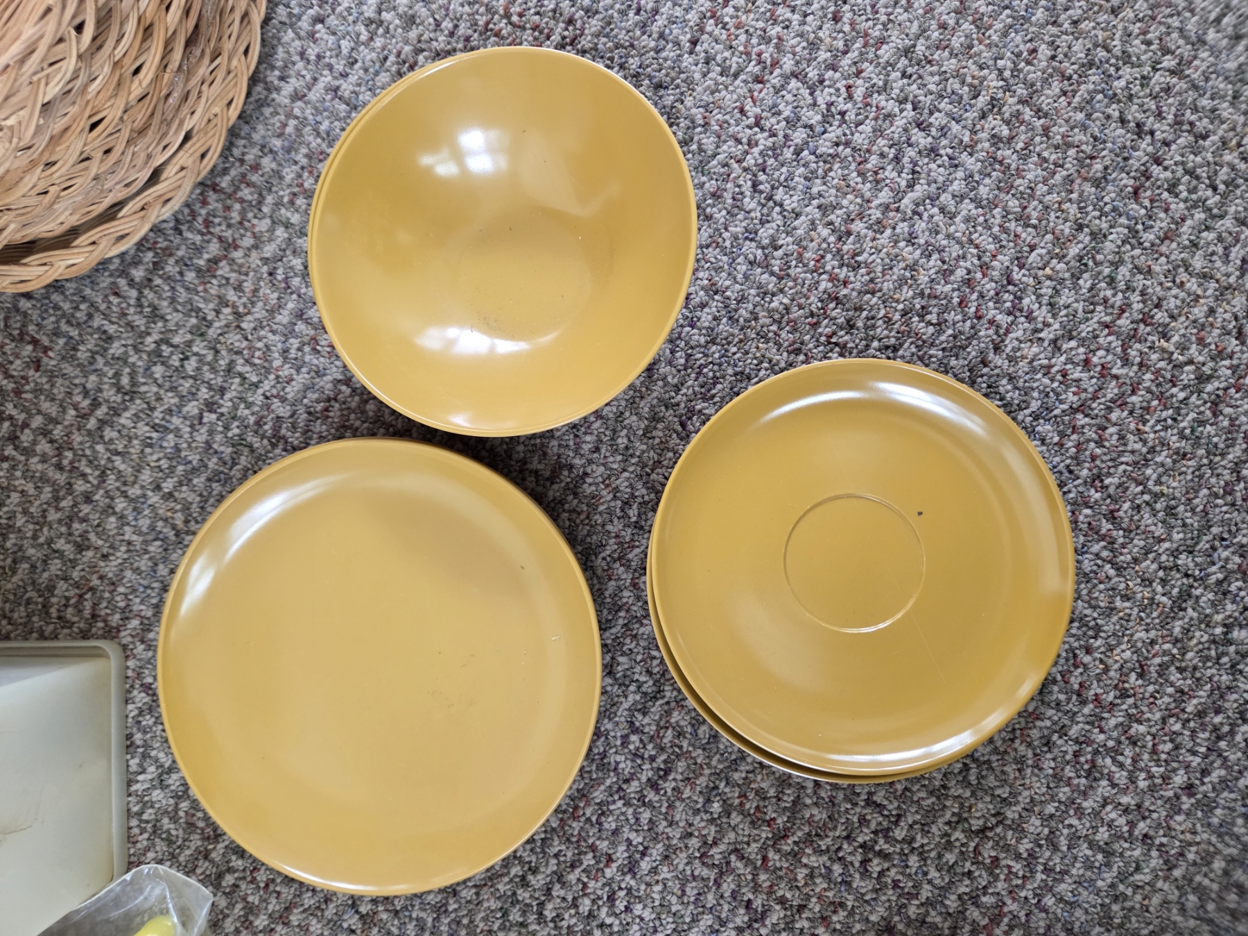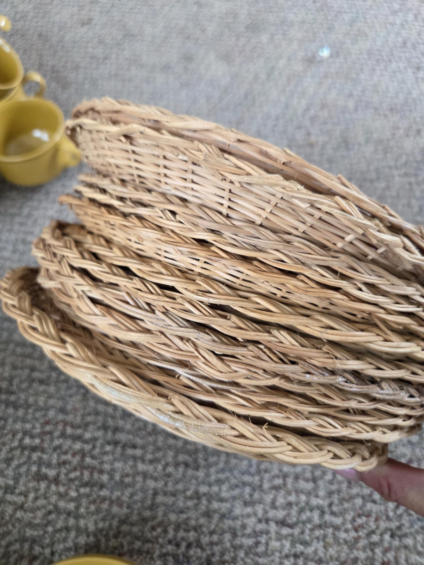 PICKUP IN CANTON - Vintage Picnic Basket, Includes Wicker Plate Holders, Cups, Plates Table Cloth, And More