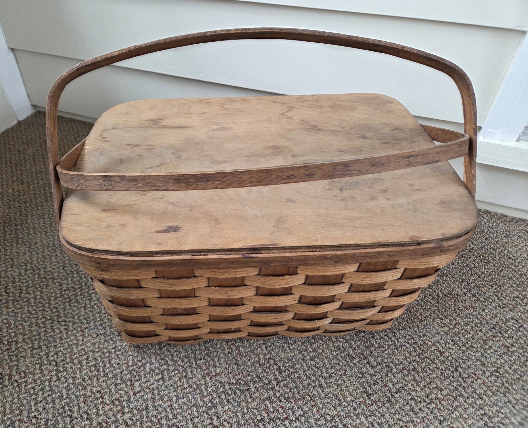 PICKUP IN CANTON - Vintage Picnic Basket, Includes Wicker Plate Holders, Cups, Plates Table Cloth, A