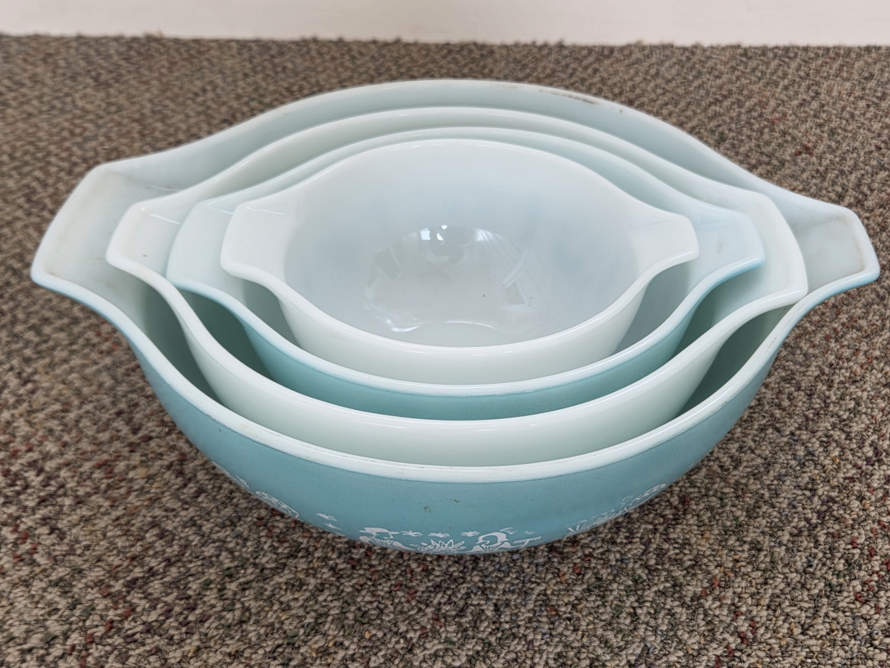PICKUP IN CANTON - Vintage Pyrex Butterprint Turquoise Cinderella 4 Piece Nesting Bowl Set