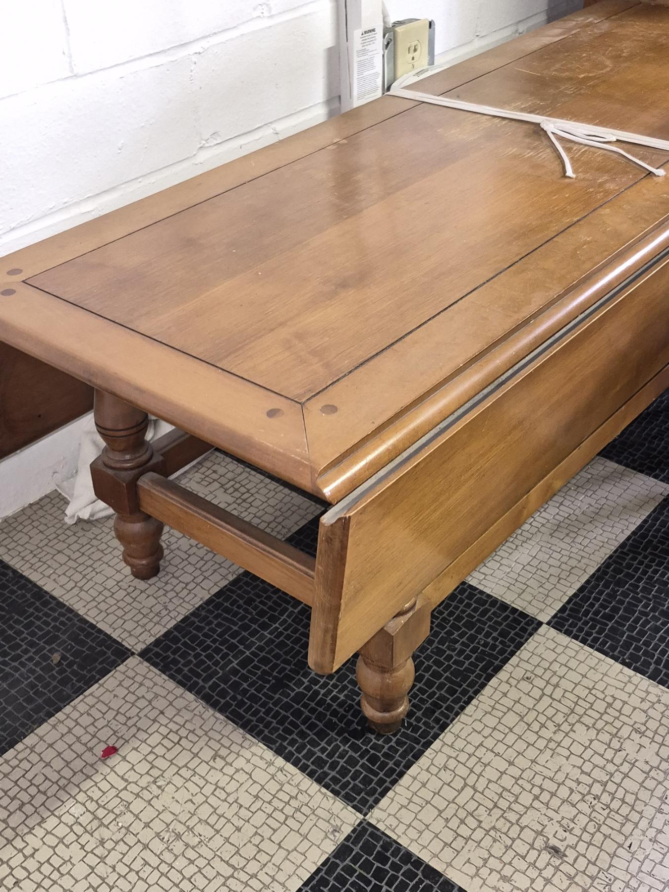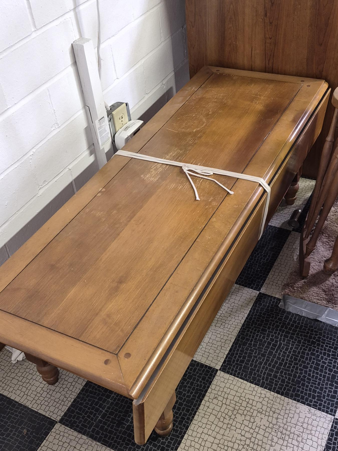 PICKUP IN CANTON - WOOD COFFEE TABLE 50 X 18 X 14 WITH SIDE PULL UPS 8 INCHE EACH