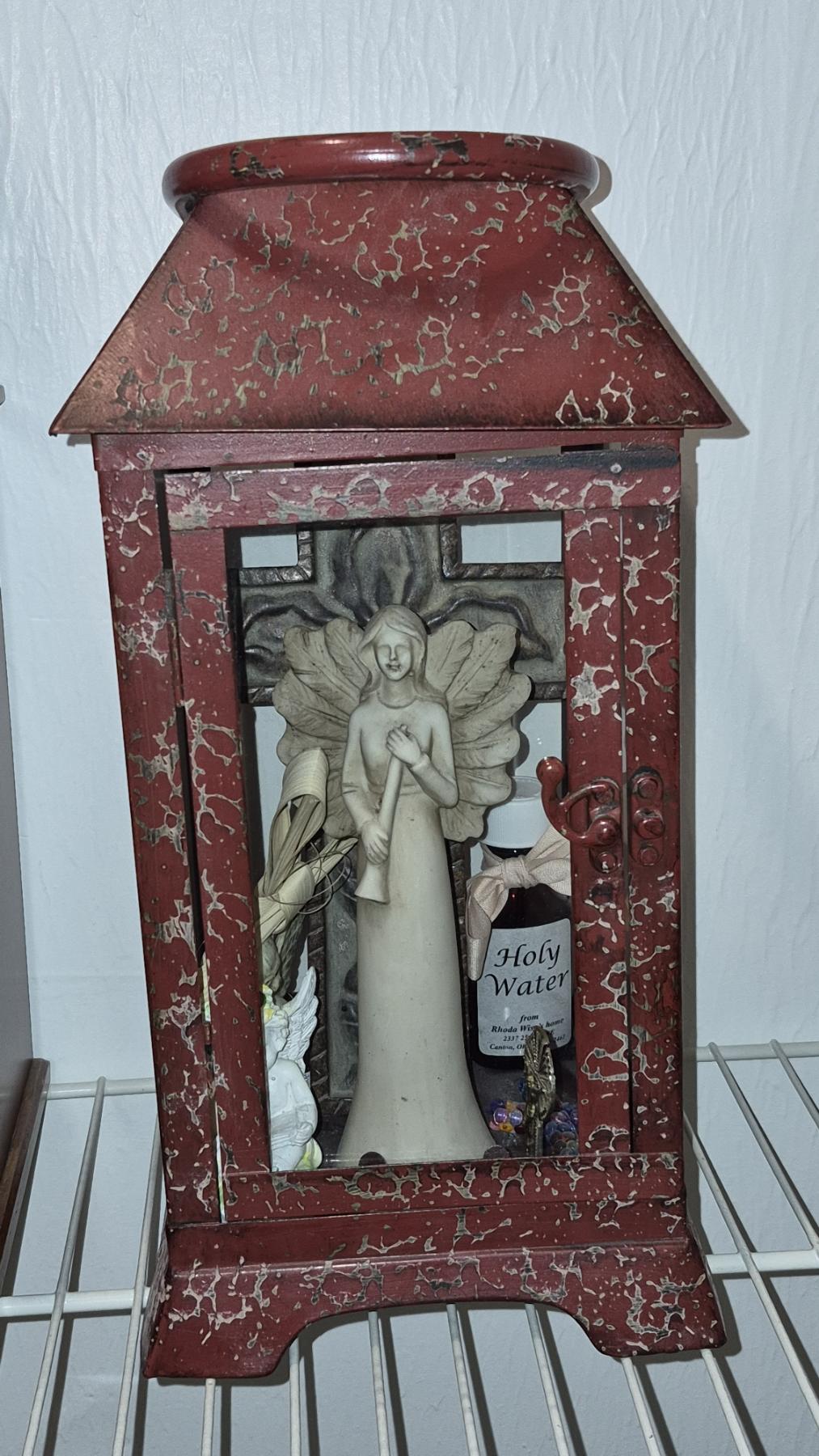 PICKUP IN NORTHFIELD - 15" x 7" Metal Lantern With Religious Items - See Pics - (All Items noting "Pickup In Northfield" will be available the following Saturday after this auction ends. Other items in this auction will be available at our Louisville Office. Winners of Northfield items will be notified with the address and times, after the auction closes.)