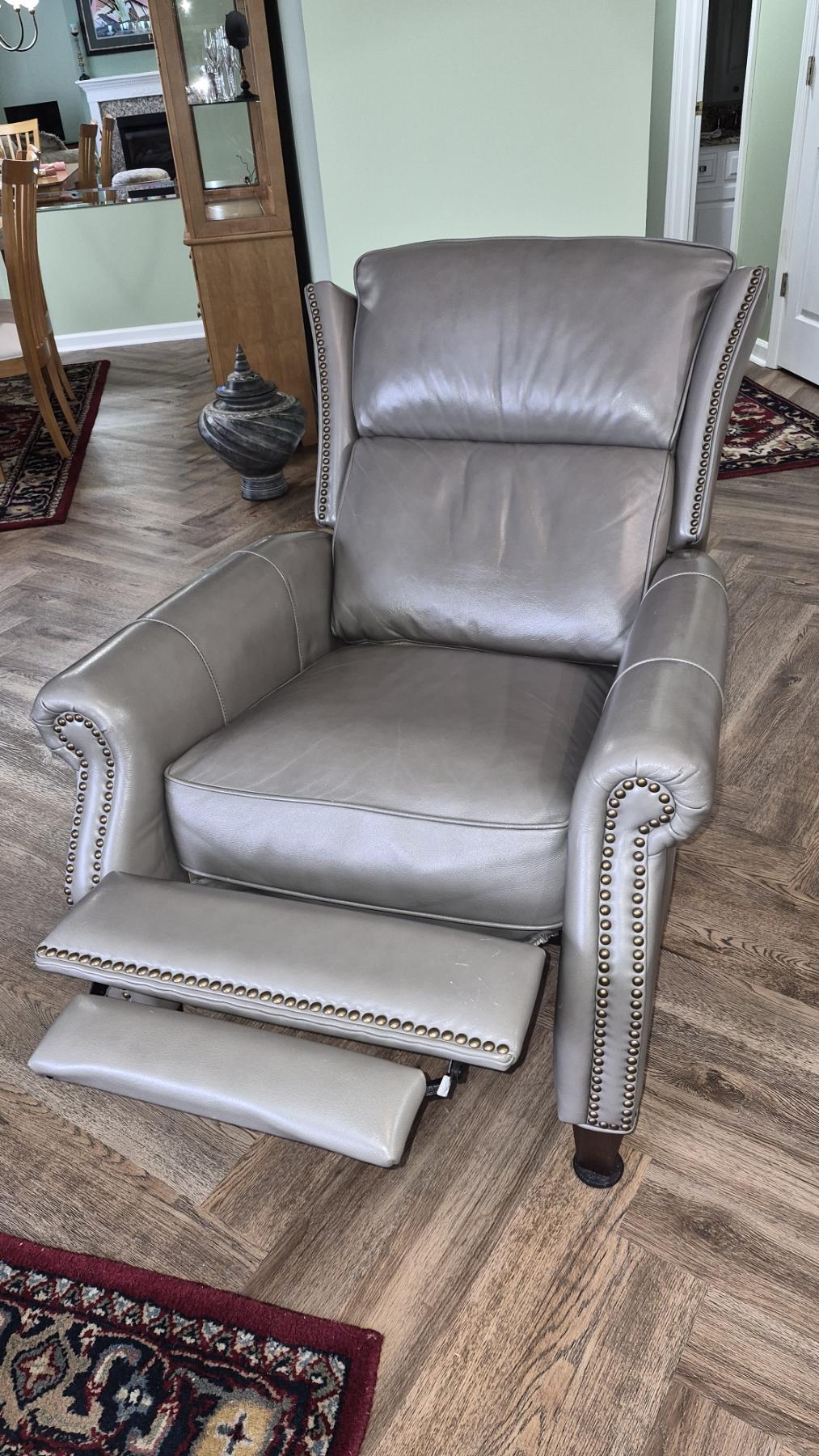 PICKUP IN NORTHFIELD - 1st Of 2 - Excellent Leather Recliner As Shown - Great Condition - See Pics - (All Items noting "Pickup In Northfield" will be available the following Saturday after this auction ends. Other items in this auction will be available at our Louisville Office. Winners of Northfield items will be notified with the address and times, after the auction closes.)