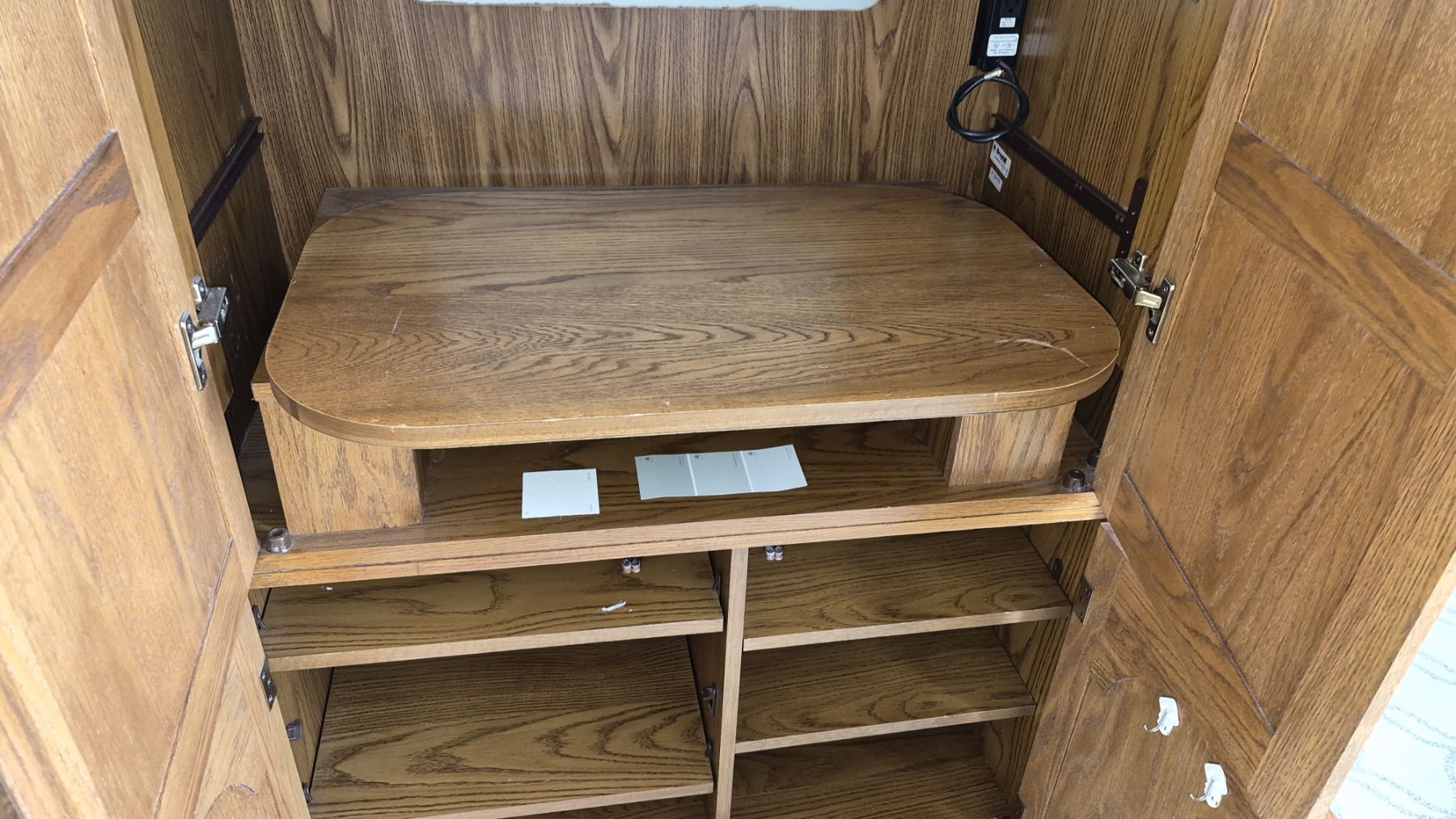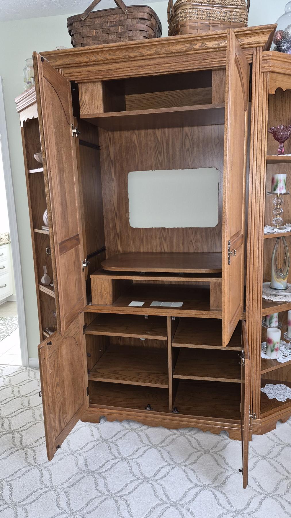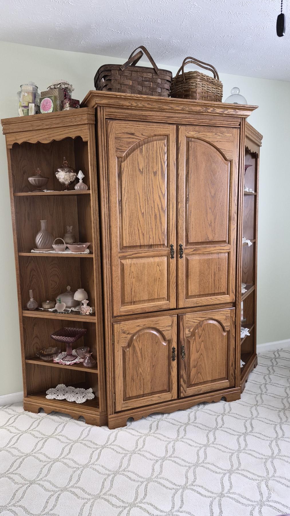 PICKUP IN NORTHFIELD - 3 Section Hardwood Cabinetry Sold Individually 2nd Of 3: Center Entertainment Center Cabinet As shown 78 x 38 x 20 - See Pics - (All Items noting "Pickup In Northfield" will be available the following Saturday after this auction ends. Other items in this auction will be available at our Louisville Office. Winners of Northfield items will be notified with the address and times, after the auction closes.)