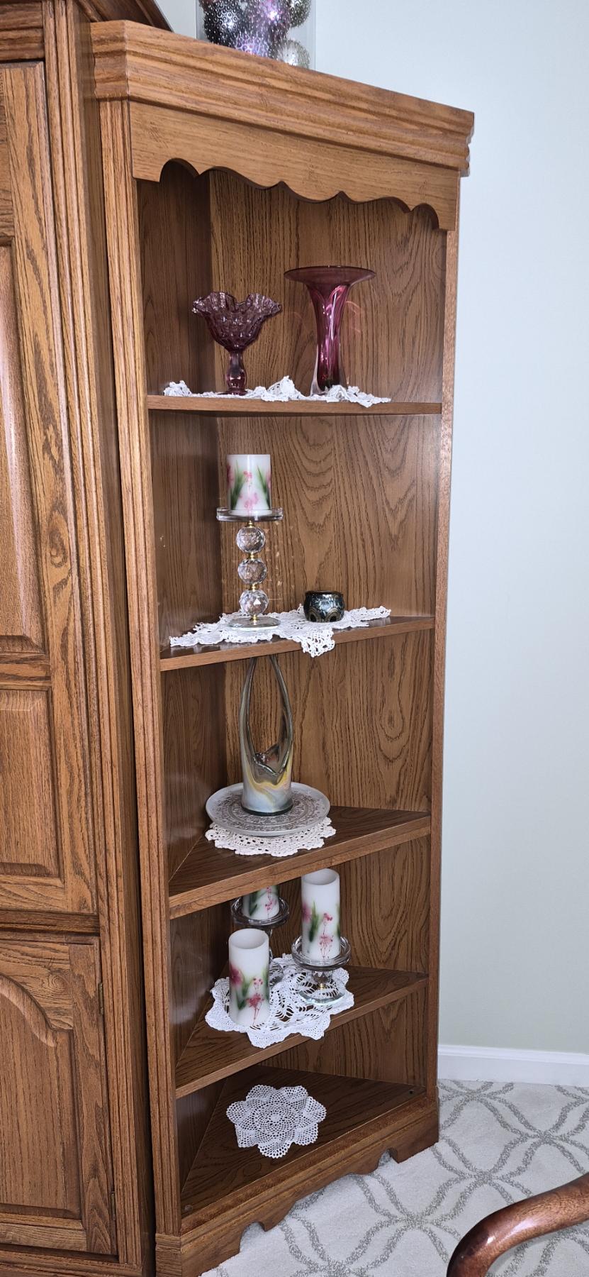 PICKUP IN NORTHFIELD - 3 Section Hardwood Cabinetry Sold Individually 3rd Of 3: Corner Shelf Cabinet As shown 76 x 24 x 17 - Can be used as this is set up, or individually as a very nice corner shelf cabinet. See Pics - (All Items noting "Pickup In Northfield" will be available the following Saturday after this auction ends. Other items in this auction will be available at our Louisville Office. Winners of Northfield items will be notified with the address and times, after the auction closes.) Right Side Of Set Up On Sight