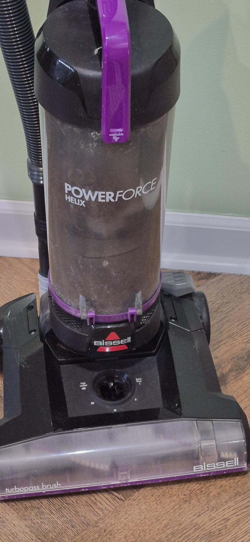 PICKUP IN NORTHFIELD - "BISSELL" Power Force Upright Vacuum Clear - Good Working Condition - See Pics - (All Items noting "Pickup In Northfield" will be available the following Saturday after this auction ends. Other items in this auction will be available at our Louisville Office. Winners of Northfield items will be notified with the address and times, after the auction closes.)