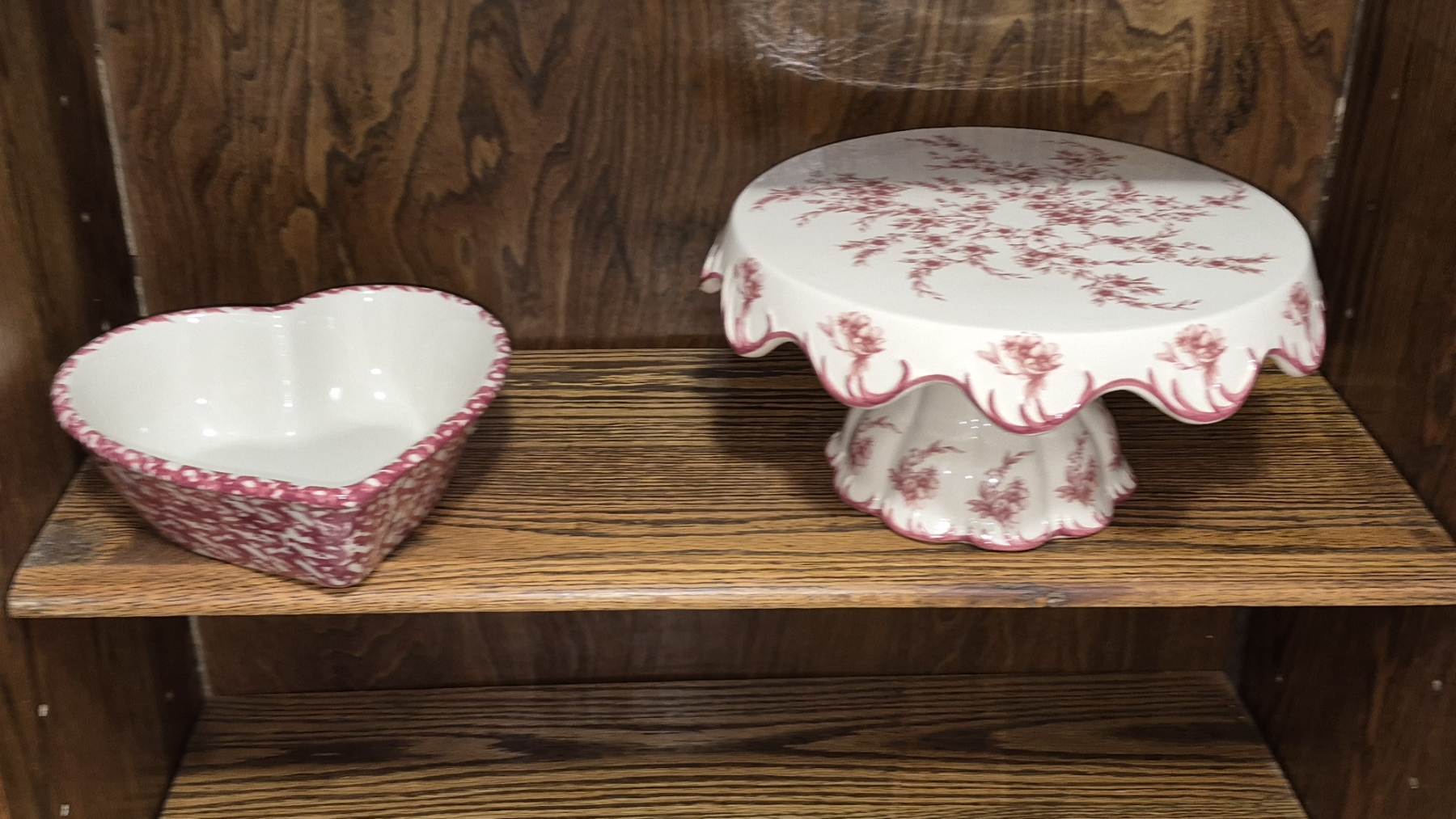 PICKUP IN NORTHFIELD - Beautiful 2 Pc Set Spongeware Heart Shape Bowl & Raised Cake Stand - See Pics - (All Items noting "Pickup In Northfield" will be available the following Saturday after this auction ends. Other items in this auction will be available at our Louisville Office. Winners of Northfield items will be notified with the address and times, after the auction closes.)