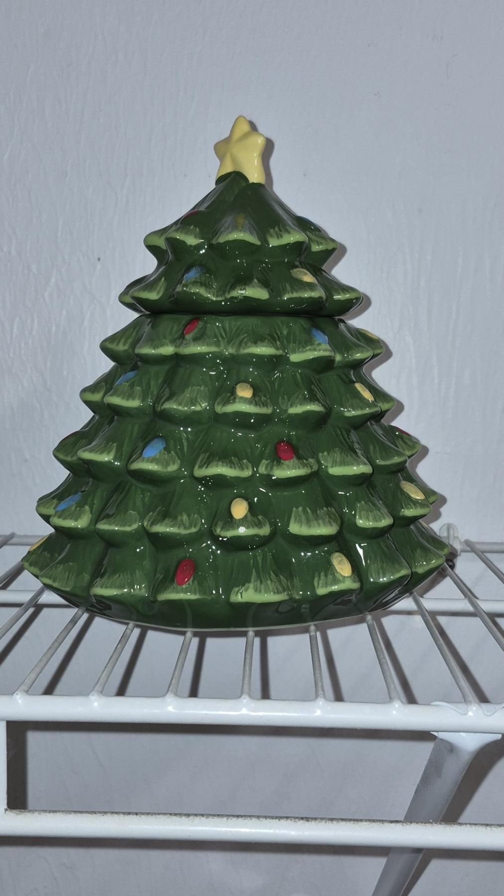 PICKUP IN NORTHFIELD - Christmas Tree's 8.5" Ceramic Cookie Jar & 28" Craft Made With Pine Cones - See Pics - (All Items noting "Pickup In Northfield" will be available the following Saturday after this auction ends. Other items in this auction will be available at our Louisville Office. Winners of Northfield items will be notified with the address and times, after the auction closes.)