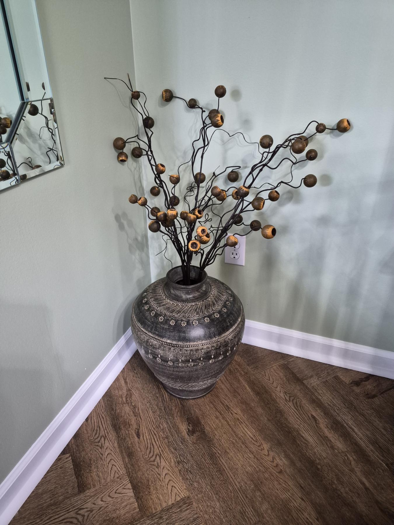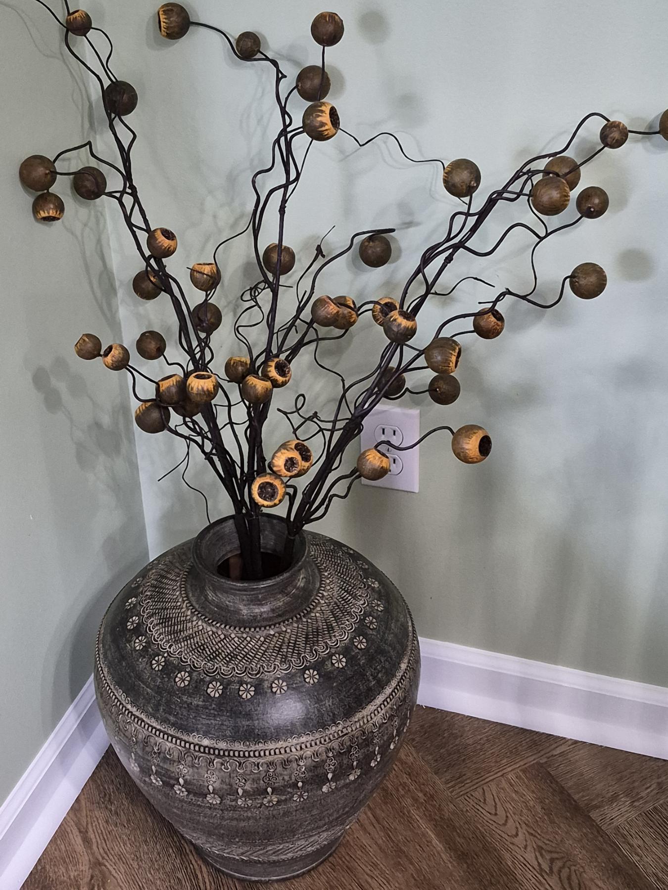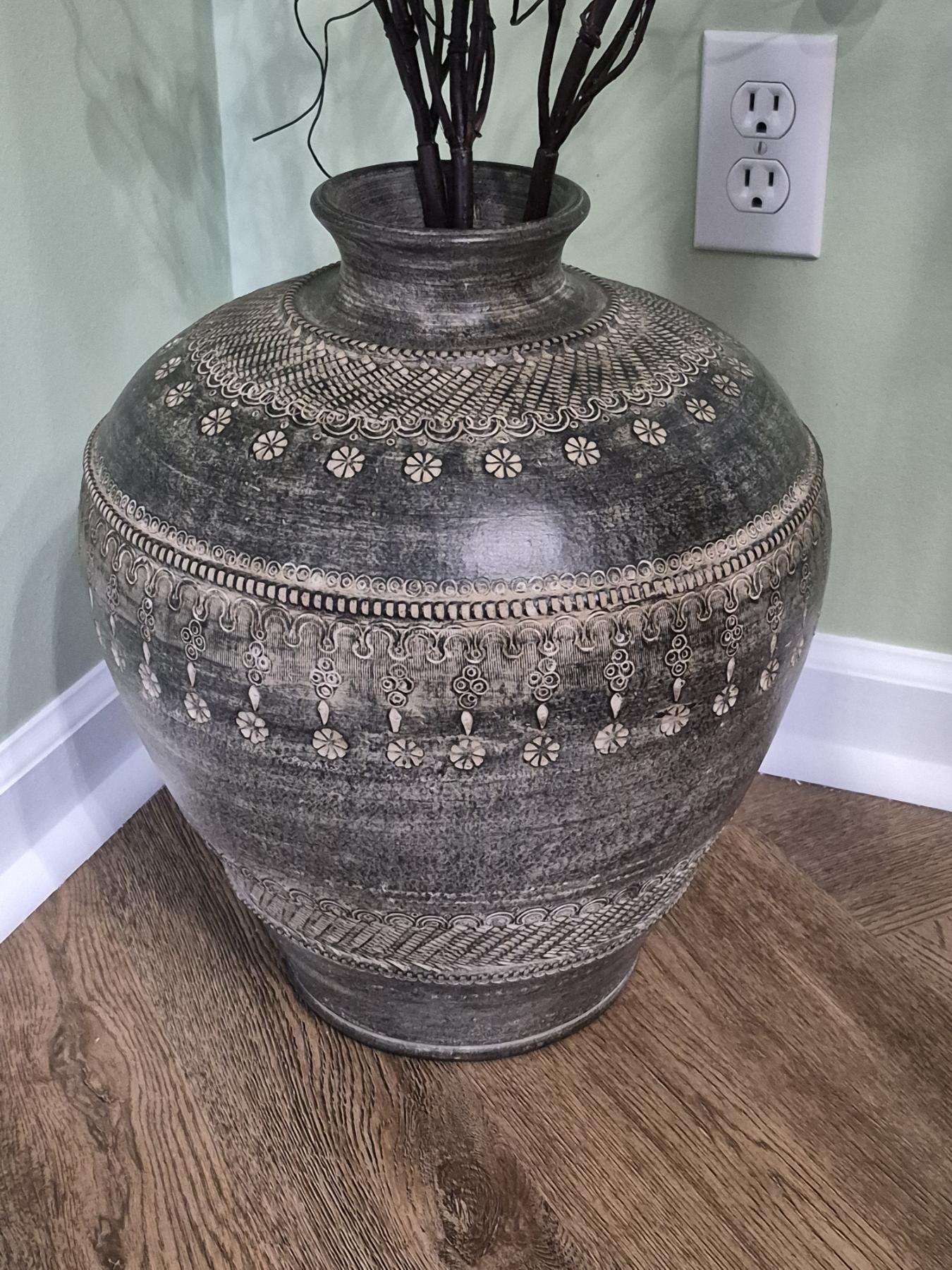 PICKUP IN NORTHFIELD - Gorgeous Pottery Floor Vase & Florals 16" x 13" As Shown - See Pics - (All Items noting "Pickup In Northfield" will be available the following Saturday after this auction ends. Other items in this auction will be available at our Louisville Office. Winners of Northfield items will be notified with the address and times, after the auction closes.)
