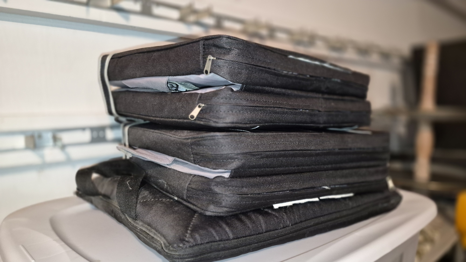 PICKUP IN NORTHFIELD - Group Of Portable Leather Seat Cushions As Shown Great For Camping Yard Work Sporting Events. - See Pics (All Items noting "Pickup In Northfield" will be available the following Saturday after this auction ends. Other items in this auction will be available at our Louisville Office. Winners of Northfield items will be notified with the address and times, after the auction closes.)