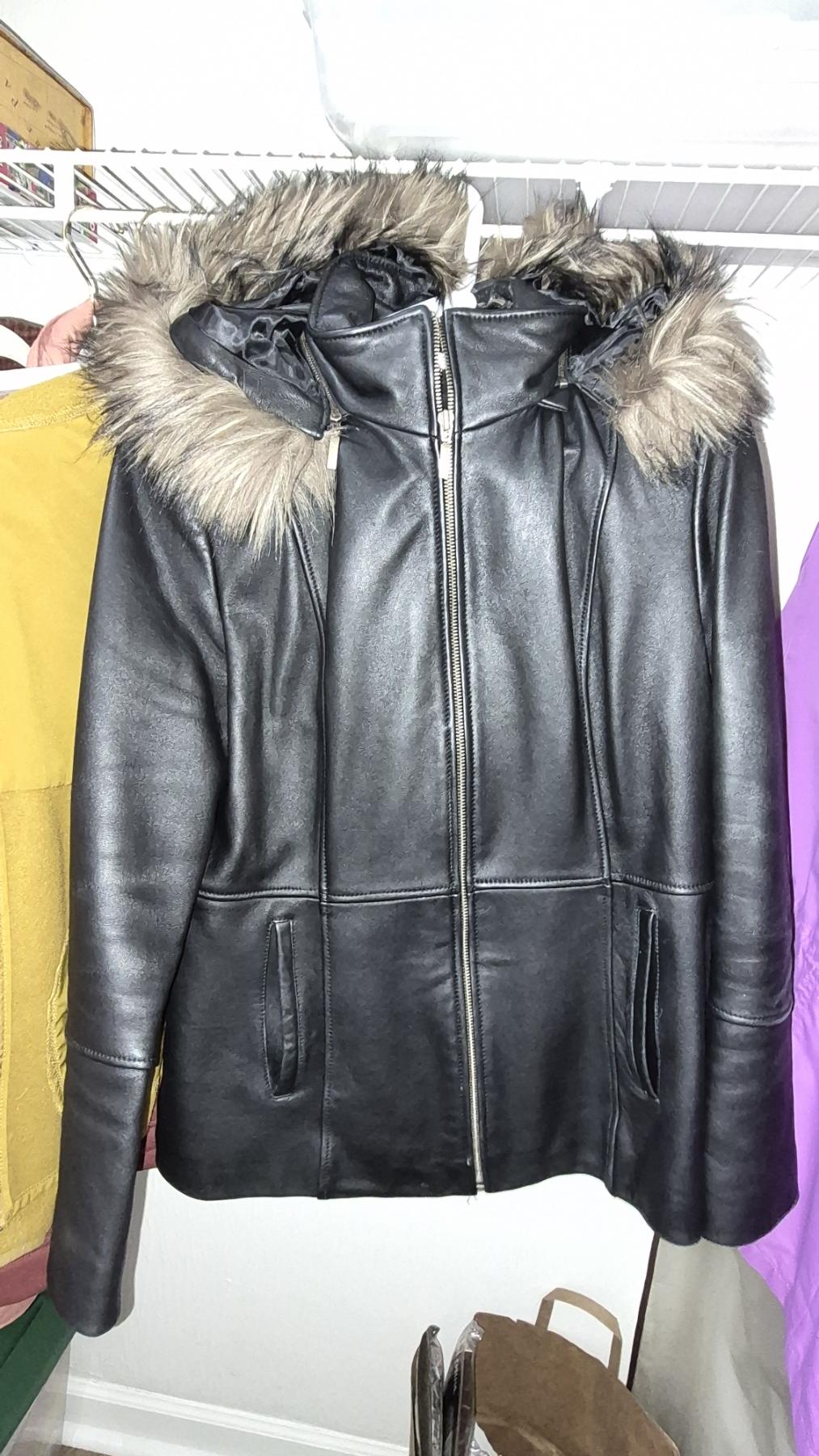 PICKUP IN NORTHFIELD - Ladies Hooded Leather Jacket In Pristine Condition Size "M" - See Pics - (All Items noting "Pickup In Northfield" will be available the following Saturday after this auction ends. Other items in this auction will be available at our Louisville Office. Winners of Northfield items will be notified with the address and times, after the auction closes.)