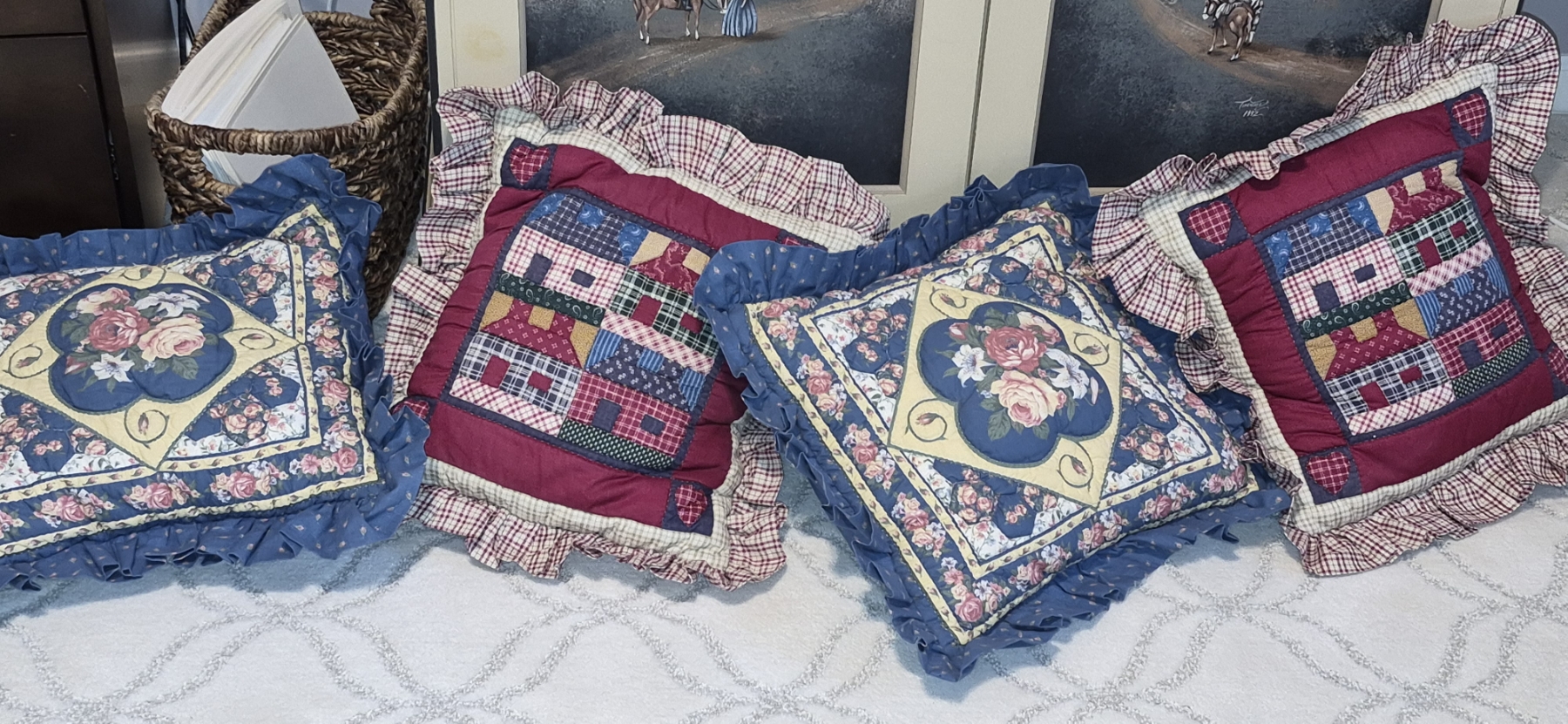 PICKUP IN NORTHFIELD - Lot of 4 Throw Pillows As Shown In Nice Clean Condition - See Pics (All Items noting "Pickup In Northfield" will be available the following Saturday after this auction ends. Other items in this auction will be available at our Louisville Office. Winners of Northfield items will be notified with the address and times, after the auction closes.)
