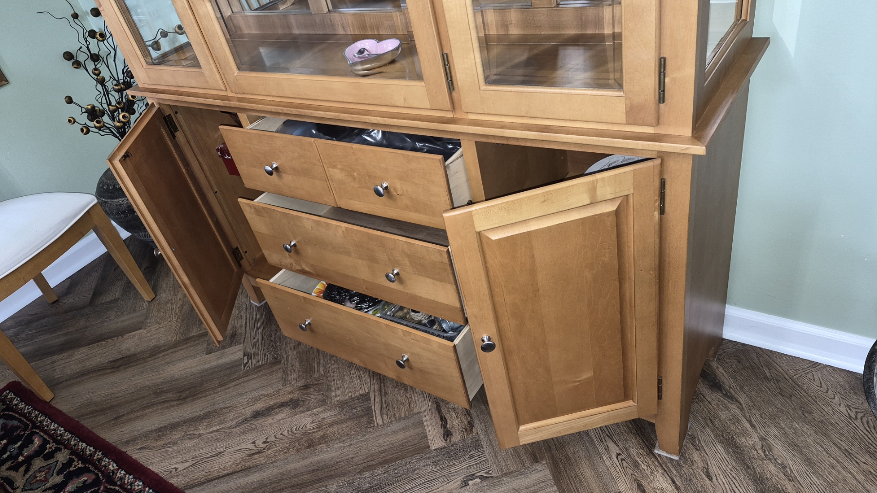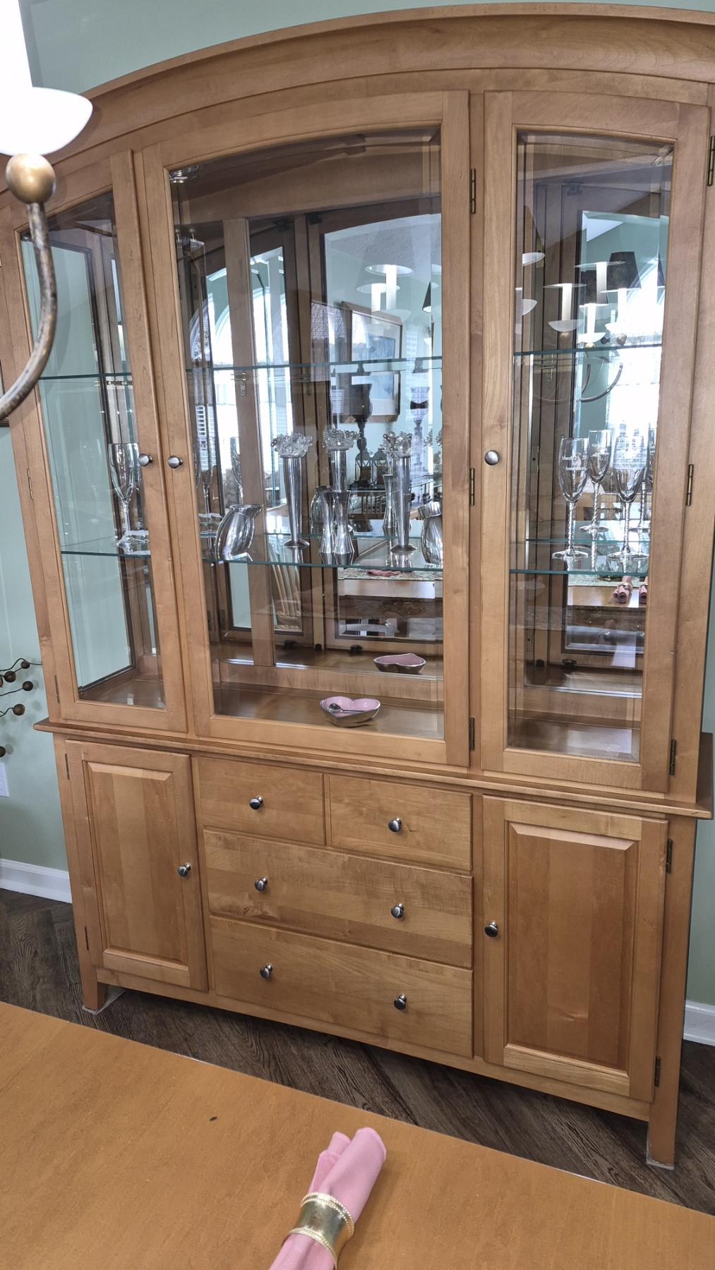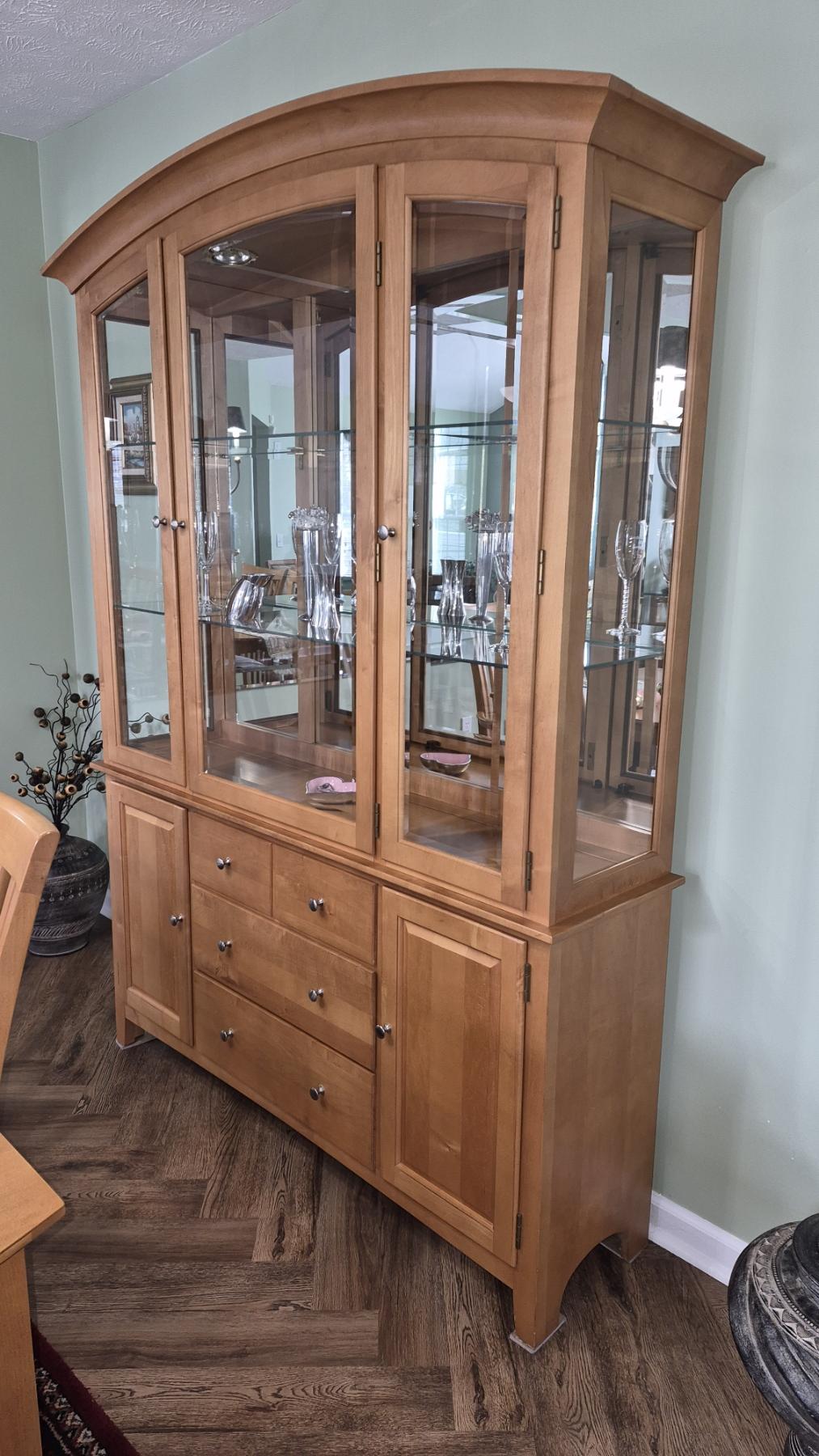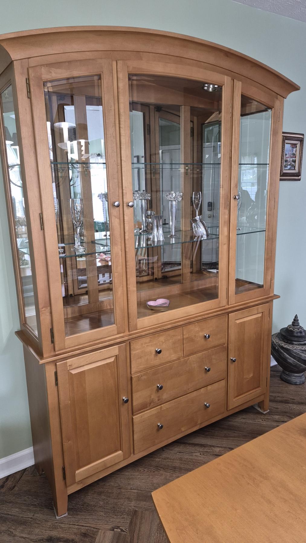 PICKUP IN NORTHFIELD - Matching Dining Room Hutch / Chest Of Drawers & Glass China Cabinet - 80" Tall , 57" x 15" - - See Pics - (All Items noting "Pickup In Northfield" will be available the following Saturday after this auction ends. Other items in this auction will be available at our Louisville Office. Winners of Northfield items will be notified with the address and times, after the auction closes.)