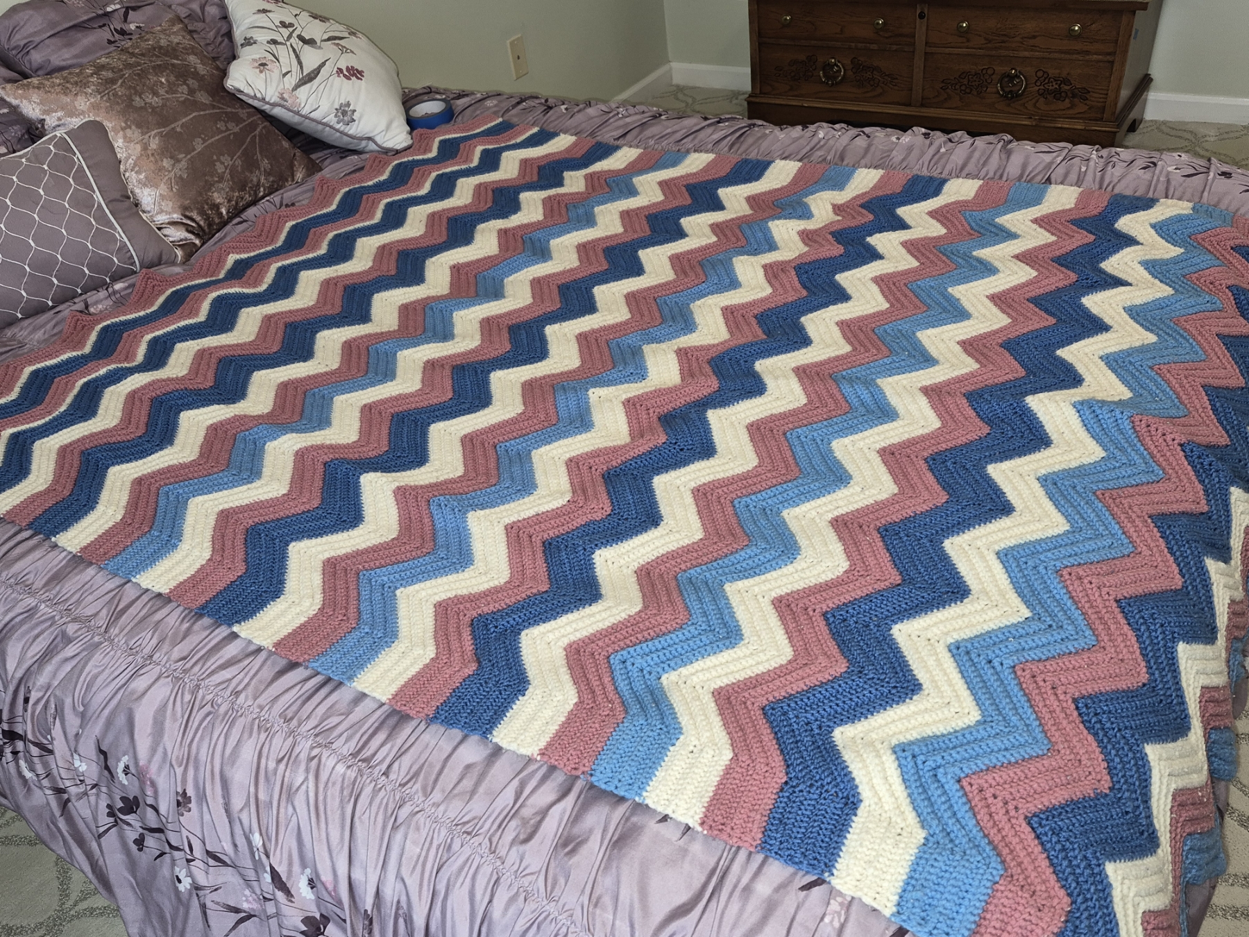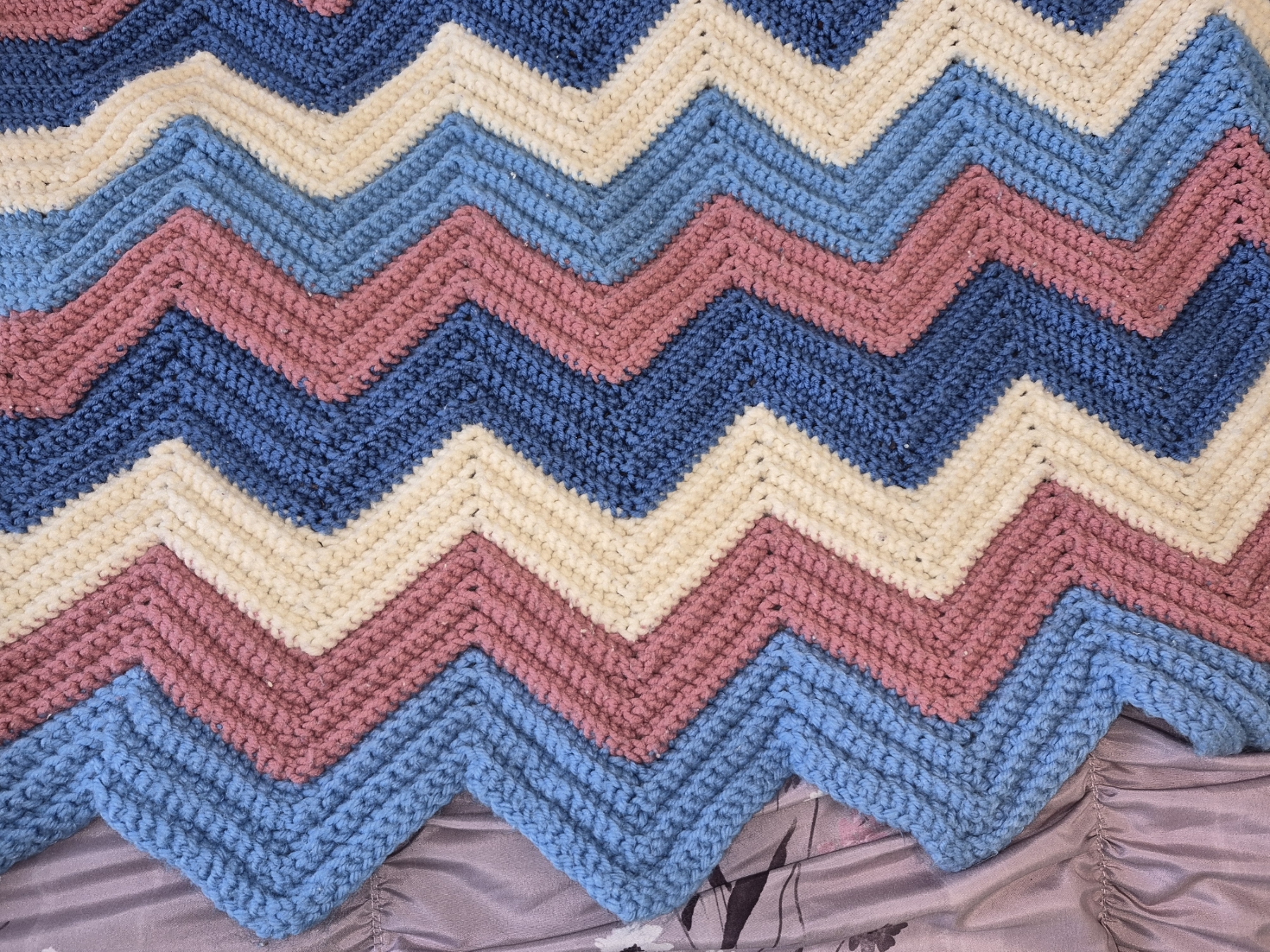 PICKUP IN NORTHFIELD - Nice Multi Colored Hand Knitted Quilt 45" x 66" - See Pics - (All Items noting "Pickup In Northfield" will be available the following Saturday after this auction ends. Other items in this auction will be available at our Louisville Office. Winners of Northfield items will be notified with the address and times, after the auction closes.)