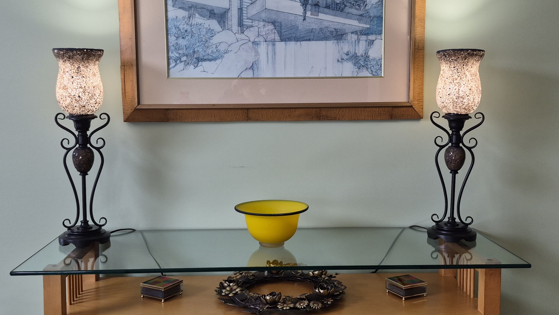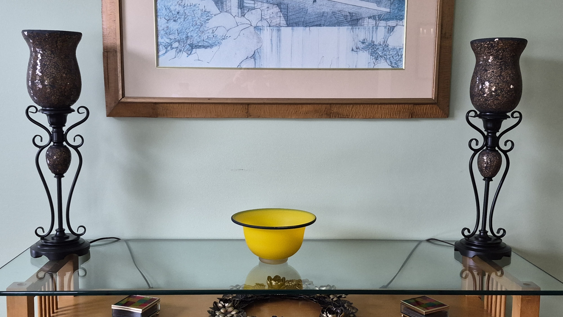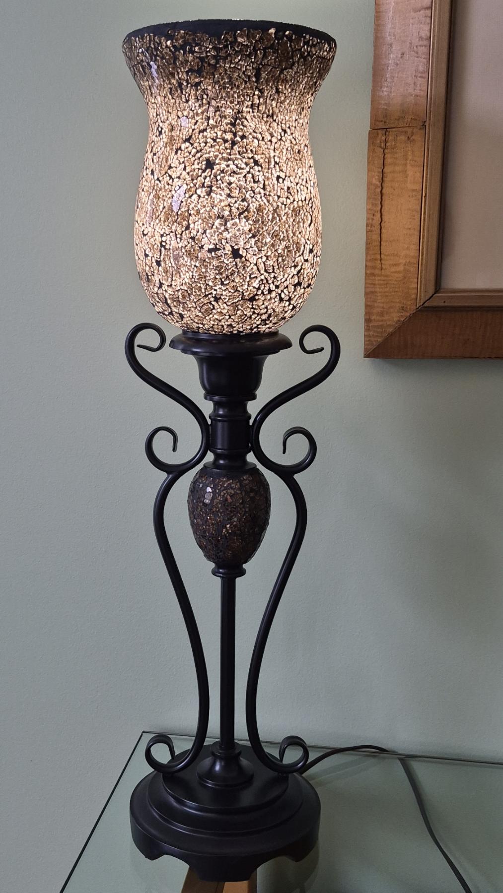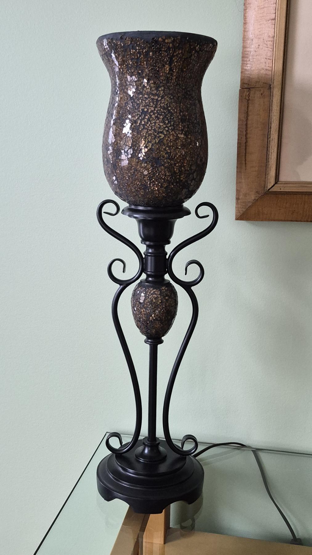 PICKUP IN NORTHFIELD - Pair Of Art Deco Metal & Glass Table Lamps - 26" Tall - See Pics - (All Items noting "Pickup In Northfield" will be available the following Saturday after this auction ends. Other items in this auction will be available at our Louisville Office. Winners of Northfield items will be notified with the address and times, after the auction closes.)