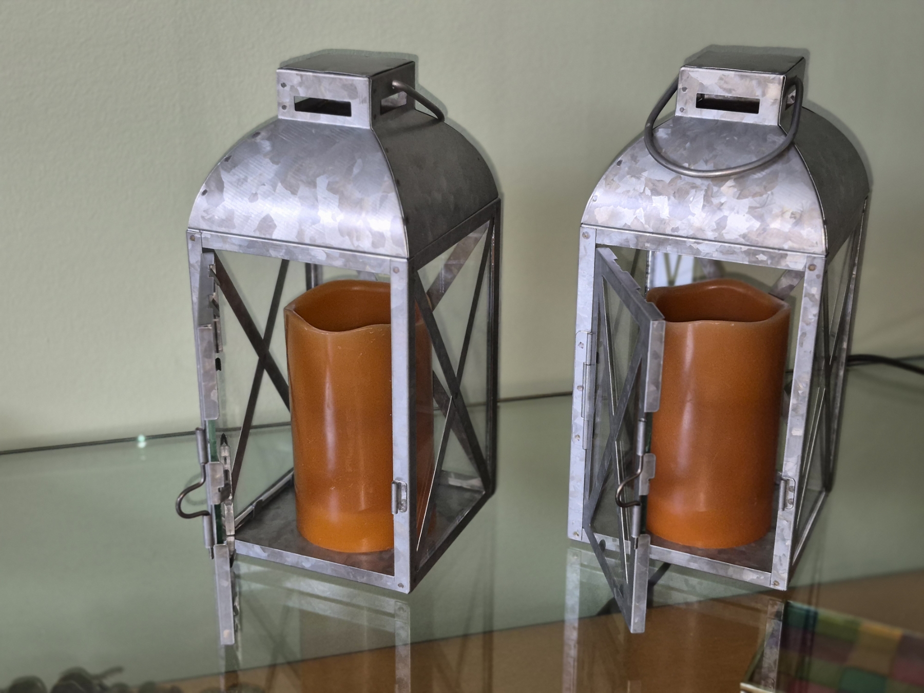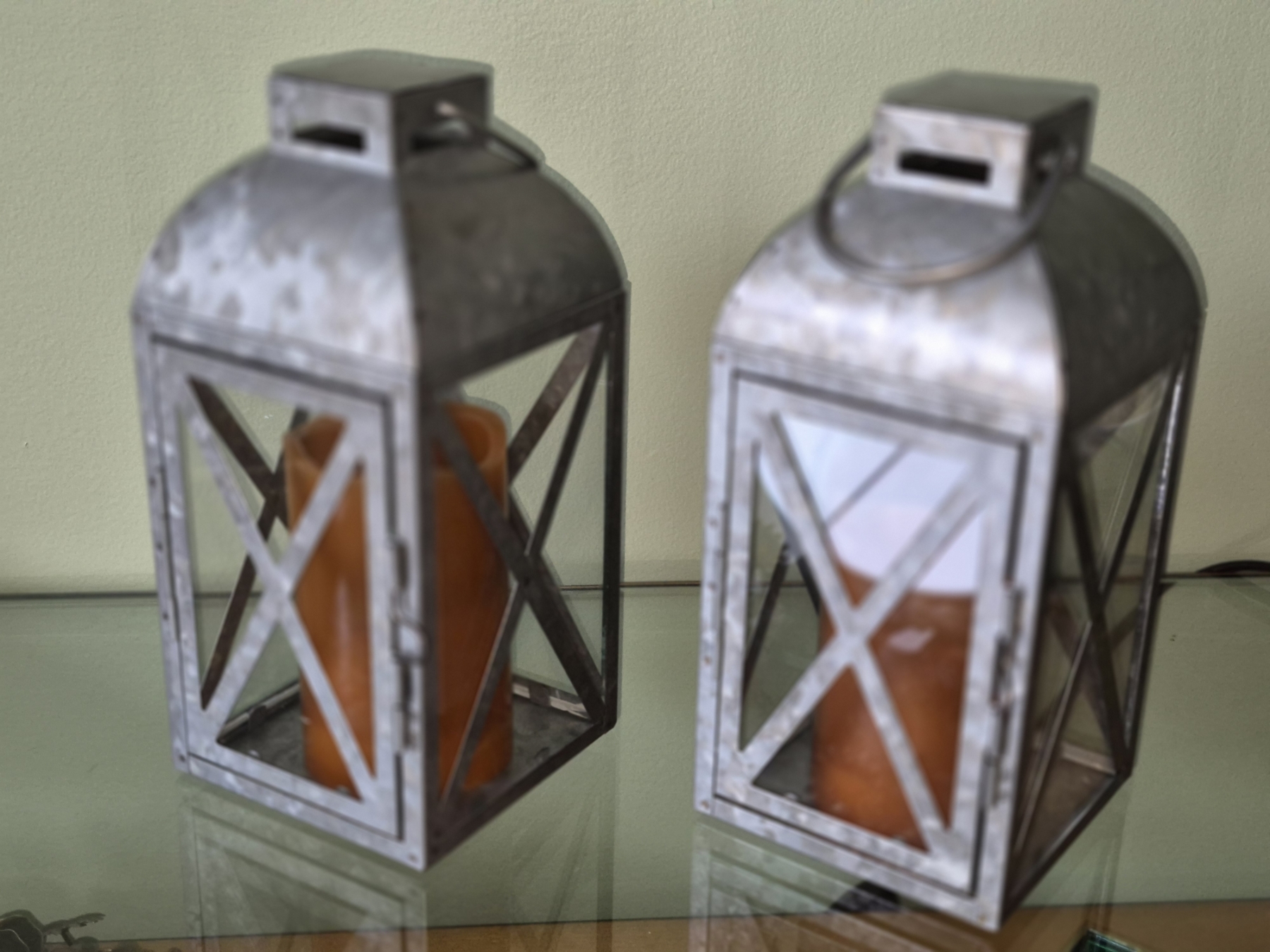 PICKUP IN NORTHFIELD - Pair Of Metal Decor Lanters As Shown - See Pics - (All Items noting "Pickup In Northfield" will be available the following Saturday after this auction ends. Other items in this auction will be available at our Louisville Office. Winners of Northfield items will be notified with the address and times, after the auction closes.)