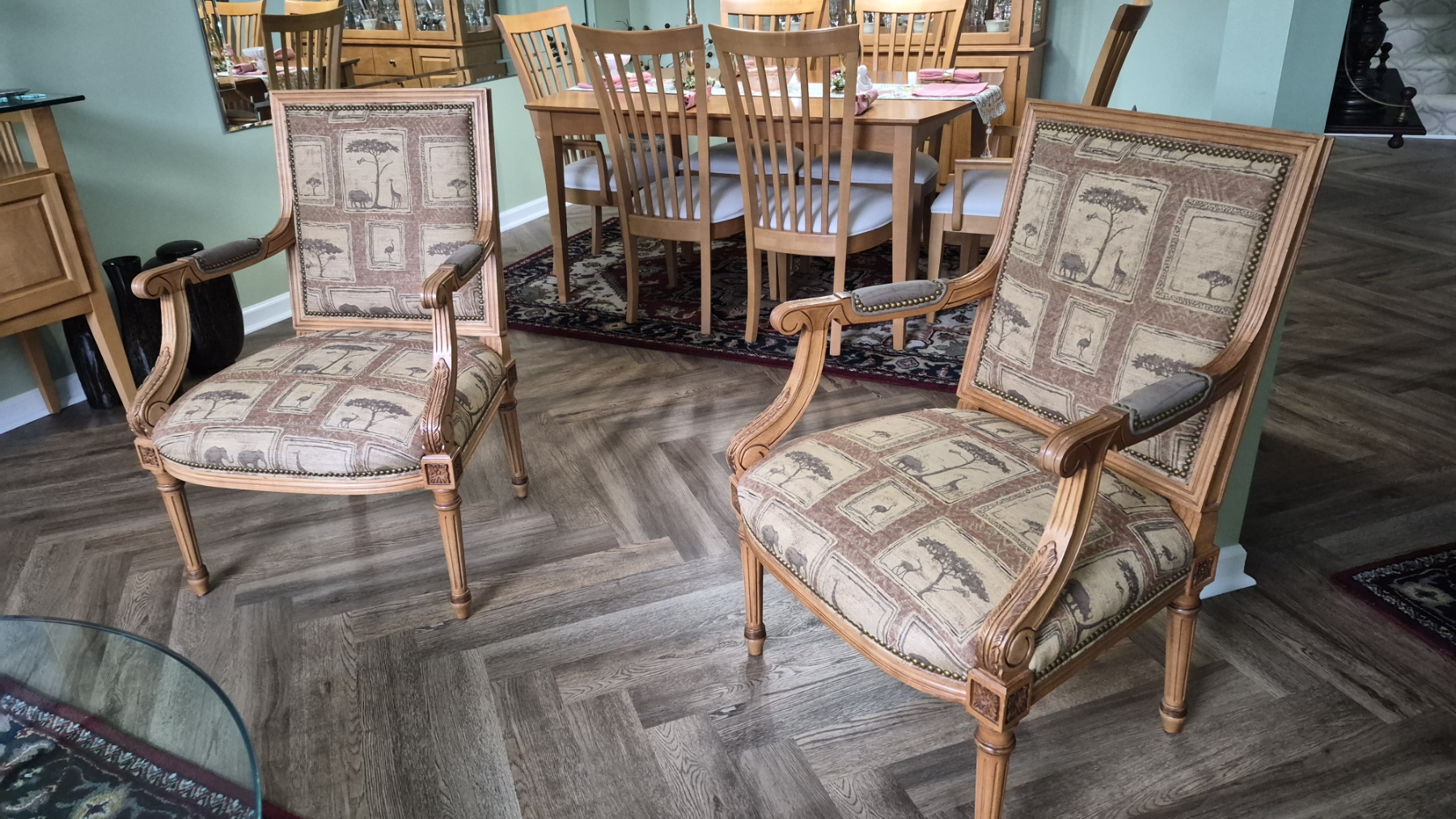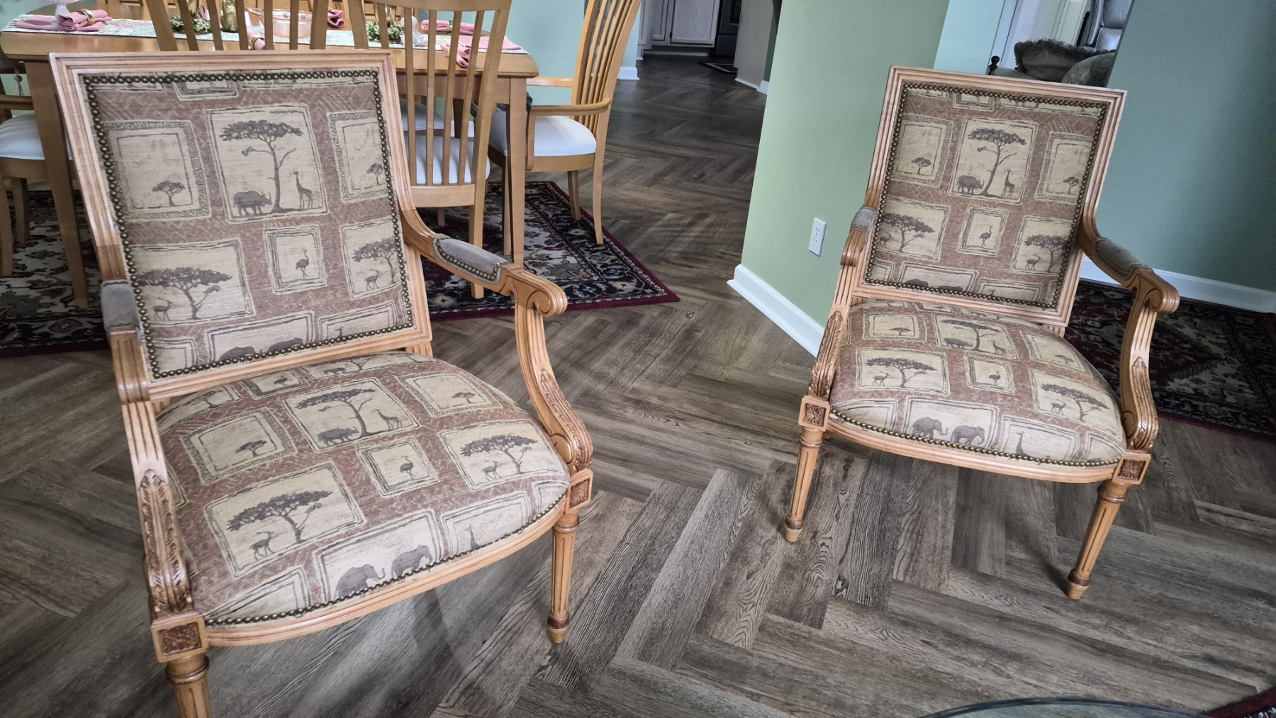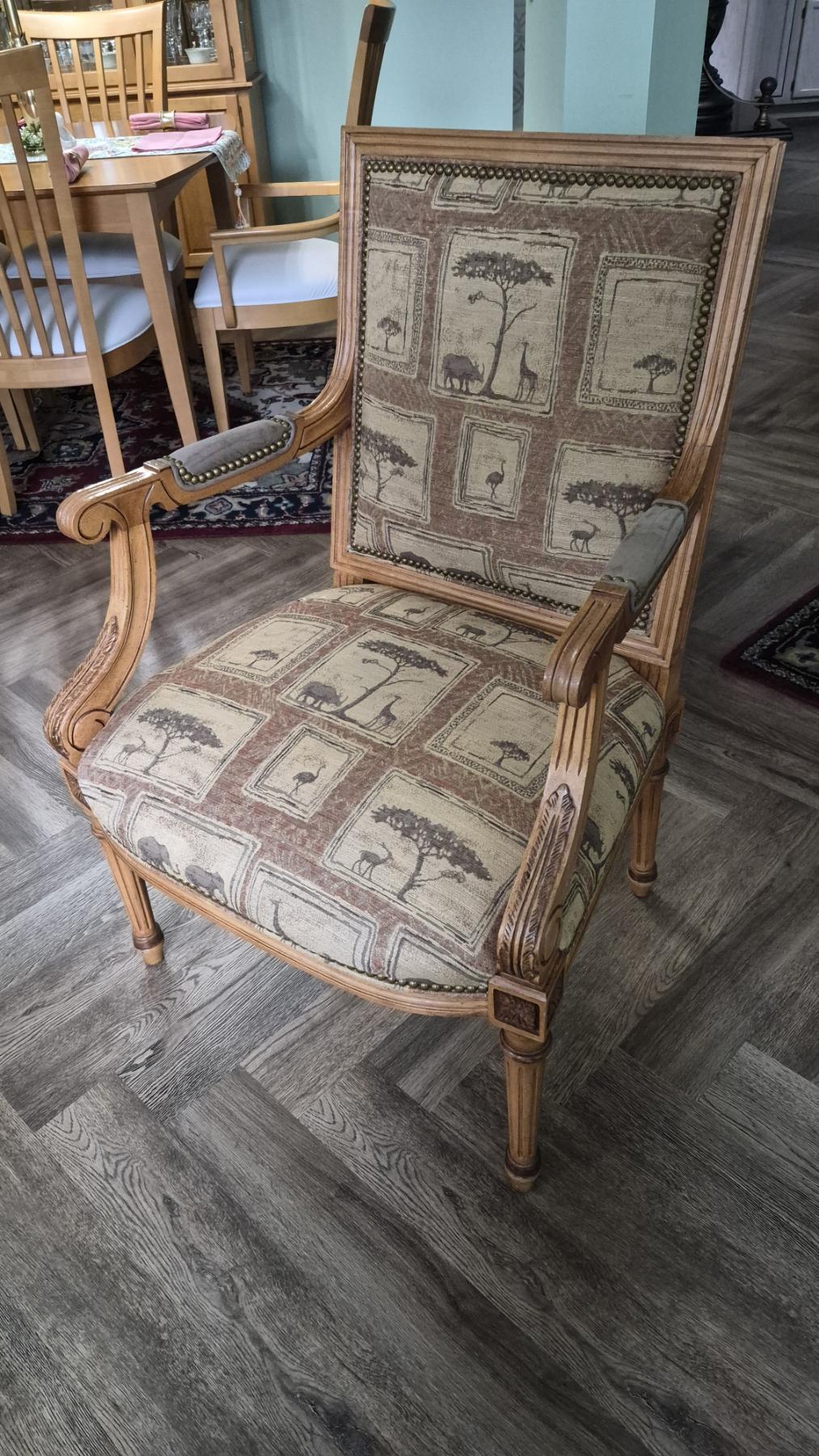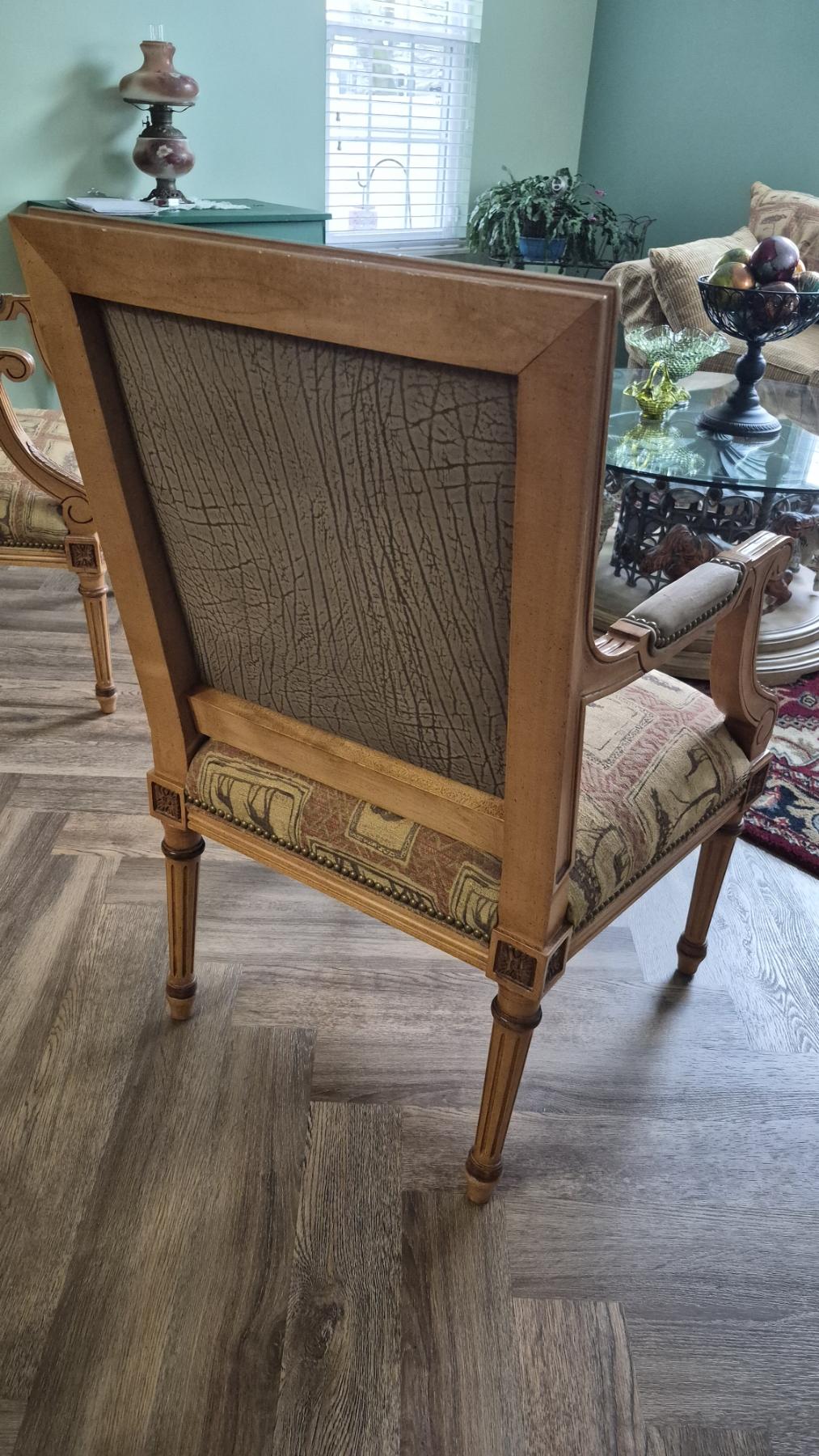 PICKUP IN NORTHFIELD - Pair of Wood & Upholstered Arm Chairs In Excellent condition. - See Pics - (All Items noting "Pickup In Northfield" will be available the following Saturday after this auction ends. Other items in this auction will be available at our Louisville Office. Winners of Northfield items will be notified with the address and times, after the auction closes.)