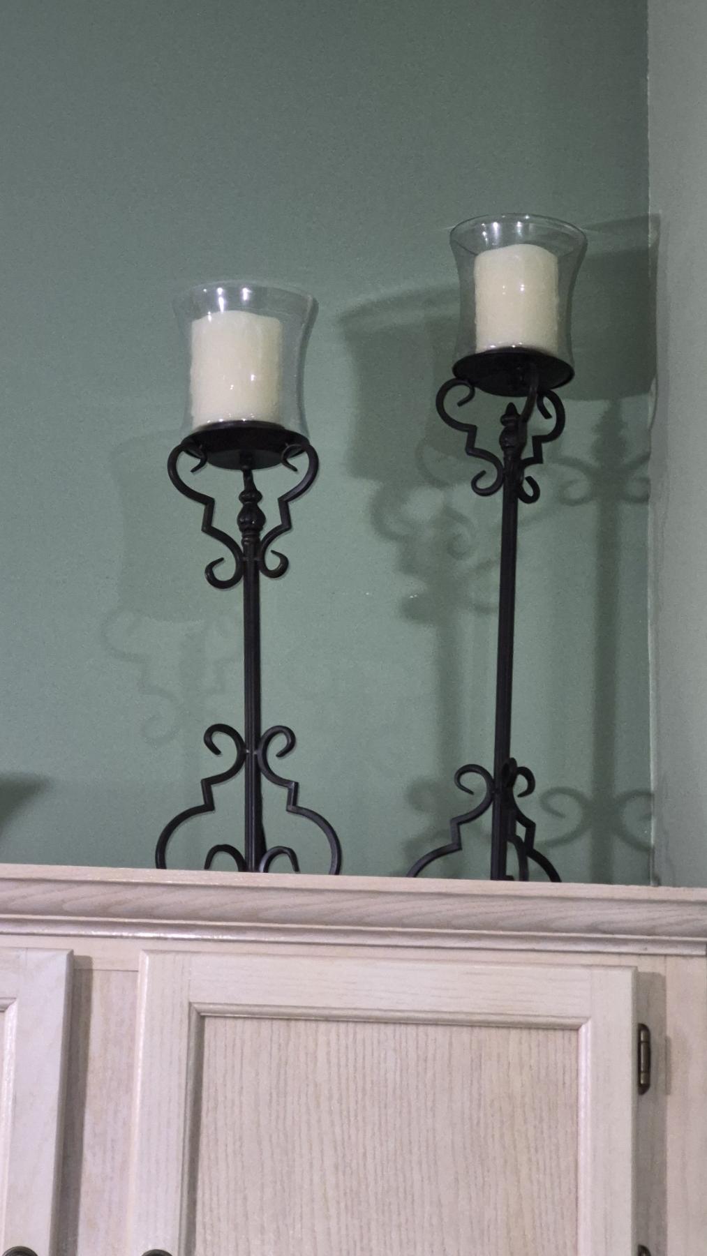PICKUP IN NORTHFIELD - Set Of 3 Tall Wrought Iron Candlesticks 28 & 24 Inches - See Pics (All Items noting "Pickup In Northfield" will be available the following Saturday after this auction ends. Other items in this auction will be available at our Louisville Office. Winners of Northfield items will be notified with the address and times, after the auction closes.)