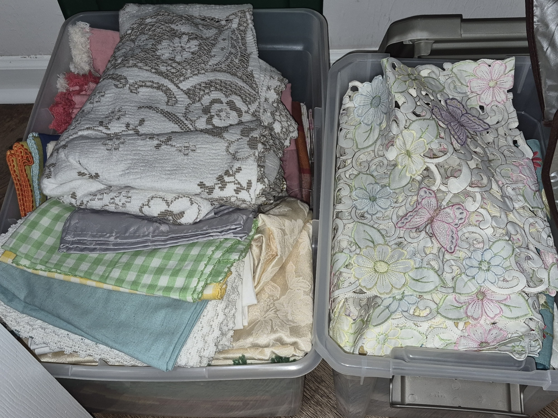 PICKUP IN NORTHFIELD - Two Totes Full Of Linens As Shown (Too Many To Display ) - See Pics - (All Items noting "Pickup In Northfield" will be available the following Saturday after this auction ends. Other items in this auction will be available at our Louisville Office. Winners of Northfield items will be notified with the address and times, after the auction closes.)